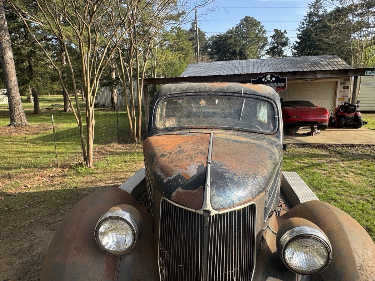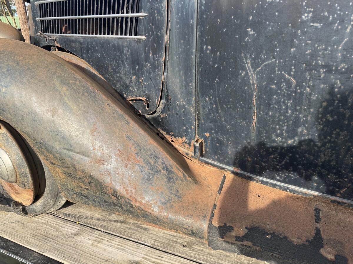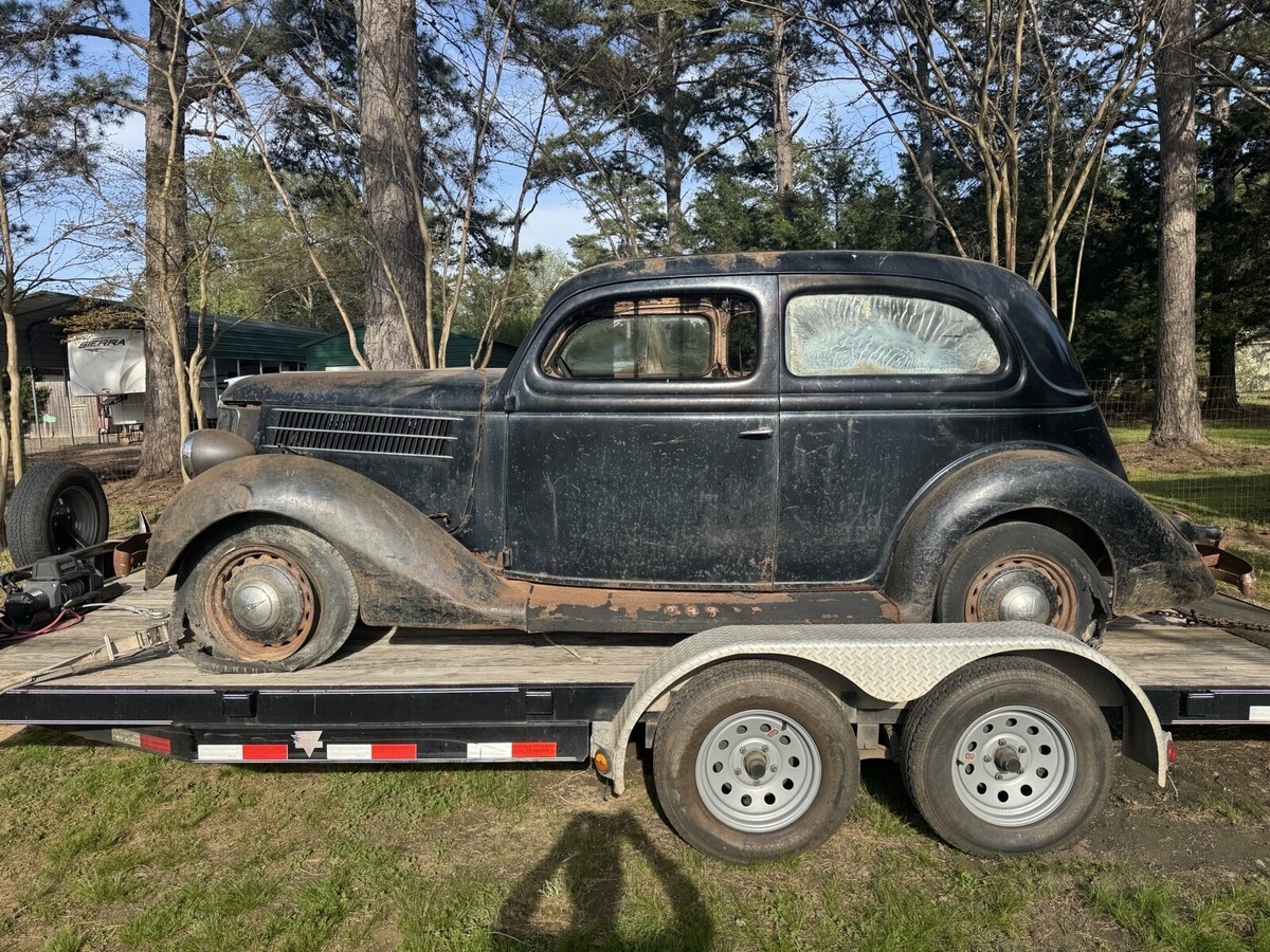 This 1936 Ford Model 68 is an original car that needs work and is not regularly driven. The car has a black color and no title, sold with bill of sale.