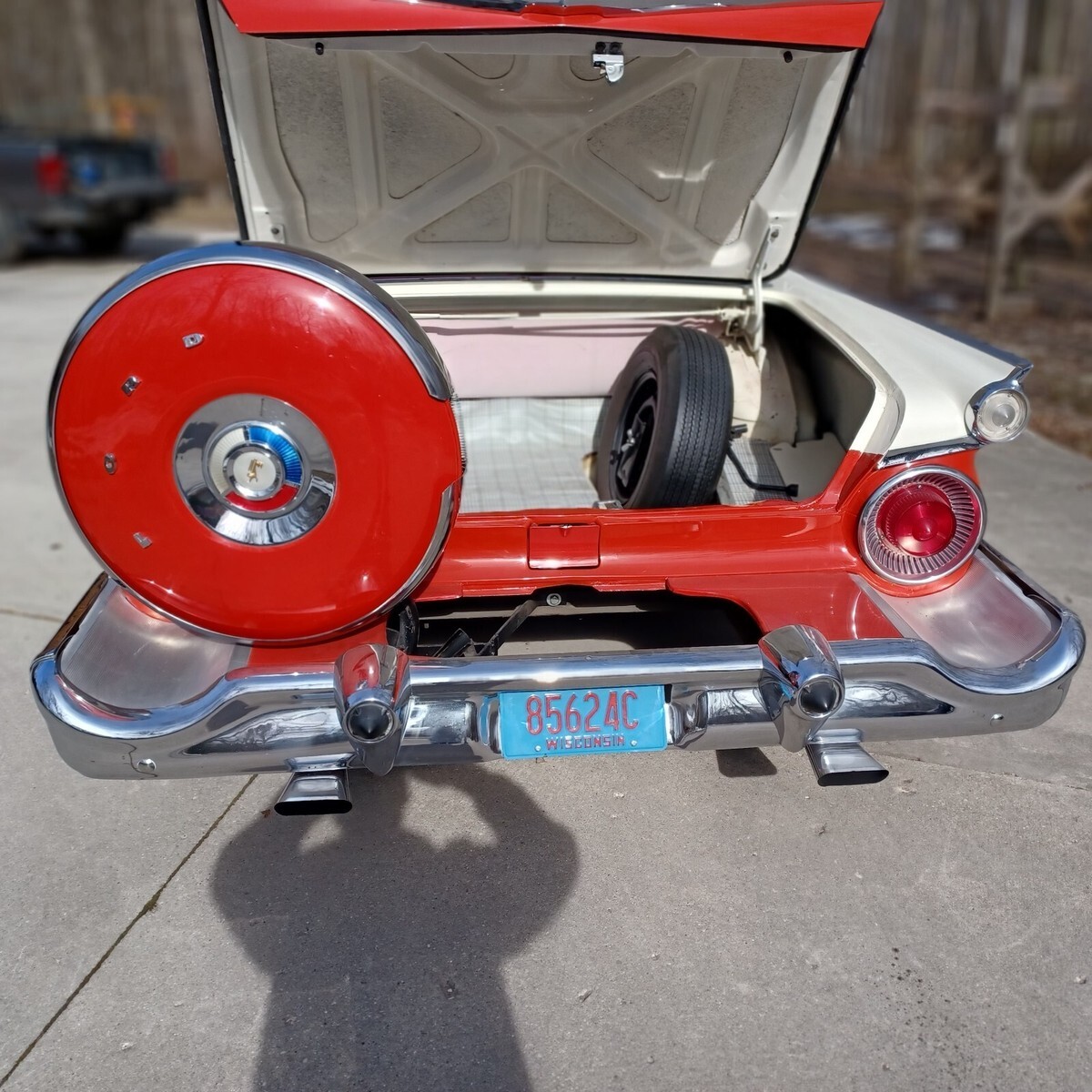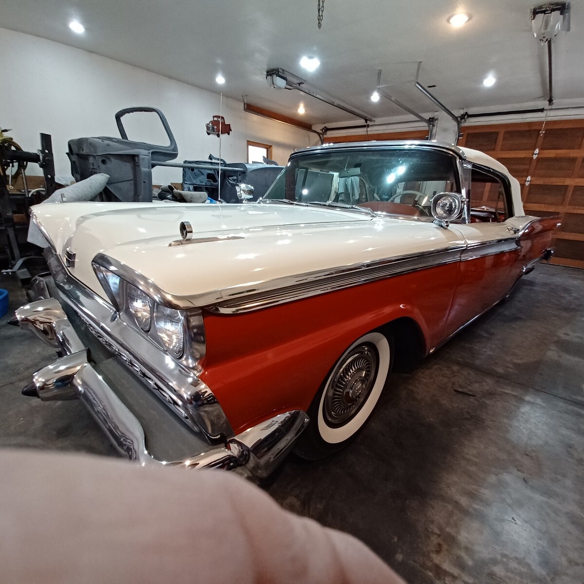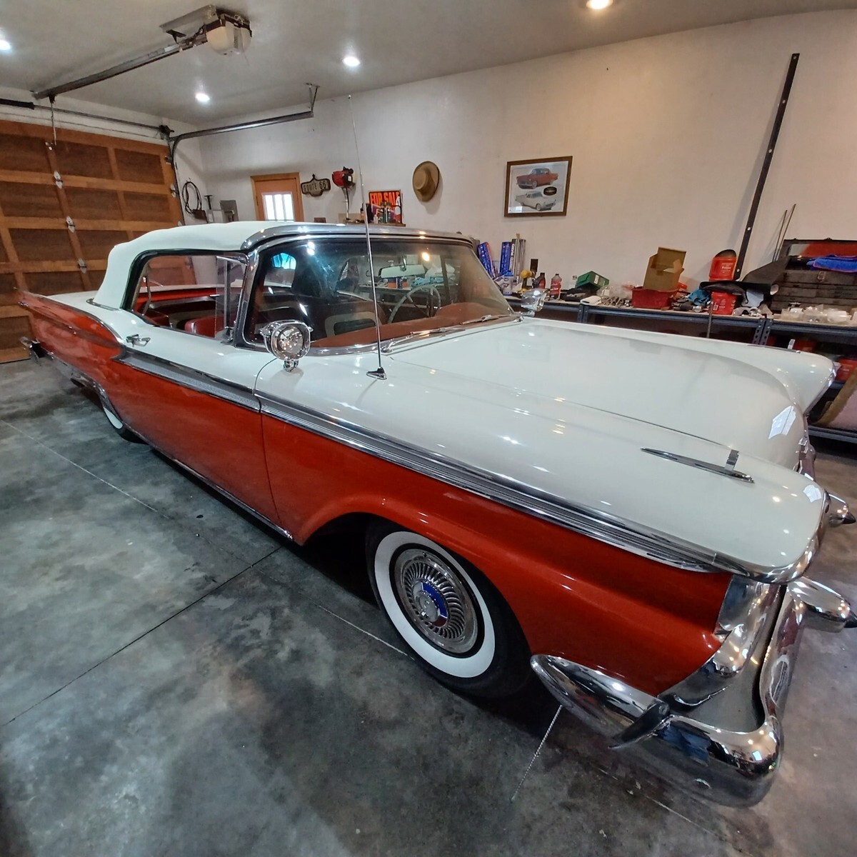 Experience the epitome of classic American automotive beauty with the 1959 Ford Galaxie, a symbol of a bygone era. This Galaxie model boasts a timeless red and white exterior and a red, white and black interior that is in excellent condition, that commands attention and evokes nostalgia. The convertible body type offers an open-top driving experience, perfect for sunny days on the road or leisurely cruising through the streets. Inside, the car comfortably seats four, allowing for an intimate drive. Under the hood lies a smooth-running 332 Thunder Bird Special Engine with a 3 speed automatic transmission. It has power steering and power brakes. It has factory added power windows, dual fender spot lights, continental kit, Front and rear bumper guards, SS fender skirts that will be in the trunk. Last year a new top and top seals was installed, new windshield and seal,new door and trunk seals.new window wiskers,new carpet,new seat belts,new mirror bracket,new rubber bumpers,doors, glove box, gas tank lid and hood. The odometer was also replaced, it was broken. It was replaced with a NOS one I found an ebay. I kept the old one so you can see the original millage. This Ford Galaxie is a rare find for collectors and enthusiasts alike so take a look at all the pictures and you judge this beauty. It comes with a clean vehicle title, ensuring a worry-free ownership.