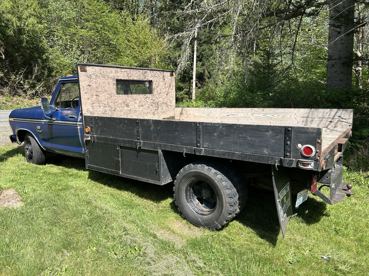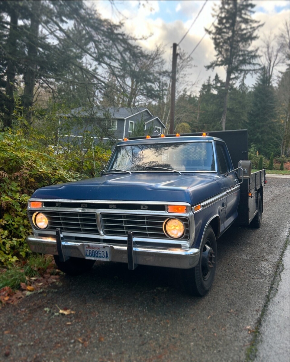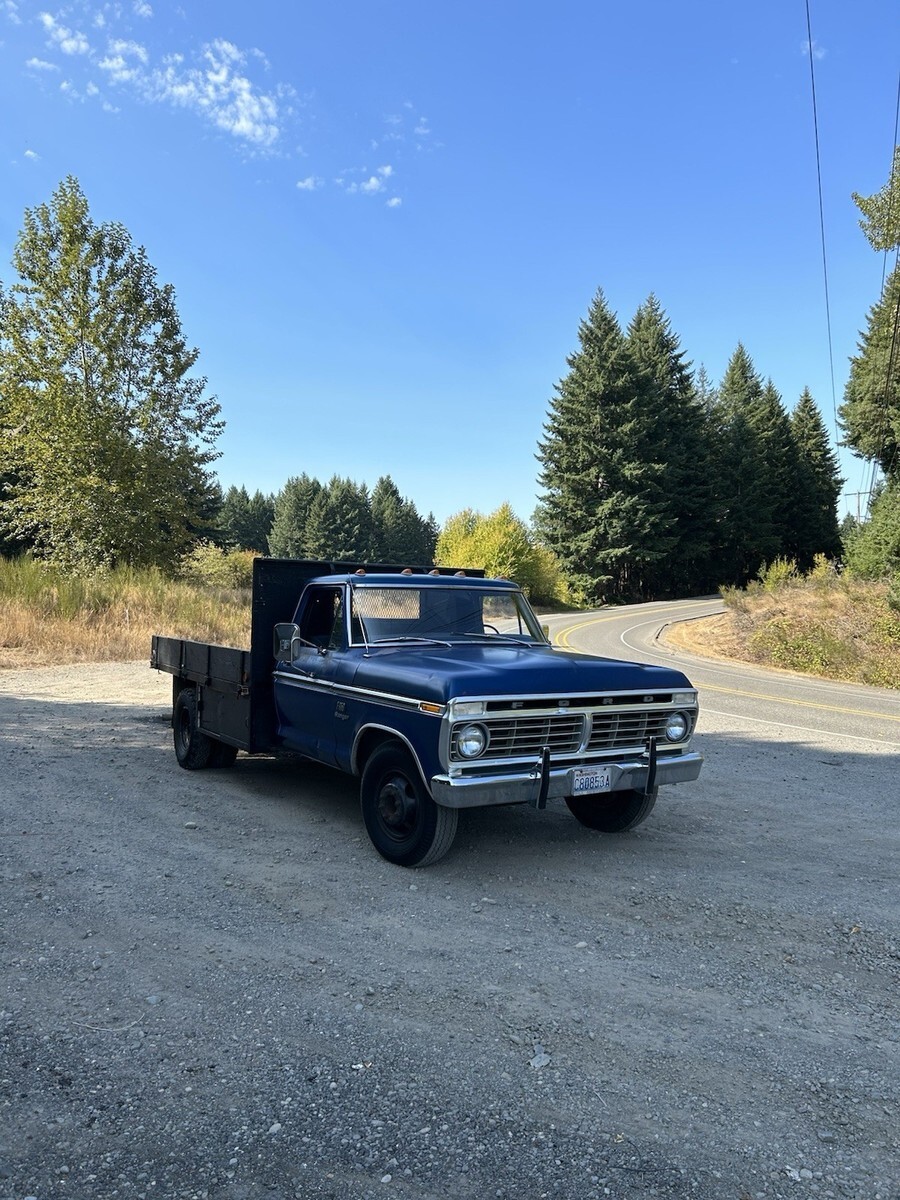I bought this truck from the estate of the original owner. It was bought new in Gig Harbor, WA just 15 minutes south of here, and has been in Port Orchard its whole life. The truck was used for the previous owners construction business in the 70’s and 80’s.The truck is highly optioned for a cab and chassis F350. It has a factory 4bbl 390ci engine, C6 automatic transmission, Ranger appearance package, and extra cooling radiator (gigantic!). The flatbed is custom built by the previous owner. The truck sports two gas tanks, both working.The family of the estate said that the engine had recently been rebuilt. The engine runs strong but does have an exhaust leak. Additionally, the windshield is cracked, the original paint is pretty worn in a few spots, the auxiliary tank indicator gauge is inoperable, and the gear indicator arrow is broken. All to be expected for a 50 year old work truck.Please message me with any questions or if you’d like additional photos.