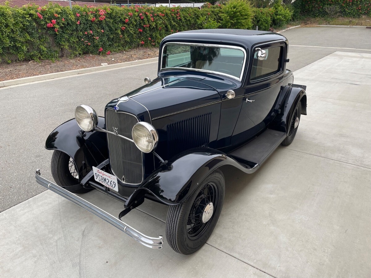 1932 Ford Deluxe 3 Window CoupeAll Original Ford Body, Fenders, and Chassis.Restored in Late 1980's. Body is a Nice, Original with couple minor repairs. Rear floor pan was replaced with another, original 3-window floor. Front floor pan is original, and nice. Factory Washington Blue Body w/Black Fenders. Paint still shows well. Fenders are nice originals, also with a couple minor repairs. Nice, original Hood and grille shell.Original Chassis, which was upgraded to Hydraulic brakes. Original Heavy axle and wishbone. Original early '32 Firewall.'36 LB Flathead engine with a stock '32 transmission. New 97 Carb. Original '32 radiator. New excelsior tires. (Spare, Spare tire mount, and original spare locking cap included in sale)Excellent, original style Bedford Cord interior. Wood grained dash and garnish moldings. Original Cigar lighter, ashtray and glove box.Everything works as it should, except fuel gauge. Original Stewart Warner 90mph speedometer. 6-Volt, but starts well.Runs and drives great. Current California title/registration in my name.Please call with any questions909-920-6797Car is listed for sale locally. I reserve the right to end the auction at anytime. This is a private party sale.