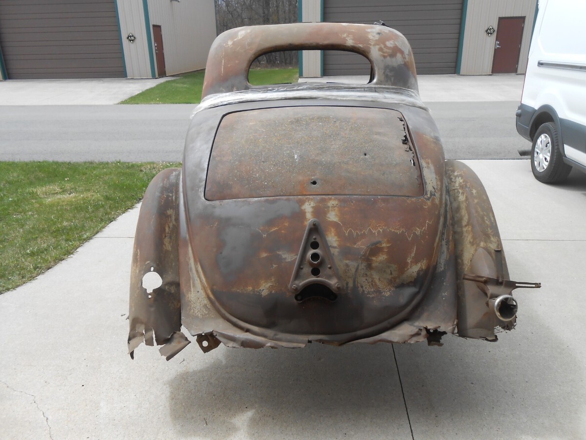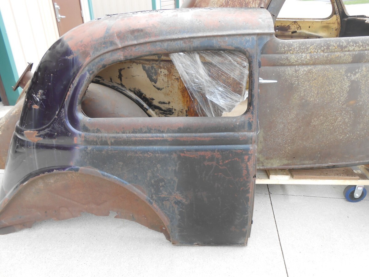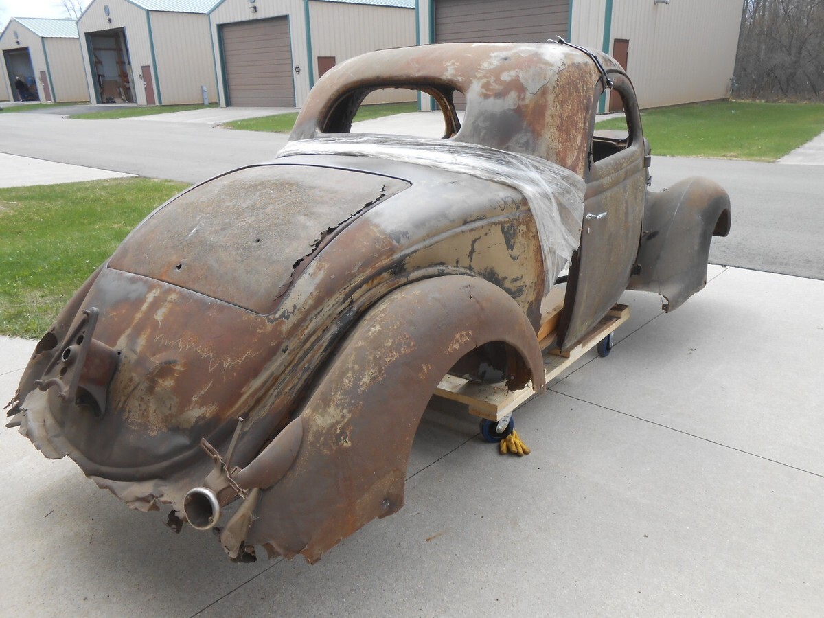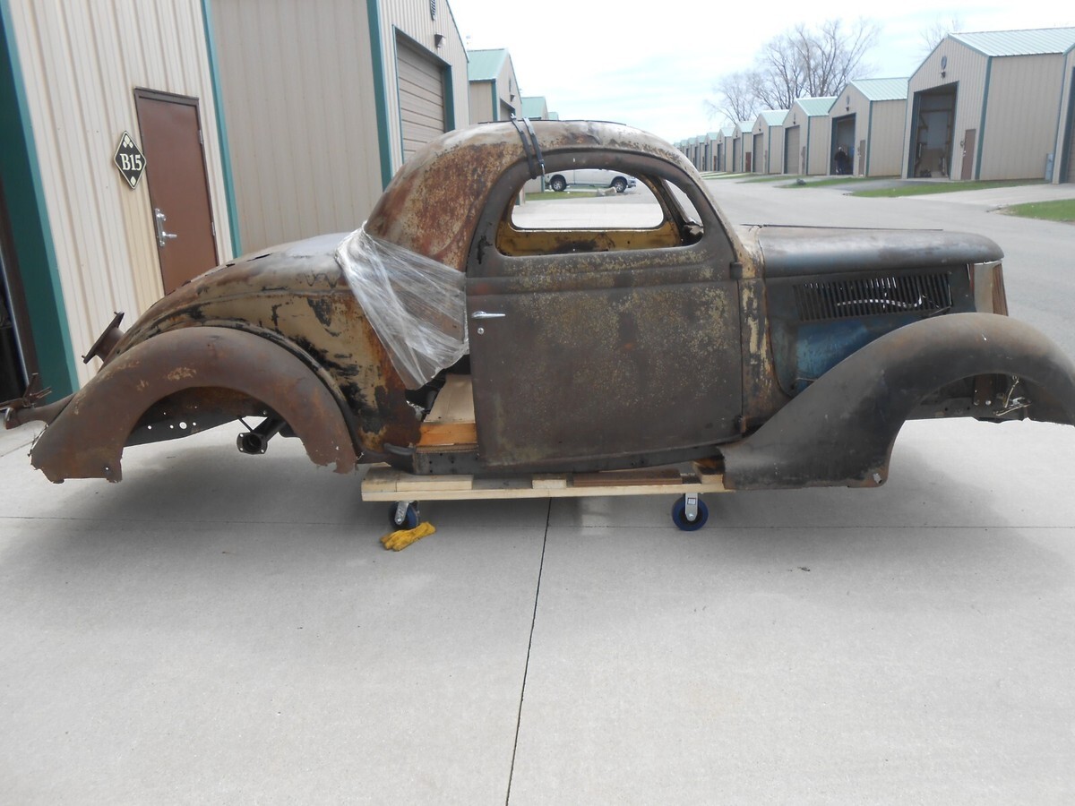1936 Ford Three Window Steel CoupeIt has front fendersIt has rear fendersIt has a hoodIt has a grillIt has front fender bracesIt includes three front roof sections that can be used to fabricate as neededIt has a header panel above the front windshieldIt has a deck lidThis car is in need of a complete rebuildIt needs a complete floorIt needs all the usual cowl and quarter patchesIt will need a rear tail pan sectionThe B Pillar on the passenger side is rotted away and there is anew donor section from a 2 door sedan that would need to be fabricated in