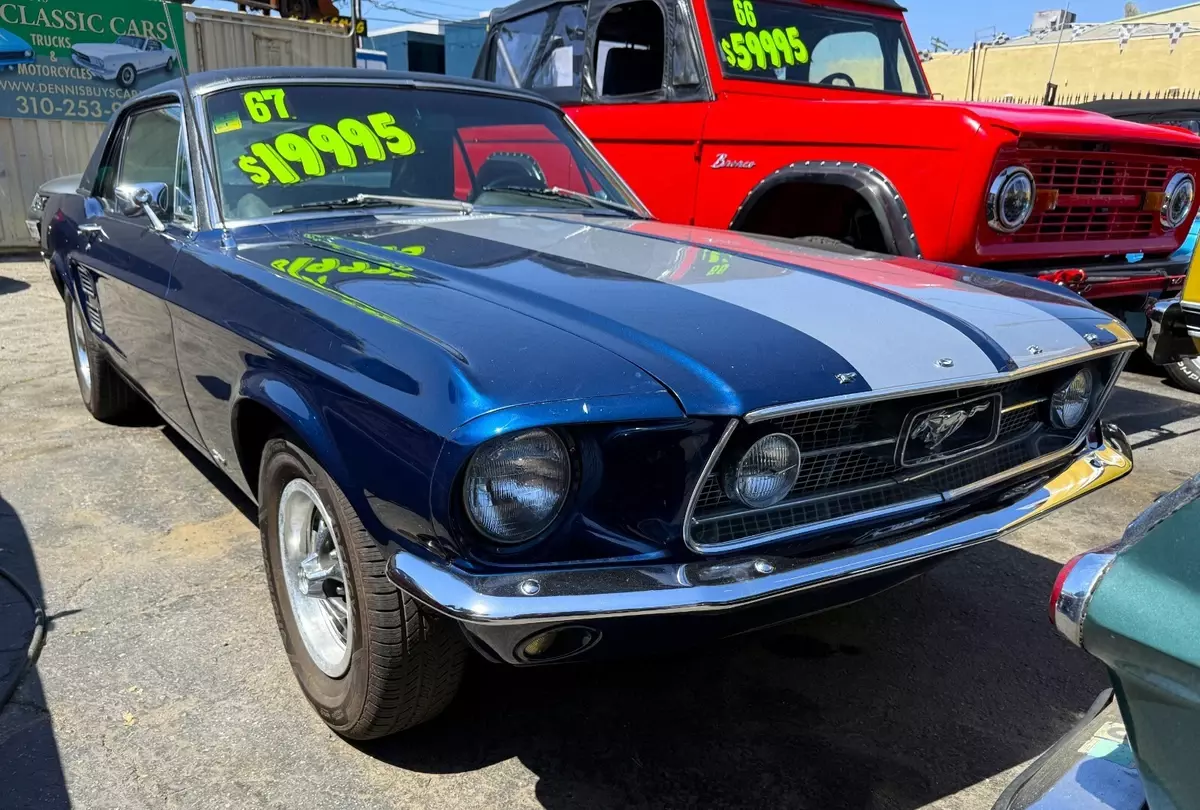 1967 Ford Mustang Coupe, "C" Code 289CID V8, Manual 3-Speed Transmission, Power Steering, Facory AC, Front Power Disc Brakes, Styled Steel Wheels, Rallye Fog Lights, "GT Look". This is a California car with no corrosion. Excellent body and paint. Reliable, fires right up and runs great. Has black plates that stay with the car in California only. Clean Calidornia title in had and current CA registration. VIN-7R01C148700.Vehicle is sold AS IS with no warranty whatsoever. We are a licensed and bonded California dealer for over twenty years at the same location. California buyers are responsible for $80 Document Fee, registration and applicable sales tax in addition to final auction price.