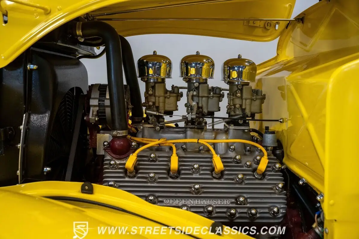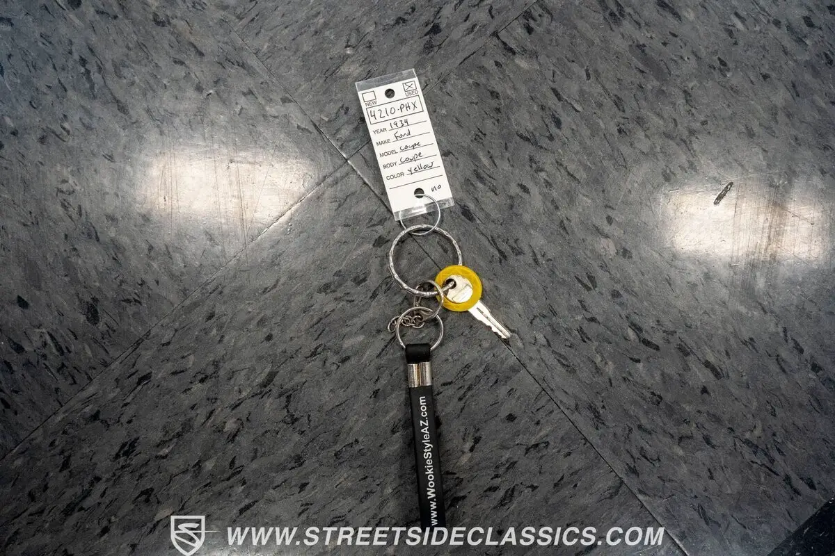 Vehicle Original VIN : 189057044210-PHX 1934 FORD 5-WINDOW An all-steel 1934 Ford 5-Window with suicide doors sits ready for your garage in brilliant yellow finish. The classic profile is accentuated by chrome bumpers front and rear, with a gleaming chrome grille adding period-correct style. A functional cowl vent and fold-down rear window maintain authentic touches, while the steel wheels with beauty rings and center caps add a clean, timeless look. The single driver's side mirror and large headlights with side marker lights on the cowl complete the exterior presentation. Wide white 165R15 front and 235/75R15 rear radial tires provide the perfect look and stance. The black vinyl interior offers classic comfort with a bench seat featuring shoulder belts for modern safety. VDO gauges fill the custom dash, while a Lokar floor shifter stands ready for action. A banjo steering wheel gives the driver complete control with authentic style. The matching vinyl door panels, quality headliner, and good condition carpet create a unified look throughout the cabin. The rear window rolls down into the body for excellent ventilation, perfect for cruising in comfort with your favorite tunes playing through the AM/FM/AUX stereo with single CD player. The Flathead V8 engine features aluminum Offenhauser heads and an Edelbrock intake manifold with a tri-power Ford carburetor setup. Fenton cast headers with Smithy's mufflers deliver a classic exhaust note through the dual exhaust system. A Vertex distributor manages spark delivery, while a large shrouded electric fan keeps things cool. The C4 3-speed automatic transmission delivers power to the 9-inch rear end. The front suspension uses an I-beam with mono leaf and shocks, while the rear utilizes a solid axle with leaf springs, creating a smooth-riding cruiser. HIGHLIGHTS: • Flathead V8 Engine • C4 3-Speed Automatic Transmission • Offenhauser Heads • Edelbrock Intake Manifold • Tri-Power Carburetor Setup • Fenton Cast Headers • Dual Exhaust with Smithy's Mufflers • Vertex Distributor • 9-Inch Rear End • Yellow Paint • All Steel Body with Suicide Doors • Chrome Bumpers Front and Rear • Chrome Grille • Fold-Down Rear Window • Driver's Side Mirror • 15" Front and Rear Painted Steel Wheels with Beauty Rings and Center Caps • 165R15 Front and 235/75R15 Rear Wide White Radial Tires • Side Marker Lights on Cowl • Black Interior with Bench Seat • Black Door Panels • Black Headliner, Carpeting • VDO Gauges • Banjo Steering Wheel • Lokar Floor Shifter • Shoulder Belts • AM/FM/AUX Stereo with Single CD Player With classic hot rod style, vintage Ford V8 power, and a clean, all-steel body, this 1934 Ford 5-Window brings together old-school cool and cruising comfort. The suicide doors and fold-down rear window add practicality to this yellow beauty. Call today!