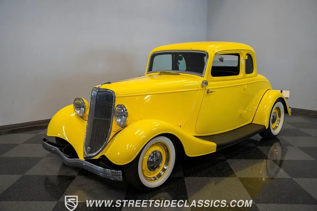 With classic hot rod style, vintage Ford V8 power, and a clean, all-steel body, this 1934 Ford 5-Window brings together old-school cool and cruising comfort. The suicide doors and fold-down rear window add practicality to this yellow beauty. Call today!