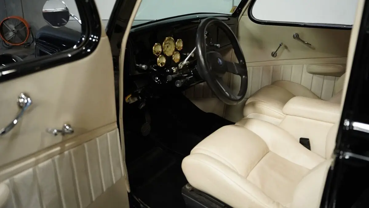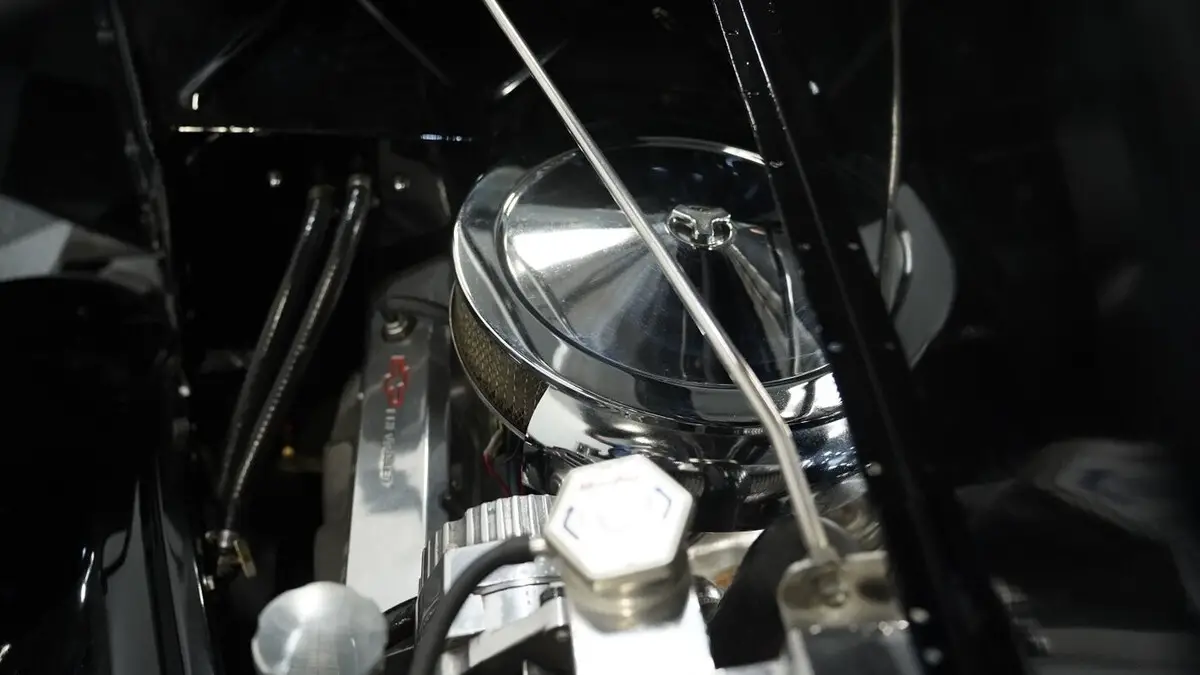 Vehicle Original VIN : 221717• 307 V8 Engine • TH350 3-Speed Automatic Transmission • Edelbrock 4-Barrel Carburetor • Front Disc Brakes • Power Steering • Dual Aftermarket Exhaust • 10-Bolt Rear Axle • Mustang II Front End with Rack and Pinion Steering • Coil Spring Front Suspension with Sway Bar • Leaf Spring Rear Suspension with Shocks • Black Paint • 15" American Racing Wheels • 205/60R15 Front, 215/65R15 Rear Tires • Integrated Center Brake Light • Blue-Dot Tail Lights • Frenched License Plate • Chrome and Brightwork • Cream Interior with Leather Bucket Seats • VDO Gauges • Column Shifter • Center Console • AM/FM Cassette Player • Cream Headliner • Cream Door Panels
