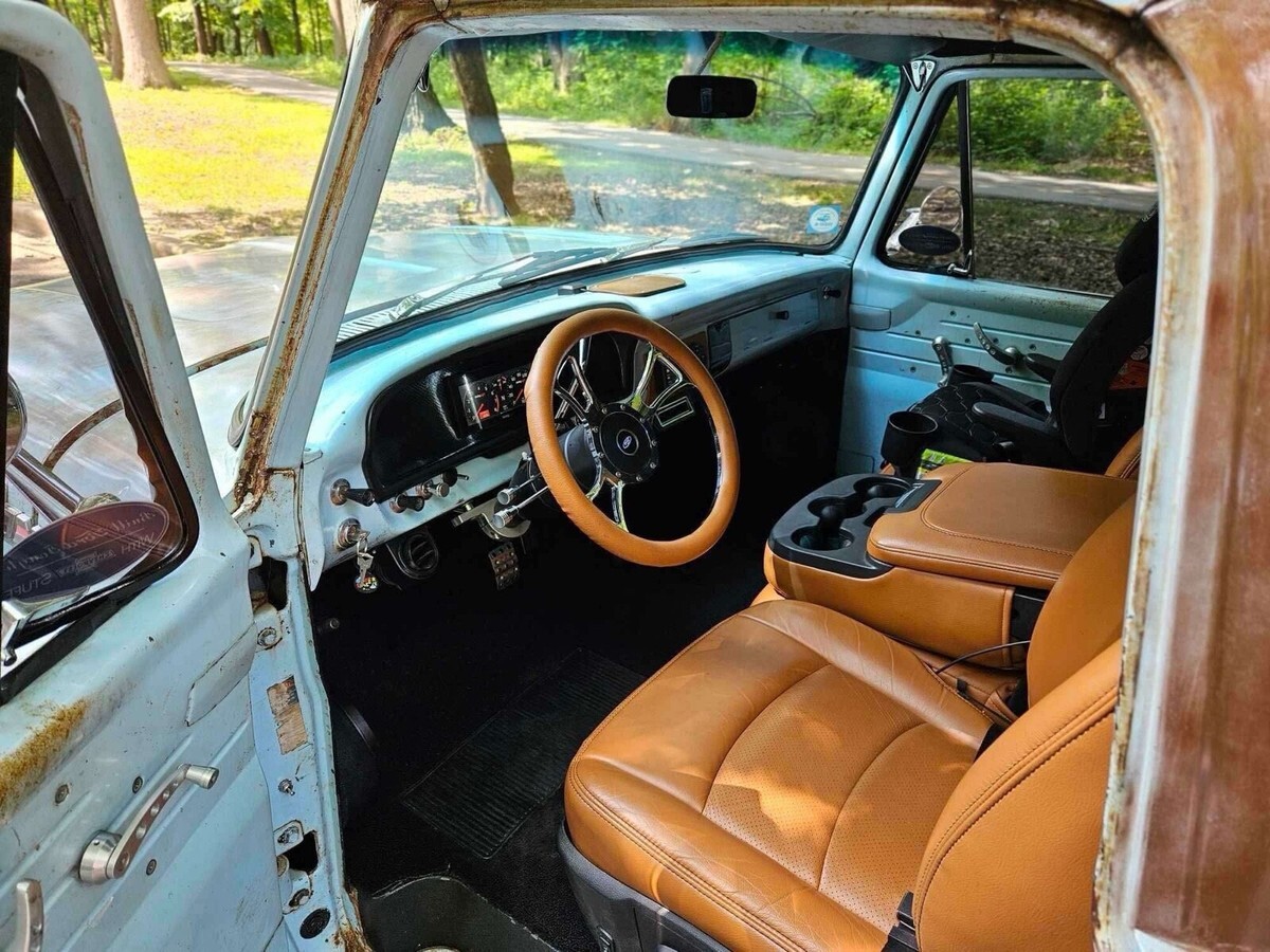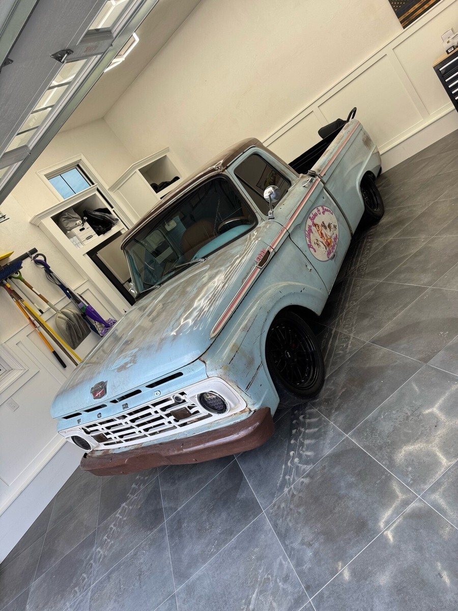 This 1964 Ford F100 has been thoroughly updated to create a unique restomod experience. The exterior, interior, and drivetrain have all been upgraded to modern standards. The vehicle runs smoothly and is mainly used for weekend drives. The Ford F100 has a clean title and only 2400 miles on the odometer. Its beautiful blue color is sure to turn heads wherever you go.