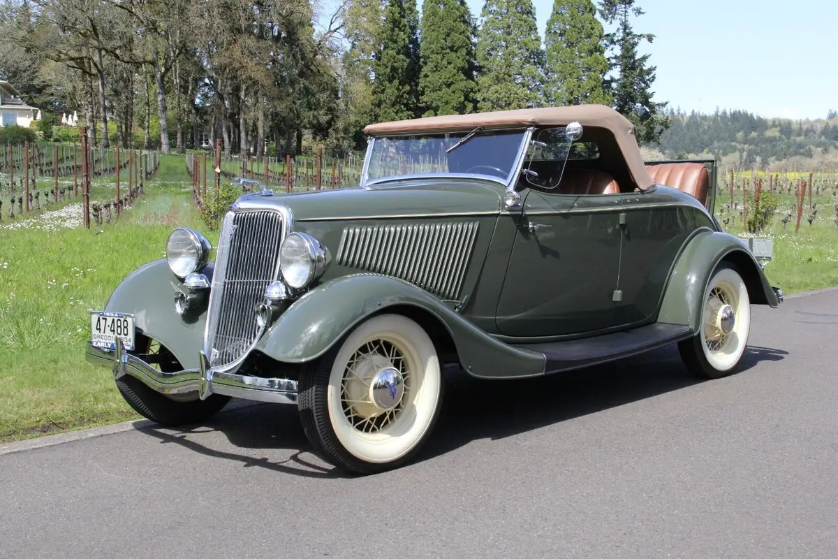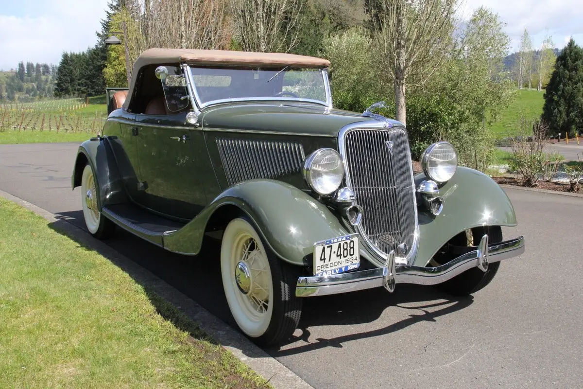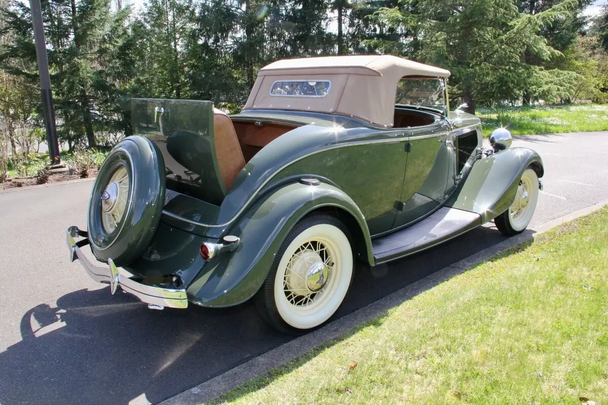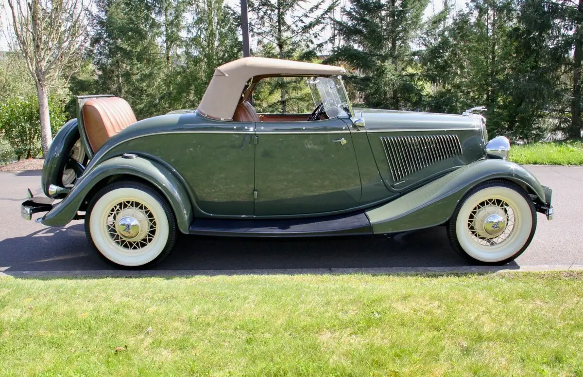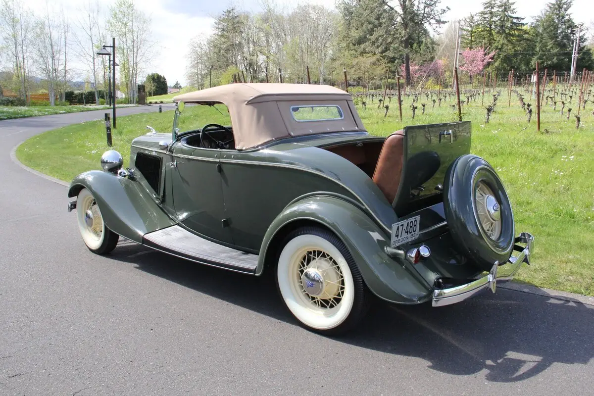 [isdntekvideo] 1934 Ford Model 40 V8 Deluxe RoadsterListed on behalf of the owner.Located near PORTLAND, OREGONThe improved Ford V8 for 1934 featured a 221 cubic inch engine with an output of 85 horsepower. At the time, it truly created a sensation and combined with the now-legendary body stylings offered (in 13 different models), it brought luxury to the lower-priced market. Certainly, one of the rarest bodies was the 2-door Deluxe Roadster. Compared to other bodies that were produced in the hundreds of thousands by Ford in 1934, just 5,071 Deluxe Roadsters were made. Today, few survive (and many of those that do have been modified or hot-rodded.) This Roadster beat the odds and starting as a well-preserved example, was treated to an off-the-frame, fully stock restoration to show level, by a marque expert. The all-Henry Ford steel body is laser-straight with exceptional panel fit. Rust-free throughout. Finished in beautiful Ford Vineyard Green with a mirror shine, it is stunning from every angle. Accented by Straw Yellow pinstripes and wire wheels, wrapped by correct Firestone wide whitewall tires, this car is elegant yet sporty. All chrome and trim was re-plated and polished, showing beautifully today. Inside, the quality continues to shine with LeBaron-Bonney saddle brown leather upholstery in excellent condition throughout, along with wood grained dashboard, exclusive to the "Deluxe" models (along with the dual chromed horns.) Seat belts. Restored gauges and working Ford AM radio (no antenna installed.) Correct tan rubber floor mat up front. Rumble seat is beautifully and correctly finished. All glass is excellent. Glass wind wings with mirrors. Tan Haartz cloth convertible top operates easily and includes top boot and side curtains plus irons stored in a custom-sewn canvas pouch stored on the package shelf behind the seat. PLEASE SEE PHOTOS TAKEN FOR THIS LISTING SHOWING CURRENT CONDITION. Mechanically excellent. The rebuilt V8 engine with aluminum heads starts easily, runs smoothly with no smoke or unusual noises. Whisper-quiet at idle. On the road it accelerates quickly with excellent power at all speeds. The 3-speed manual transmission shifts crisply and the 4-wheel Ford mechanical brakes stop smooth and straight. Light handling. Truly a pleasure to drive. Battery shut-off switch and auxiliary 6 volt electric fuel pump. Just serviced with oil change and radiator flush/fill with correct Ford hoses. Ready to go.PLEASE SEE VIDEO TOUR WITH ENGINE STARTING, RUNNING AND TEST DRIVE. This is certainly one of the finest examples of a 1934 Ford Deluxe Roadster available today.WE HAPPILY SELL TO BUYERS WORLDWIDE AND CAN ASSIST WITH SHIPPING ANYWHERE.THANKS for looking and GOOD LUCK!If the video tour above is inactive, please go to: https://youtu.be/thqPumeVNNk?si=Su57AsGt0QuJbt8iPaymentWe gladly sell to buyers WORLDWIDE. Winning bidder please contact us within 24 hours of auction close. A deposit of $2000 is due via PayPal at that time. Vehicle deposits are non-refundable, per PayPal and eBay policy. Balance due in certified U.S. funds via bank wire transfer within 7 days of auction close. We are a licensed, bonded and insured dealer of classic cars.Note that we do not accept eBay Secure Payment, overseas bank drafts or cashier's checks. Vehicle has a clear title in our name. Please call David at 503-309-7729 between 9am and 9pm Pacific Time with any questions. Thank you.ShippingShipping is the responsibility of the buyer and not included in the auction price. Vehicle must be picked up within 14 days of payment, unless other arrangements have been made. Note that vehicle will be shipping from the Portland, Oregon area (midway between Seattle and San Francisco), with easy access to interstate highways (I-5 north-south, and I-84 east). We will gladly assist your carrier with loading.Terms of SalePlease ask all questions before bidding. Your personal inspection is invited before the close of the auction. Only you know if the vehicle is right for you. All descriptions are based upon information provided by the seller and our own personal inspection of the vehicle. Obviously, with any collector vehicle there are internal areas that cannot be inspected, but the description is based upon the seller's representations and our observation of the vehicle. For that reason, the vehicle in this listing is being sold"as-is"with no warranties of any kind expressed or implied. Mileage listed is that showing on the odometer and unless otherwise noted, cannot be verified due to the age of the vehicle. Mileage of vehicles over 10 years old is considered "exempt" by the State of Oregon Department of Motor Vehicles. By participating in this auction, the bidder agrees to these terms.About UsCharvet Classic Cars assists sellers (all of whom are my personal friends) to find new appreciative homes for their special vehicles. I personally inspect each vehicle. I take the photographs and videos personally. It allows me to represent the vehicle accurately and answer any questions you may have about it. I have been an eBay seller with 100% positive feedback since 1998, and involved with classic cars for many years. I like these cars as much as you do! If you e-mail or call with questions, you will receive my personal attention and knowledge to help you make an informed decision. State of Oregon Dealer #DA4114. Licensed. Bonded. Insured.