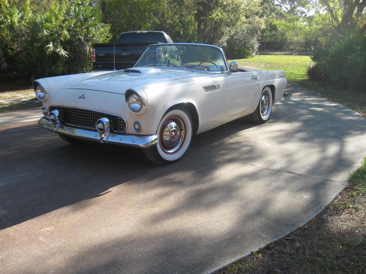 Real nice 1955 Thunderbird with 5 speed transmission and front disc brakes . This was never a rusty car . Floor, trunk floo, body mounts are very solid . No rust . Some paint is original . Engine is a 292 cubic inch that was rebuilt a few years ago in Massachusetts and runs excellen, could easily be used as a daily driver . Electrical system has been converted to 12 volt with alternator . All wiring in car is new except tail light harness . Engine has intake manifold from 1957 312 with Edelbrock carburetor . Electric Autometer tach and clock which keeps perfect time . Fuel gaug, oil pressure gauge and temperature gauge all work perfectly . All lights work as they should and the turn signals cancel correctly . Car has power seat but not power windows . Car does not have power steering . Has hardtop but no soft top . Also comes with fender skirts and spare wheel . To be a real nice show car it would need an easy paint job with almost no body wor, only a few very small dings and scratches from being about 70 years old . True mileage is unknown . Inspections are encouraged by the buyer or hired inspector .