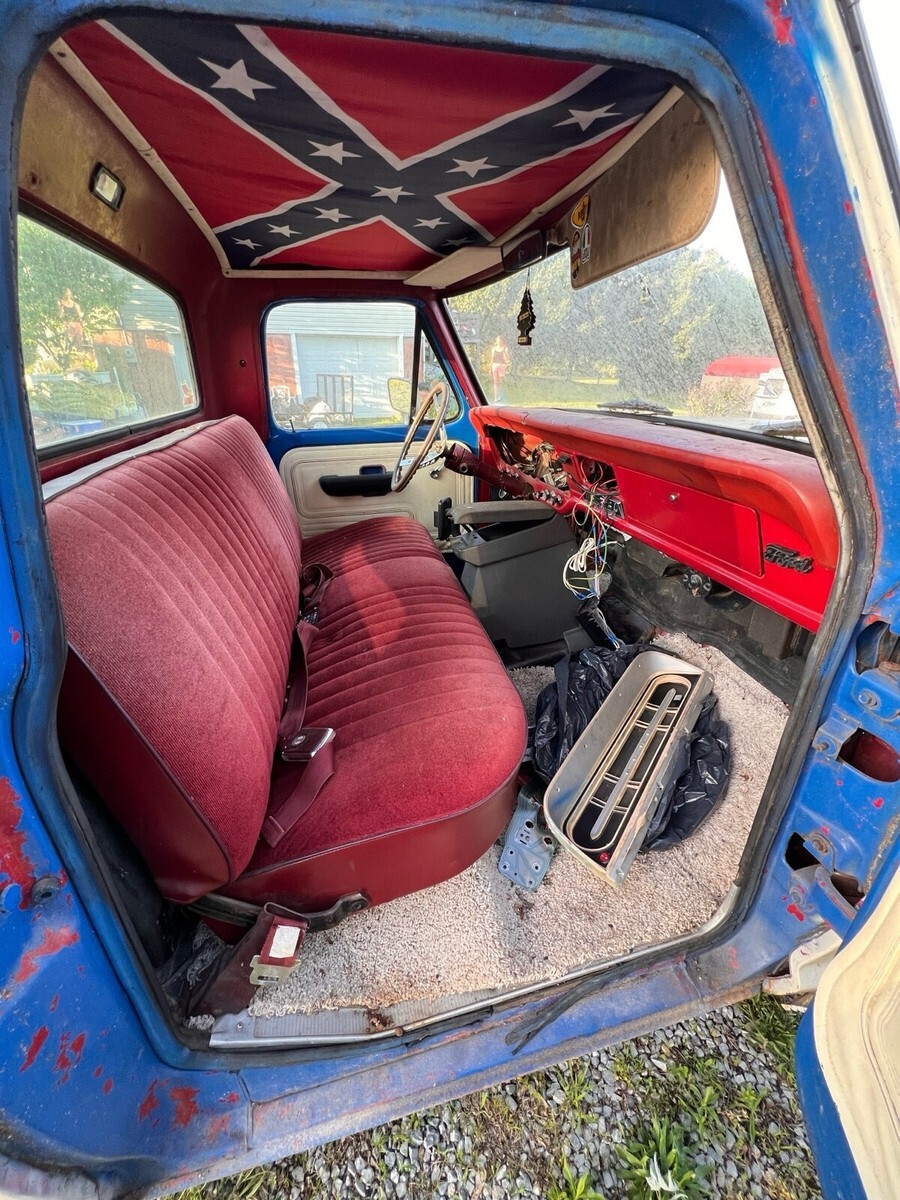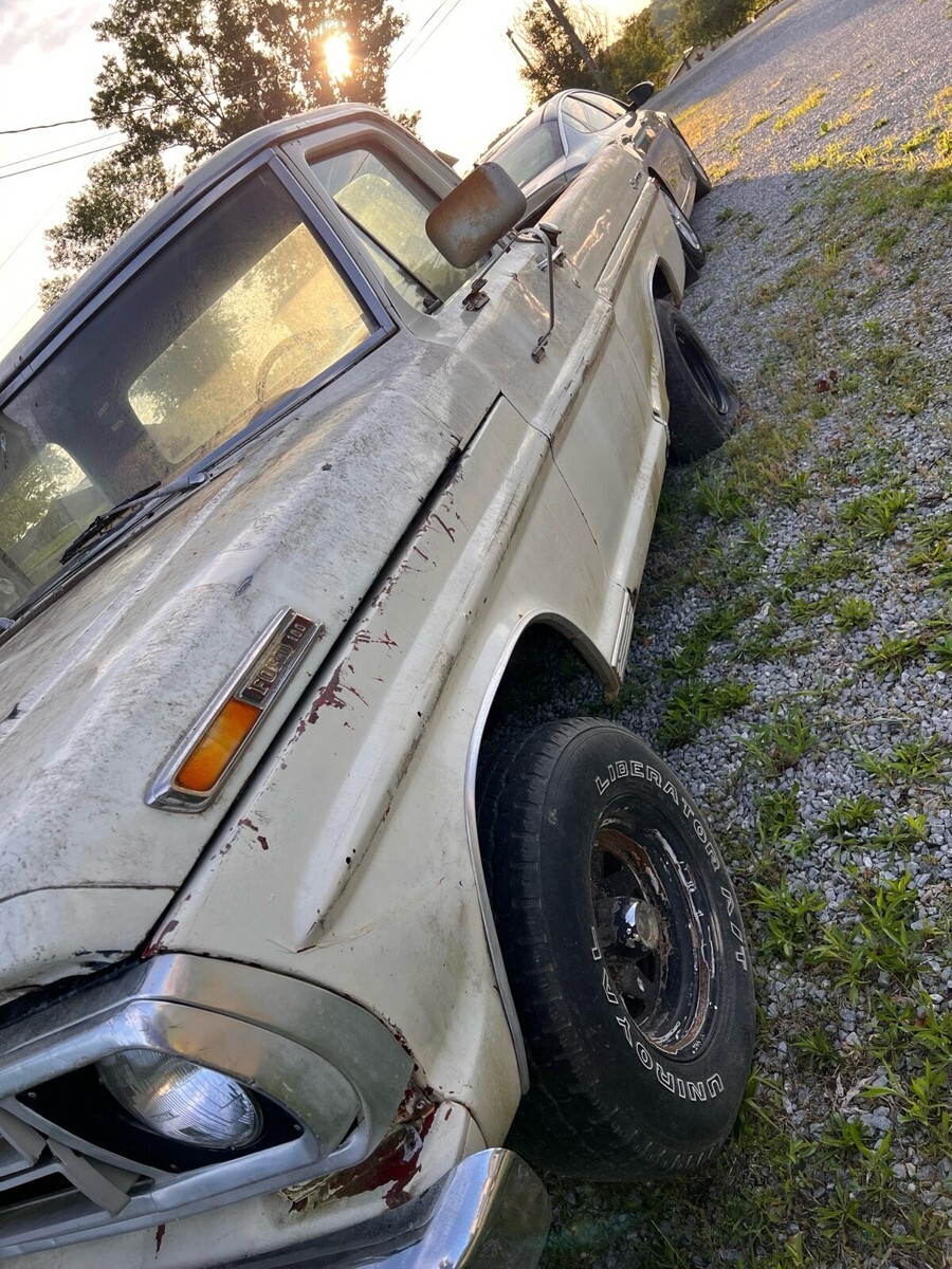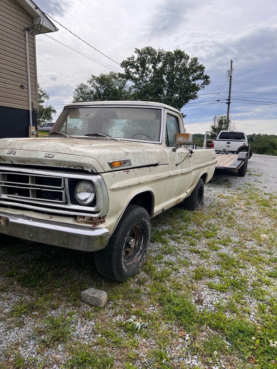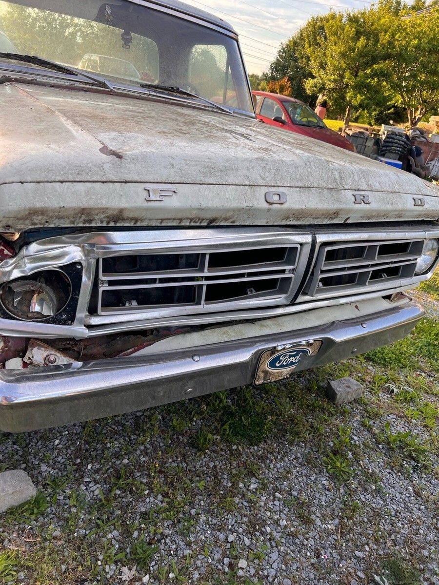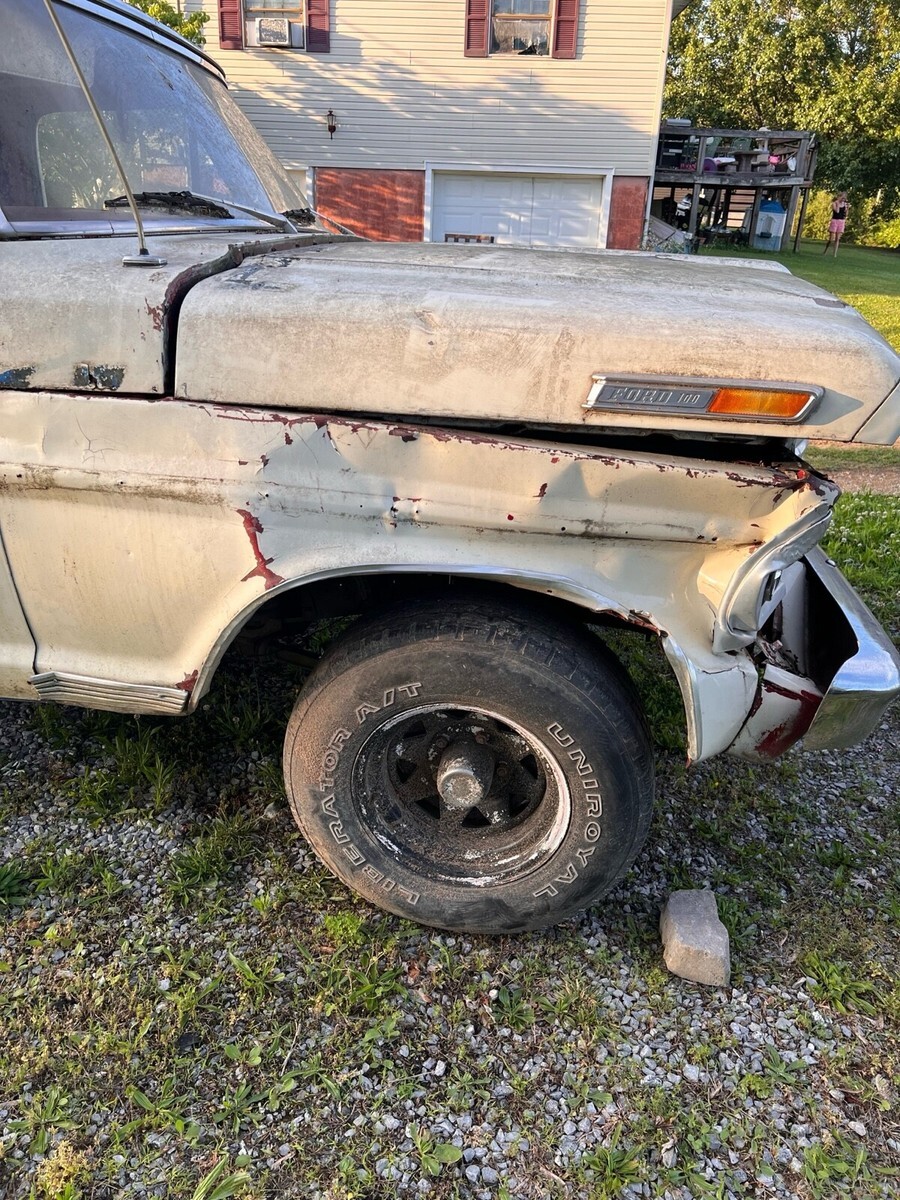 1972 f100 short bed factory power steering. No engine or transmission needs fender and grill replaced and hinges put on hood. Normal rust for these trucks but mostly solid