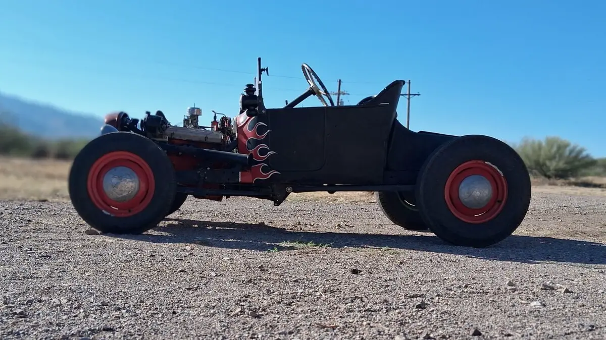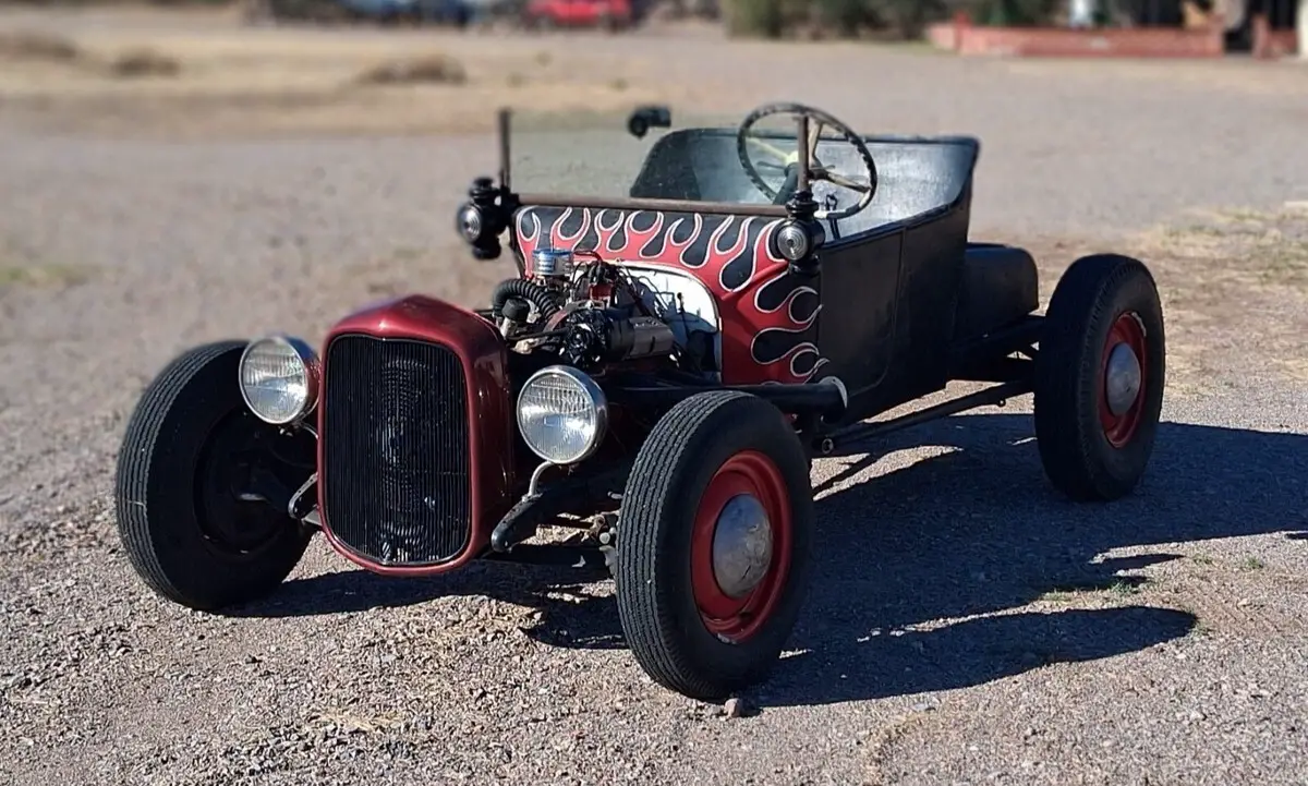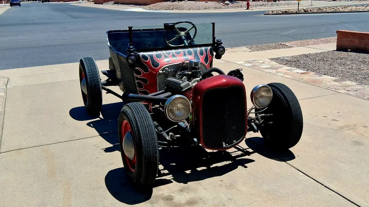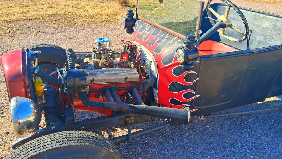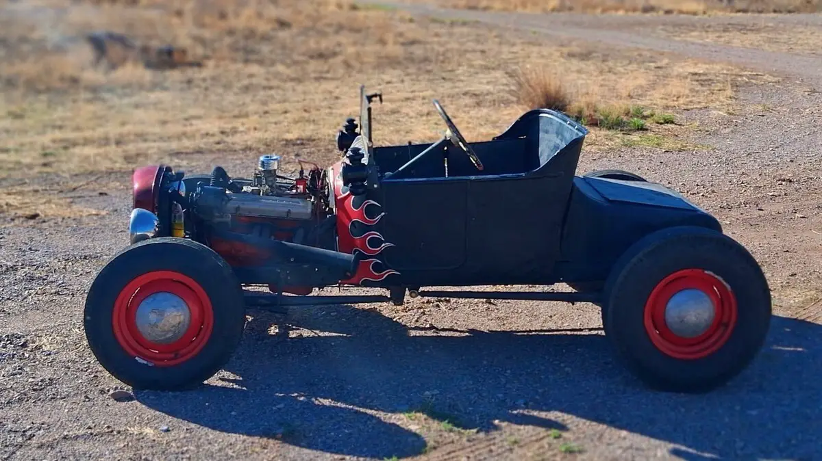 Historic original early 1950s California Hotrod. Steel 1920 "T" body on Model A frame with 1940 Ford axles and brakes. Model A steering wheel and headlights. Early 1955 Corvette 265 V8 engine and Tremec 5-speed transmission. Because this is licensed and titled as a 1920 it still legally retains the oil lamps for cowl and tail light - yes, you light them with a match - a great crowd pleaser at any show or gathering yet it also has an electric Model A headlamps, brake and tail lamp for safety. Still has an original Model T gas tank!Much time, effort and money was put into re-commissioning this car. The following are all new within the past year:Radiator, water pump, king pins, brakes, tires, generator, starter, rebuilt carburetor, fuel pump, distributor, clutch, tremec 5-speed, battery.Classic big/little stance with the 7.50/16 rear and 6.00/16 front tires (tires still have the molding "nubs" on them) although my mechanic reports this is so fast it will burn rubber in the first three gears!!I am 5'10" and 250 lbs but drive it comfortably.See the following youtube videos:https://youtu.be/ASDRFTblYmo?si=JBmoAG056YtzcT4Qhttps://youtu.be/DnDLu3QvfPk?si=ujedGZ8JLlahYOXHhttps://youtu.be/U-lcz-0Z3Yk?si=nO7BPxSFXa-dt-nWhttps://youtu.be/hbJE_GtHzV4?si=WFab48JjqIxB7W6Jhttps://youtu.be/Xgv3v4pT-Bs?si=gSeA5wSLjjWHwrJSNO RESERVE !I'm old fashioned and still believe buyers and sellers should talk to each others, personal inspection and test drive recommended if you're nearby.Prefer payment by cash or wire transfer - i will accept a personal check but will not release car or title until my bank confirms receipt of funds. No cashier's checks please!