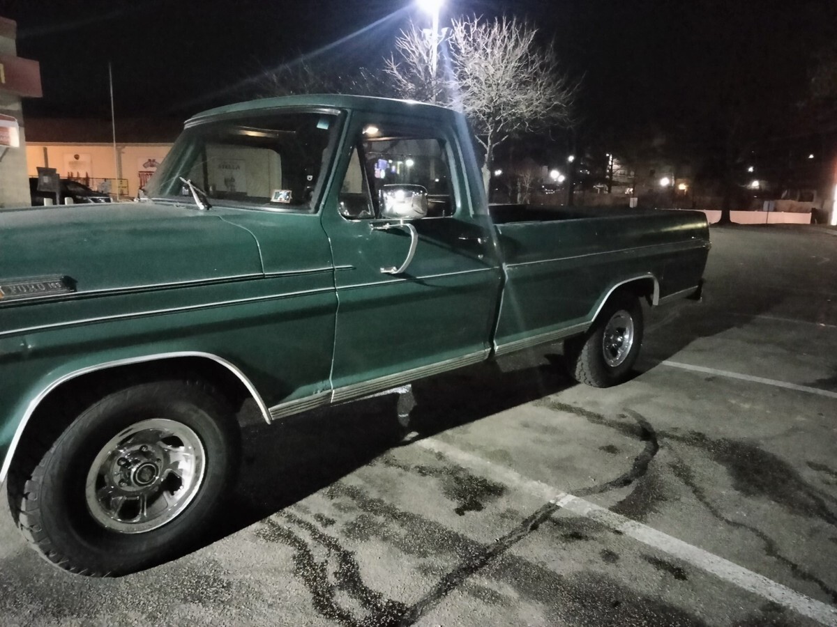 Hello fellow biders, I'm sure you guys recognize this beauty. I had it in about 2 months ago with literally one day left auction was going great and eBay took us down. So here we are again thank you for checking out the truck and bidding have a wonderful night. This is a f 100 Ford pickup 1970 With $8,600 MI 5 brand new tires heavy duty DieHard battery. Also has a large leather bench seat new rugs and a brand new windshield was just installed it also had an oil change and yearly inspection. Has AM/FM radio heat and AC work great. Power steering power brakes ranch steering wheel. Also brand new dual exhaust aluminum radiator. It has a 1986 Ford mustang 5.0 engine. Also will come with a full tank of gas.