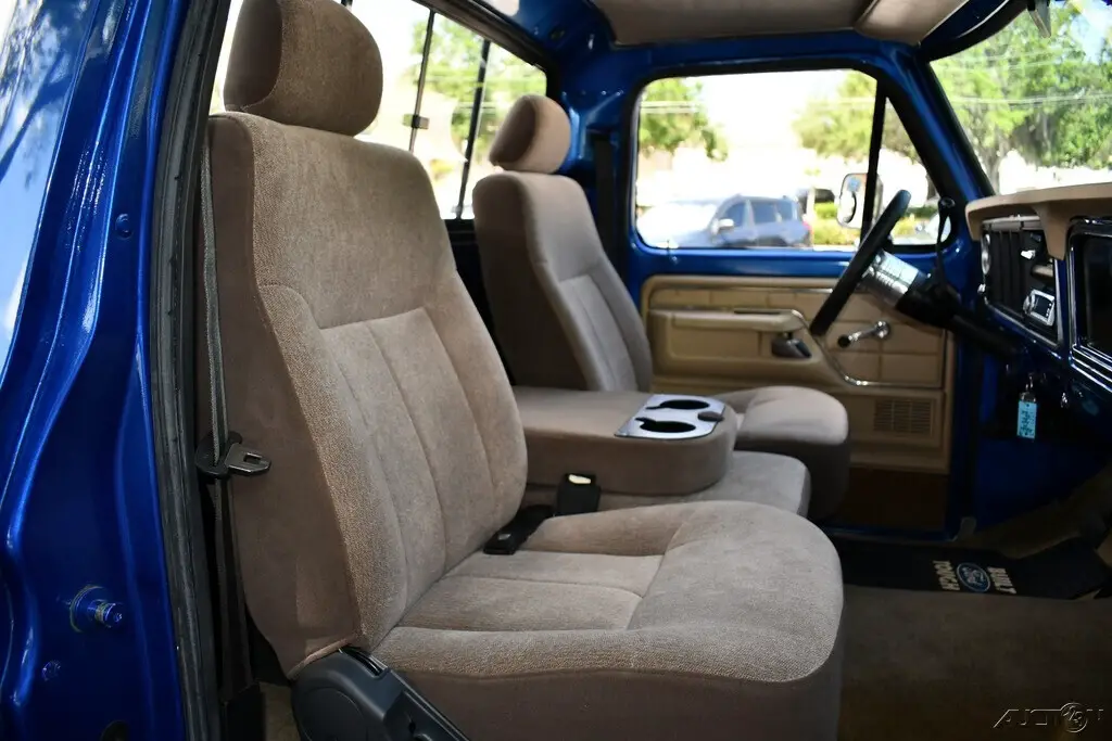 Simply Remarkable 1977 Ford F100 302ci V8 Engine Automatic Transmission Blue Exterior Tan Interior Power Steering Power Brakes AM/FM/CD Stereo Sliding Rear Window Headers Wooden Bed Alloy W