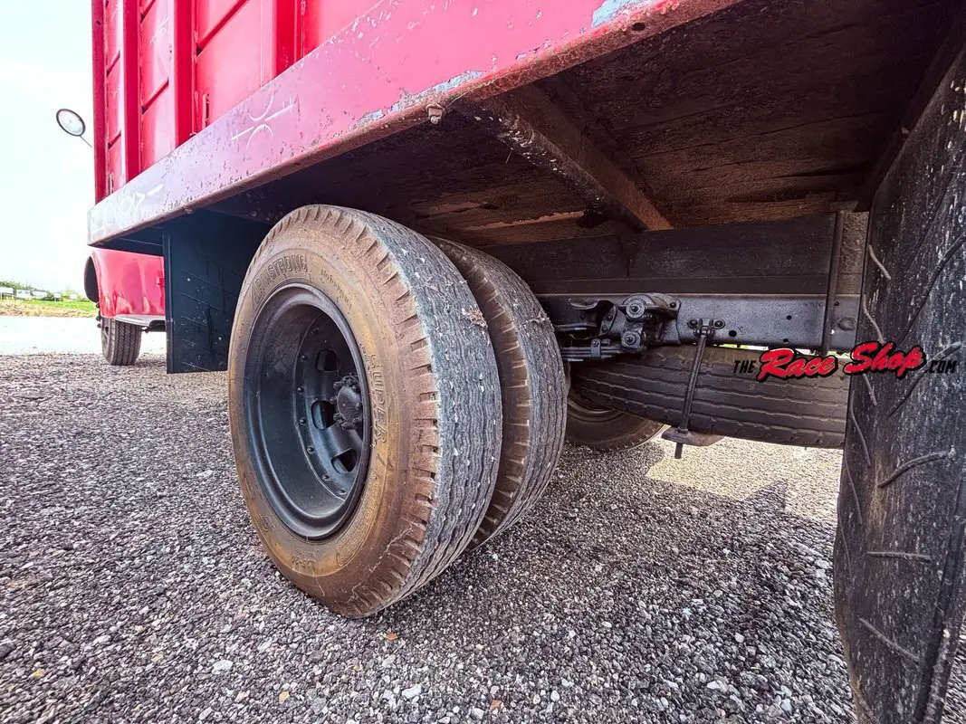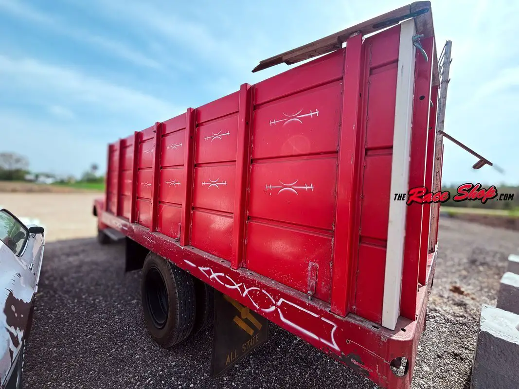 Finished in classic firetruck red with black steel wheels and vintage pinstriping, this big boy still wears its work history with pride. But don't let the patina fool you-under the hood lives a Flathead V8, one of Ford's most legendary engines. It's paired with a 5-speed manual transmission and a 2-speed rear axle, giving you 10 total gears of pulling power-perfect for climbing hills with a full load or cruising backroads like it owns the county.