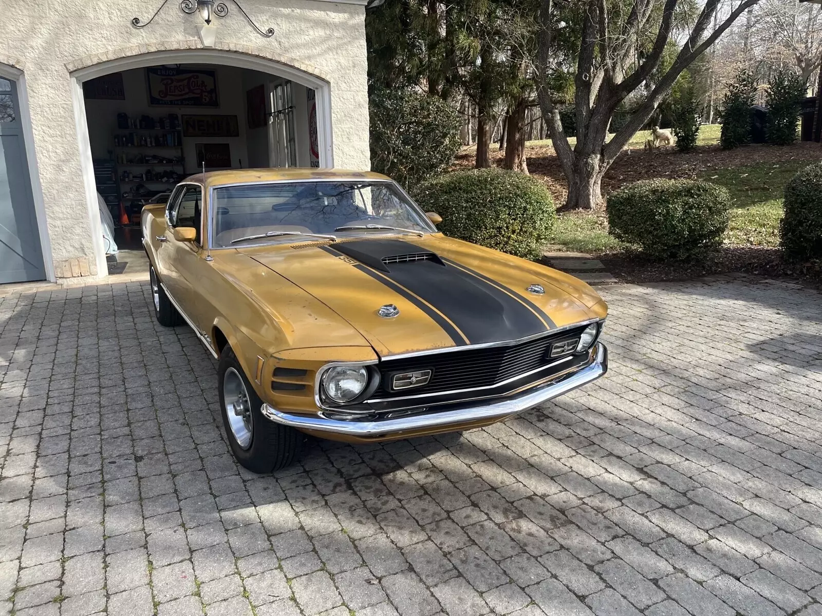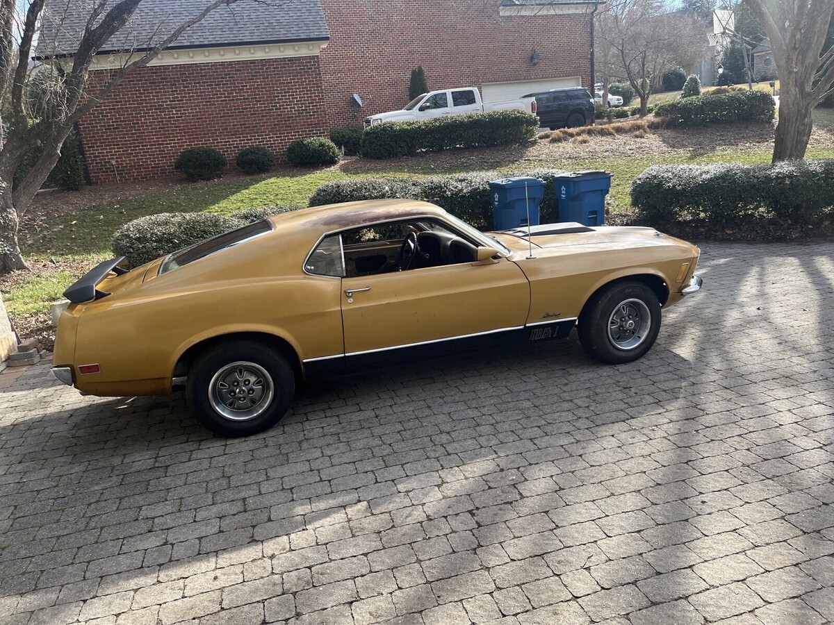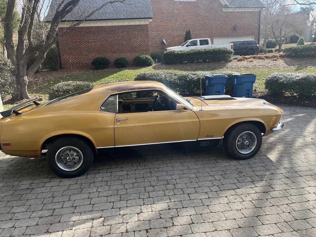 This 1970 Ford Mustang Mach 1 with original 351 Windsor engine is a classic original car that has been owned by the current owner for the past 3 years. The vibrant metallic gold color adds a fun and retro touch to the vehicle, making it stand out on the road. With unknown mileage, this Mustang is sure to hold up for many more years of driving enjoyment. Whether you're a collector or just love classic cars, this Ford Mustang is a great addition to any garage. Best to call me for details. 1-336-580-3330