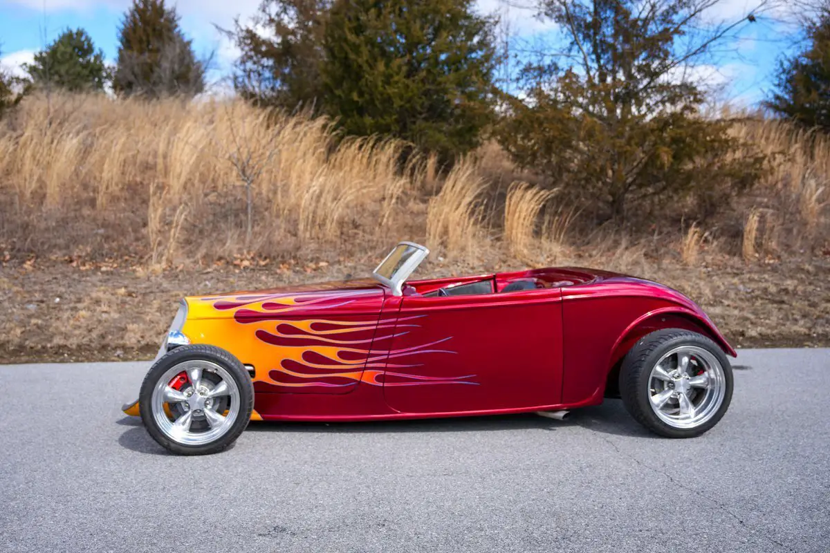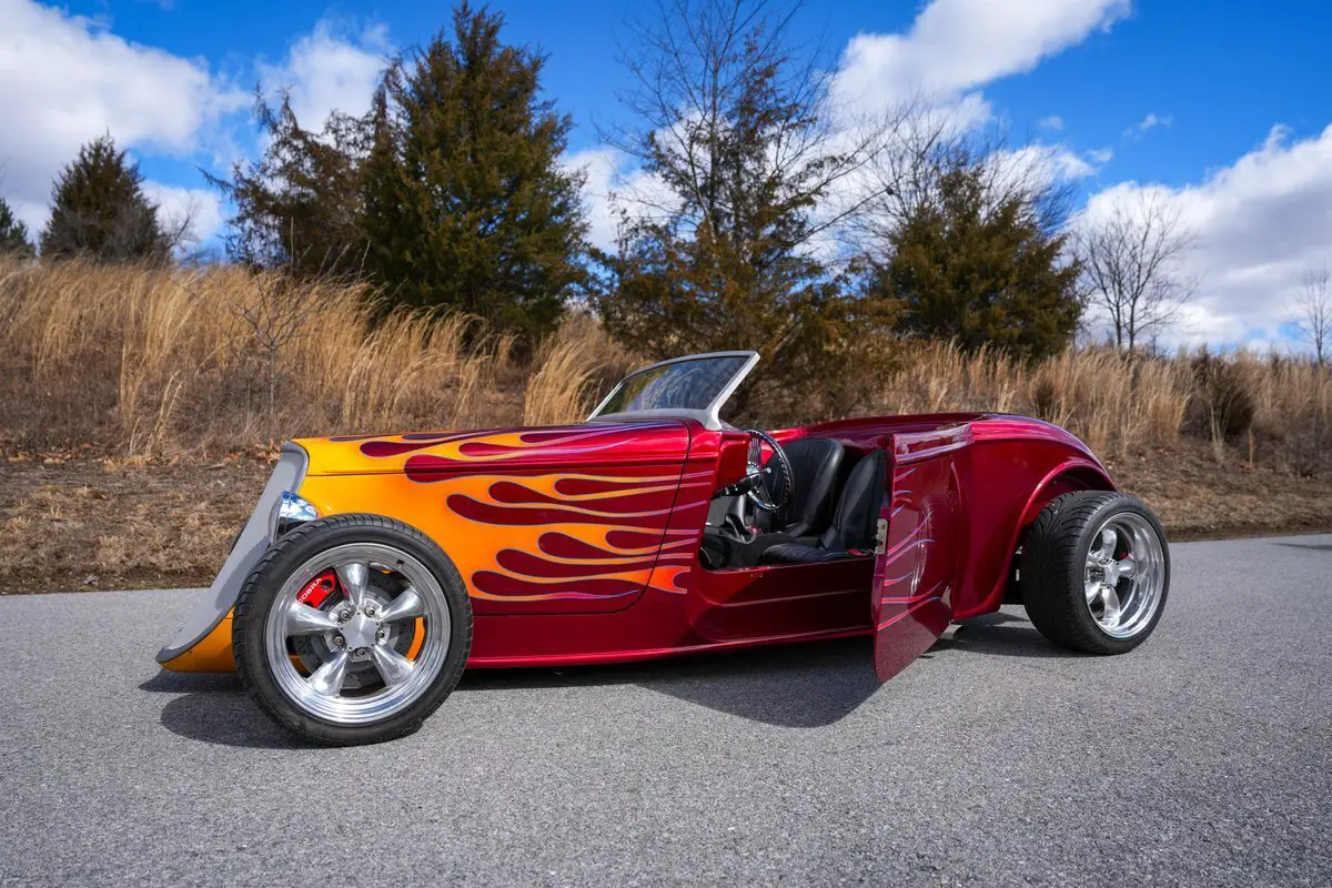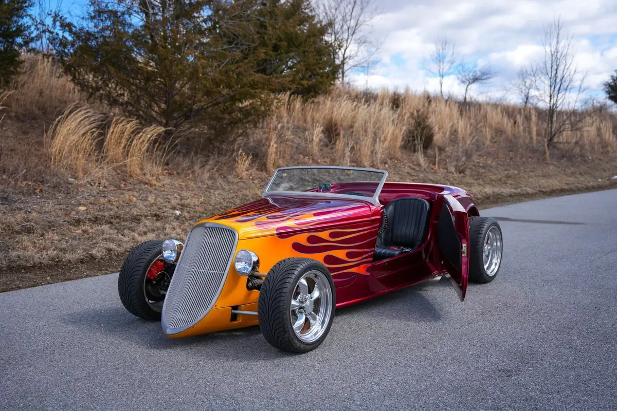 Route 61 Classics is excited to offer this aggressive and professionally built 1933 Ford Factory Five Hot Rod-an all-out modern street machine wrapped in vintage style. With just 21 miles since completion, this build is virtually brand new and showcases some of the best performance components you'll find in a high-end kit car. At the heart of this '33 Ford beats a Ford Racing Supercharged 4.6L V8 engine that delivers incredible power and modern reliability. Ford Racing headers feed into a free-breathing exhaust system, while a Tremec 6-speed manual transmission offers crisp, responsive shifting. Power is sent to a stout Ford 8.8-inch rear end, built to handle the output with ease. This Factory Five rides on electric power steering and 4-wheel disc brakes, giving you the confidence and control of a true performance vehicle. With just 21 miles on the odometer, every component-from drivetrain to suspension-is fresh and ready for open roads or the show circuit. Finished in an eye-catching Retro Flame and Red paint scheme, this car doesn't just perform-it turns heads. Inside, you'll find a simple but sporty black bucket seat setup, ready to keep you planted as you unleash the supercharged power. Whether you're a collector looking for a no-expense-spared custom, or someone dreaming of a street rod that blends muscle car performance with classic hot rod styling-this Factory Five delivers. At Route 61 Classics, we prioritize honest information and transparent pricing. You'll know exactly what you're buying before it ever hits your driveway. Contact us today to make this 1933 Factory Five Ford yours and experience hot rod performance reimagined.