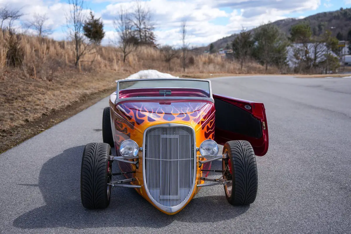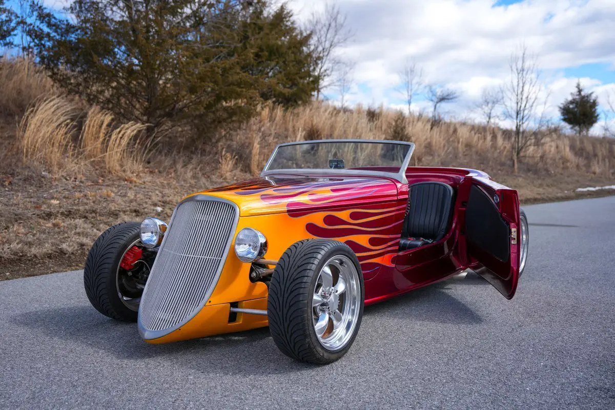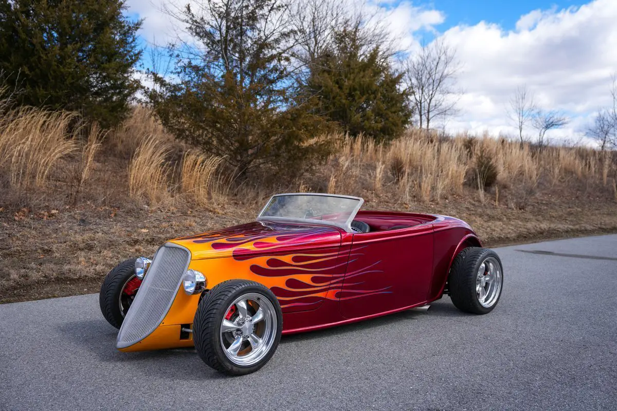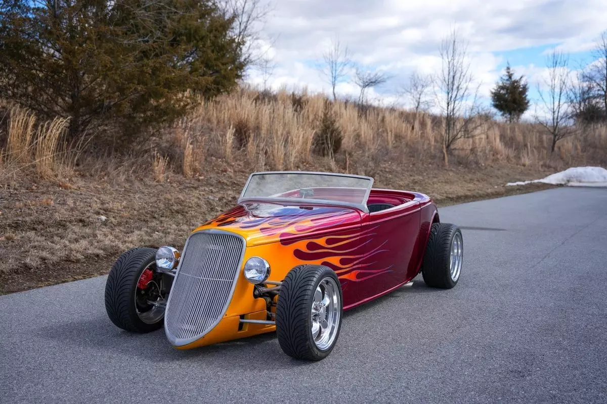 Route 61 Classics is excited to offer this aggressive and professionally built 1933 Ford Factory Five Hot Rod-an all-out modern street machine wrapped in vintage style. With just 21 miles since completion, this build is virtually brand new and showcases some of the best performance components you'll find in a high-end kit car. At the heart of this '33 Ford beats a Ford Racing Supercharged 4.6L V8 engine that delivers incredible power and modern reliability. Ford Racing headers feed into a free-breathing exhaust system, while a Tremec 6-speed manual transmission offers crisp, responsive shifting. Power is sent to a stout Ford 8.8-inch rear end, built to handle the output with ease. This Factory Five rides on electric power steering and 4-wheel disc brakes, giving you the confidence and control of a true performance vehicle. With just 21 miles on the odometer, every component-from drivetrain to suspension-is fresh and ready for open roads or the show circuit. Finished in an eye-catching Retro Flame and Red paint scheme, this car doesn't just perform-it turns heads. Inside, you'll find a simple but sporty black bucket seat setup, ready to keep you planted as you unleash the supercharged power. Whether you're a collector looking for a no-expense-spared custom, or someone dreaming of a street rod that blends muscle car performance with classic hot rod styling-this Factory Five delivers. At Route 61 Classics, we prioritize honest information and transparent pricing. You'll know exactly what you're buying before it ever hits your driveway. Contact us today to make this 1933 Factory Five Ford yours and experience hot rod performance reimagined.