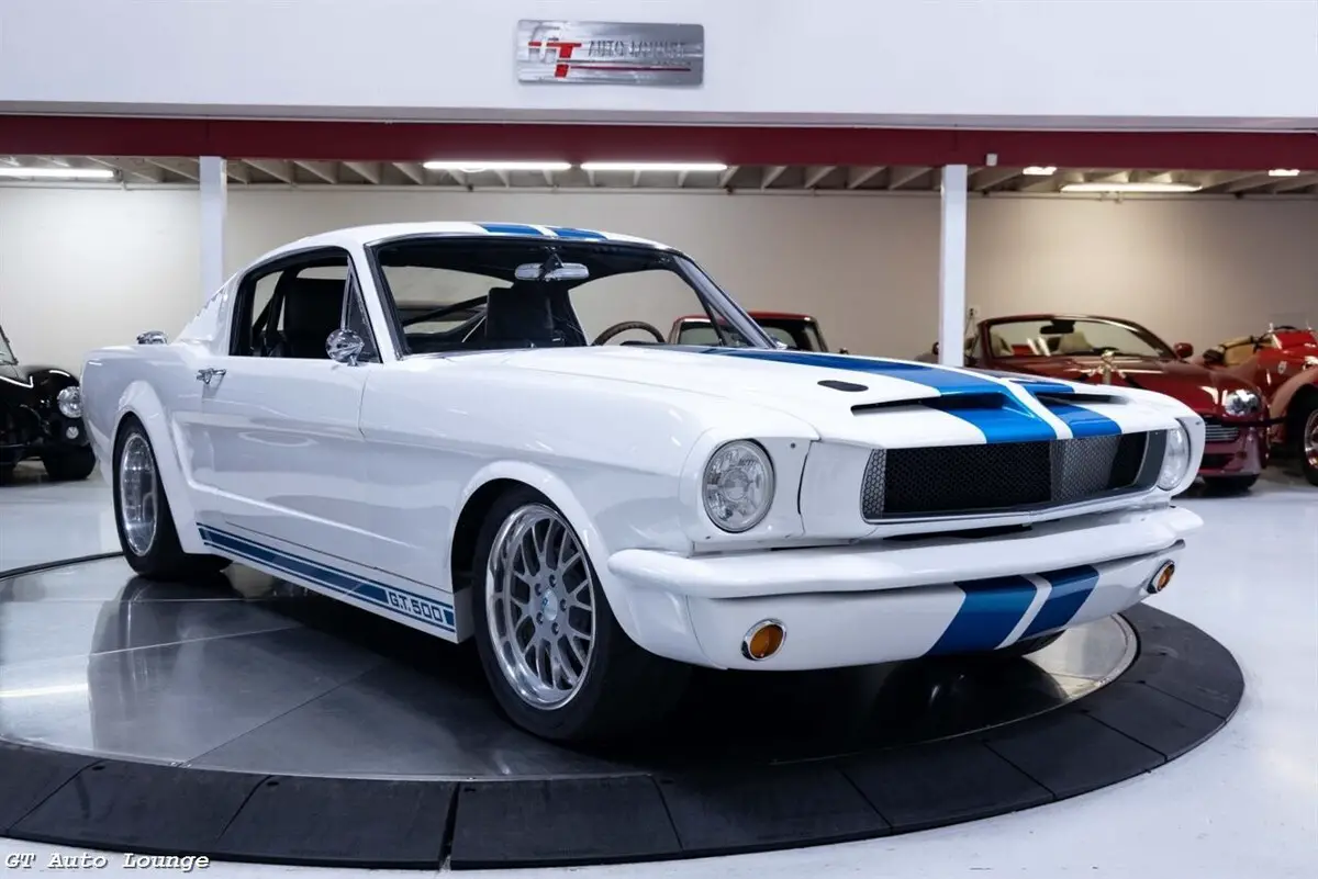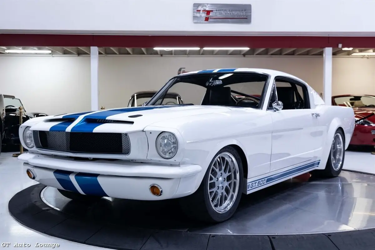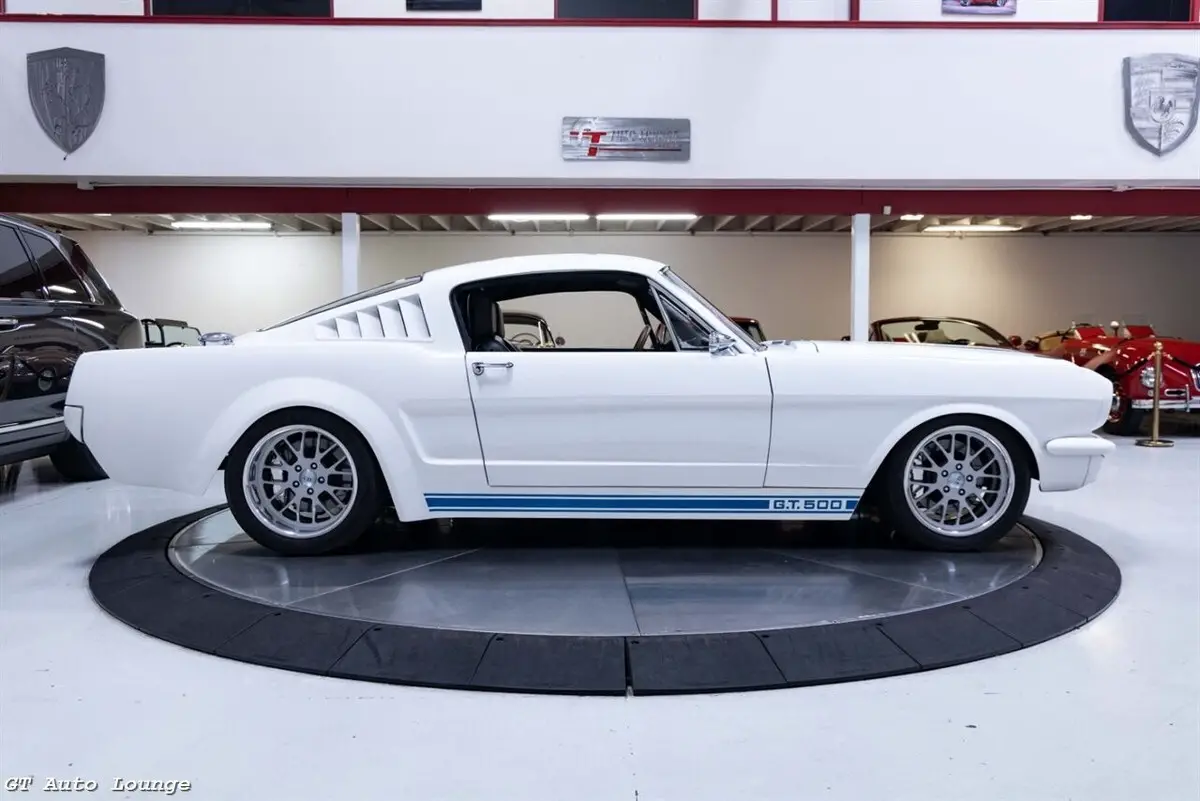 1965 Ford Mustang Pro-Touring Restomod finished in White w/ Blue Stripes over Black Leather Custom Interior. Equipped with a Supercharged 5.8L Trinity V8 mated to a Tremec 6 Speed Manual Transmission. This stunning Mustang is the product of a one-off build by Karl Performance. Features include: Art Morrison Chassis, Four Wheel Wilwood Disc Brakes, Four Wheel Adjustable Coilovers, 4 Link Rear Suspension, Boze 18" Wheels, Rack n Pinion Power Steering, Flaming River Tilt Column, Push Button Start, Cobalt Gauges, Power Windows, Electric E-Brake and more! No expense was spared on this one of a kind custom Ford Mustang! Ready to be driven and enjoyed! For more information please call 916-387-9997.