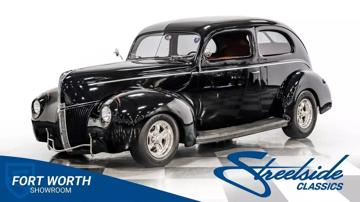 Vehicle Original VIN : 185381963Created as an all-steel masterpiece, this 1940 Ford Tudor Sedan Streetrod displays black paint with subtle deep blue metallic undertones upon close inspection. Custom accent pinstriping adorns the hood and trunk, while the stainless strips across the beltline enhance its classic profile. A distinctive V-butt windshield gives this Ford a unique character among its peers. The street rod stance comes from the American Racing wheels-14-inch diameter up front and 15-inch in the rear-wrapped in Dunlop tires sized 195/70R14 for the front and 235/75R15 for the back, creating a perfect balance of vintage aesthetics and modern performance. Recently completed in late '24, the saddle interior features custom high-class vinyl upholstery with a texture remarkably similar to leather. Auto Meter gauges provide all critical information at a glance. The custom Banjo steering wheel sits atop a tilt column for optimal driving position. Front seat belts add modern safety to the vintage design. A floor-mounted center console with cupholders offers convenient storage, while the hidden Bluetooth radio operates directly from your phone. The air conditioning keeps occupants cool during summer cruising. Motivating this Ford is a Chevrolet 350 cubic inch V8 engine fed by an Edelbrock carburetor and intake manifold. A TH350 3-speed automatic transmission transfers power to the 9-inch rear end. The front suspension utilizes tubular A-arms, adjustable coil-overs, and a sway bar, while the rear employs a solid axle with leaf springs and shocks. Four-wheel power disc brakes provide excellent stopping ability. Dual exhaust with Hedman headers and MagnaFlow mufflers completes the mechanical package, starting at the press of a button located under the center of the rear bumper. HIGHLIGHTS: • 350 V8 Engine • TH350 3-Speed Automatic Transmission • Edelbrock Carburetor • Edelbrock Intake Manifold • Hedman Headers • Dual Exhaust with MagnaFlow Mufflers • 9-Inch Rear End • Tubular A-Arms with Adjustable Coil-Overs • Sway Bar • Four-Wheel Power Disc Brakes • Black Paint with Custom Accent Pinstriping • V-Butt Windshield • Stainless Strips Across Beltline • 14" American Racing Front Wheels with 195/70R14 Dunlop Tires • 15" American Racing Rear Wheels with 235/75R15 Dunlop Tires • Saddle Custom Interior with Bench Seats • Auto Meter Gauges • Tilt Column with Custom Banjo Steering Wheel • Air Conditioning • Bluetooth Radio • Power Steering • Power Window Cranks • 18,388 Miles Since Built Vintage Ford styling with modern performance upgrades, this 1940 Tudor Sedan Streetrod offers genuine driving enjoyment. The 350 V8 power, custom interior, and upgraded chassis create an ideal blend of old-school looks with reliable mechanics. Call today!
