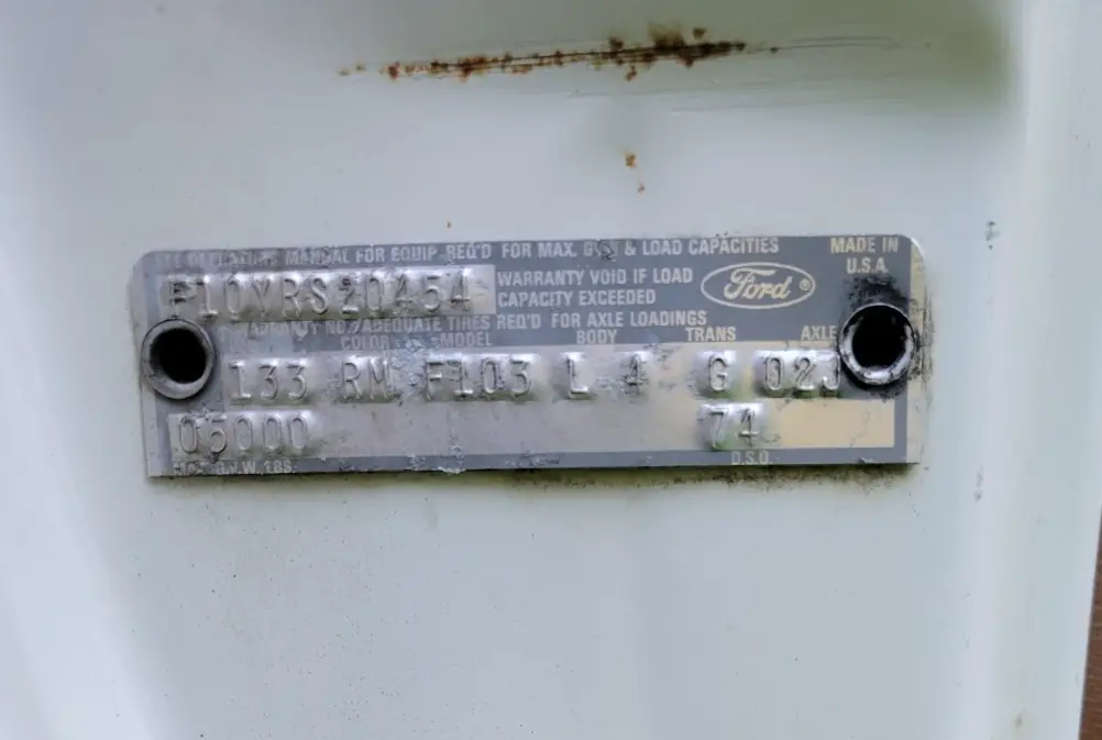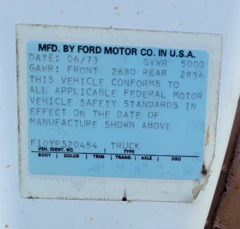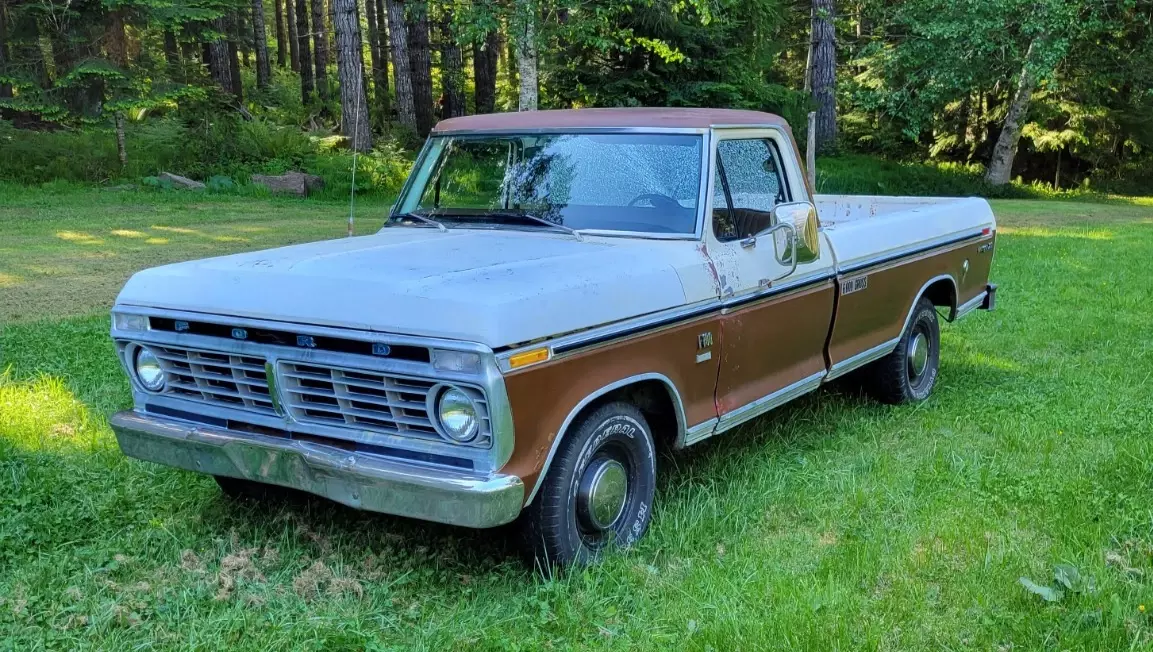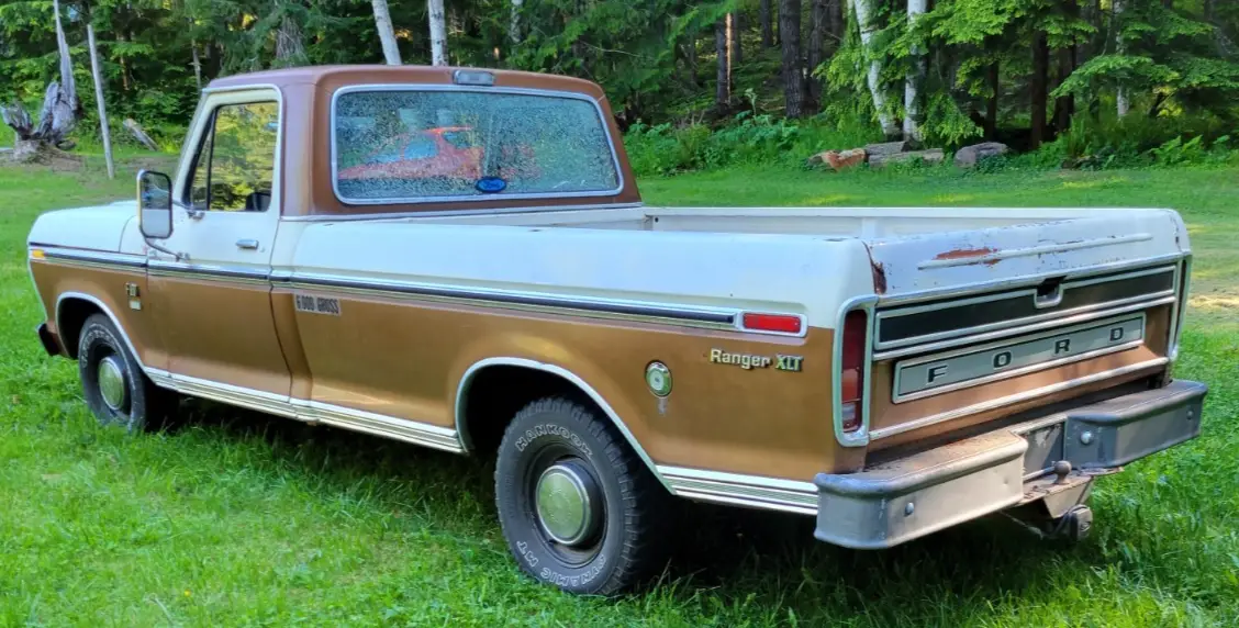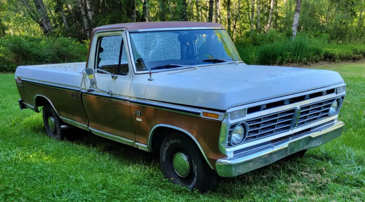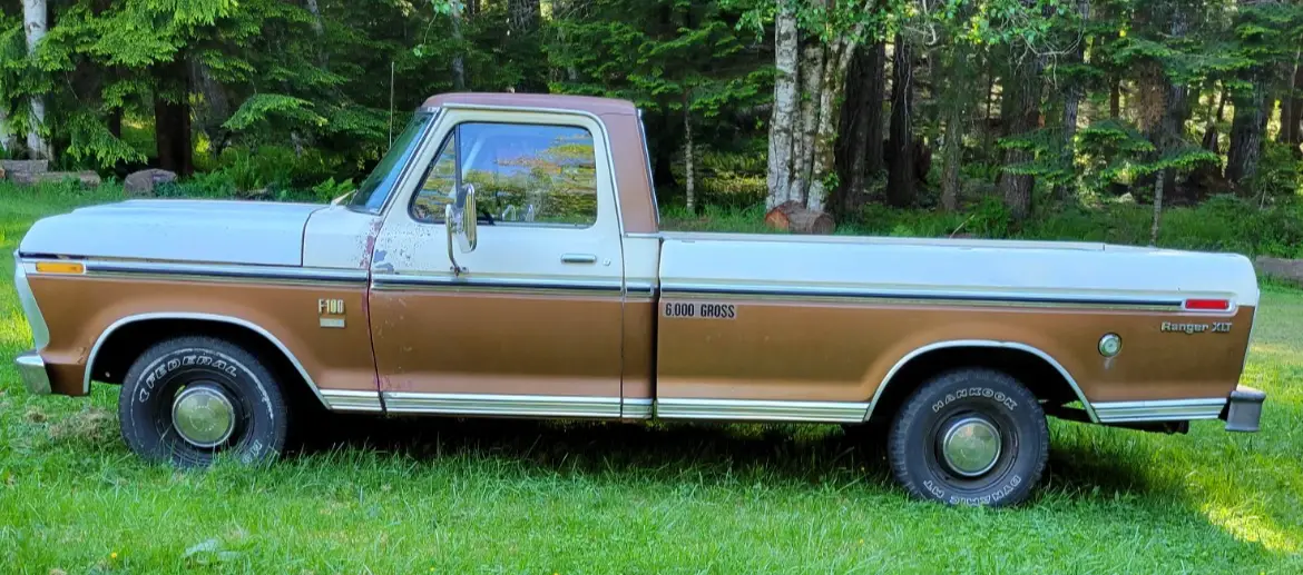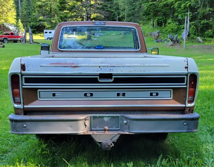 1973 Ford F100 XLT Ranger Trailer Special 360ci, 2-Barrel. Automatic Transmission, Power Steering. Starts right up, runs and drives good. Beautiful Patina. 05234 miles on 5 Digit Odometer. Actual Mileage Unknown. New Starter, Water Pump, Plugs, Plug Wires, Air filter, Rebuilt Carb. Has Electronic Ignition with “Flame Thrower” Coil.