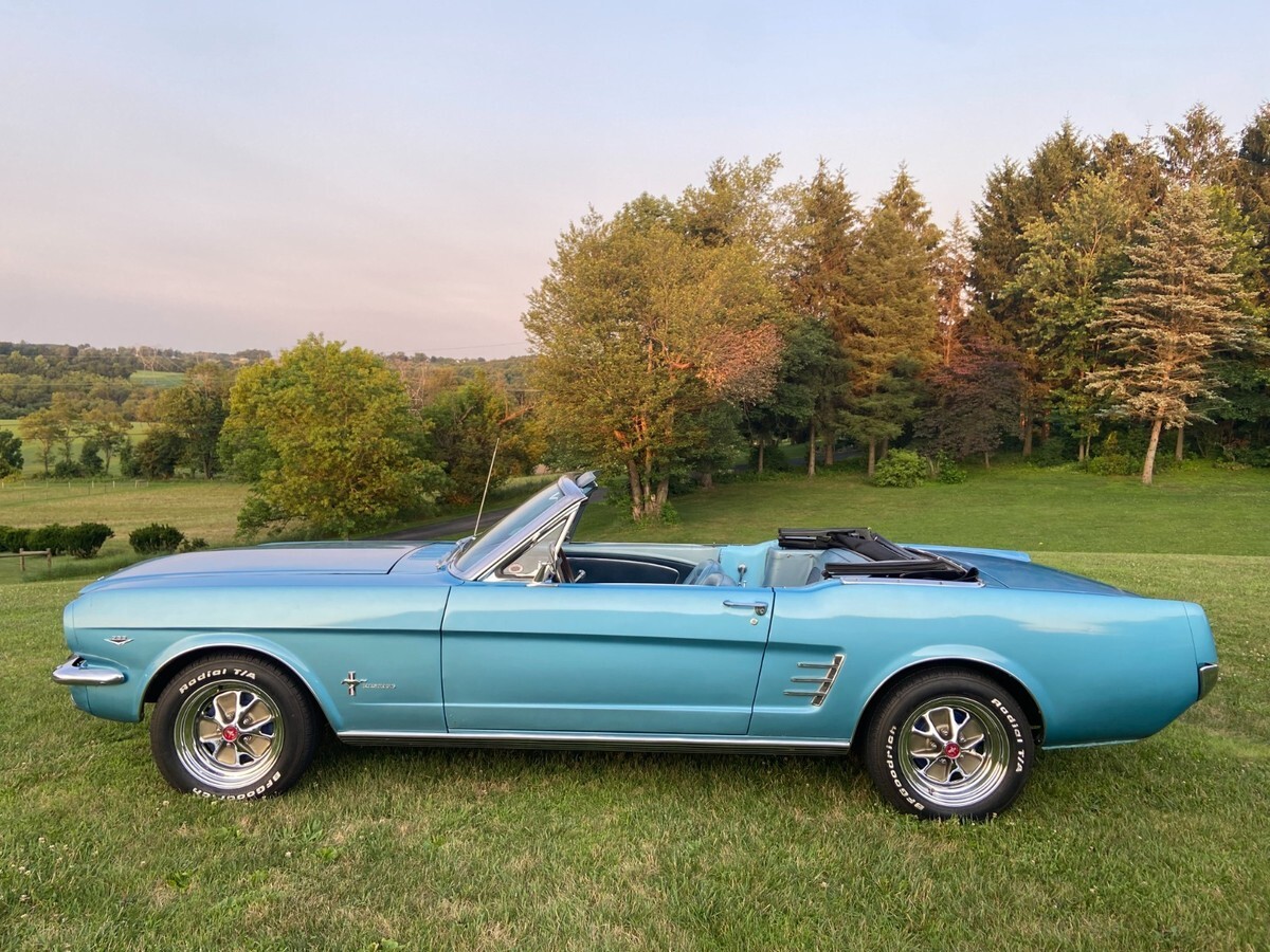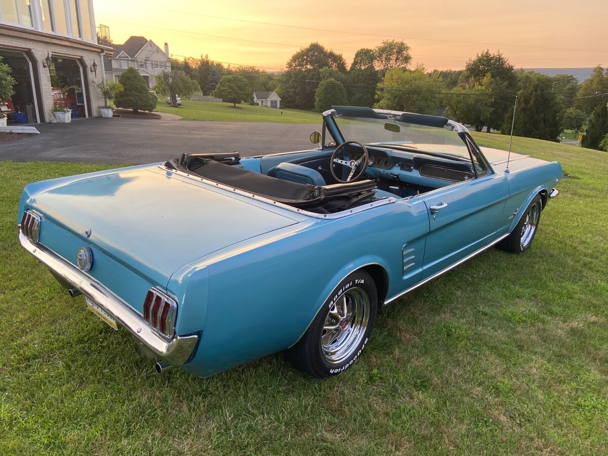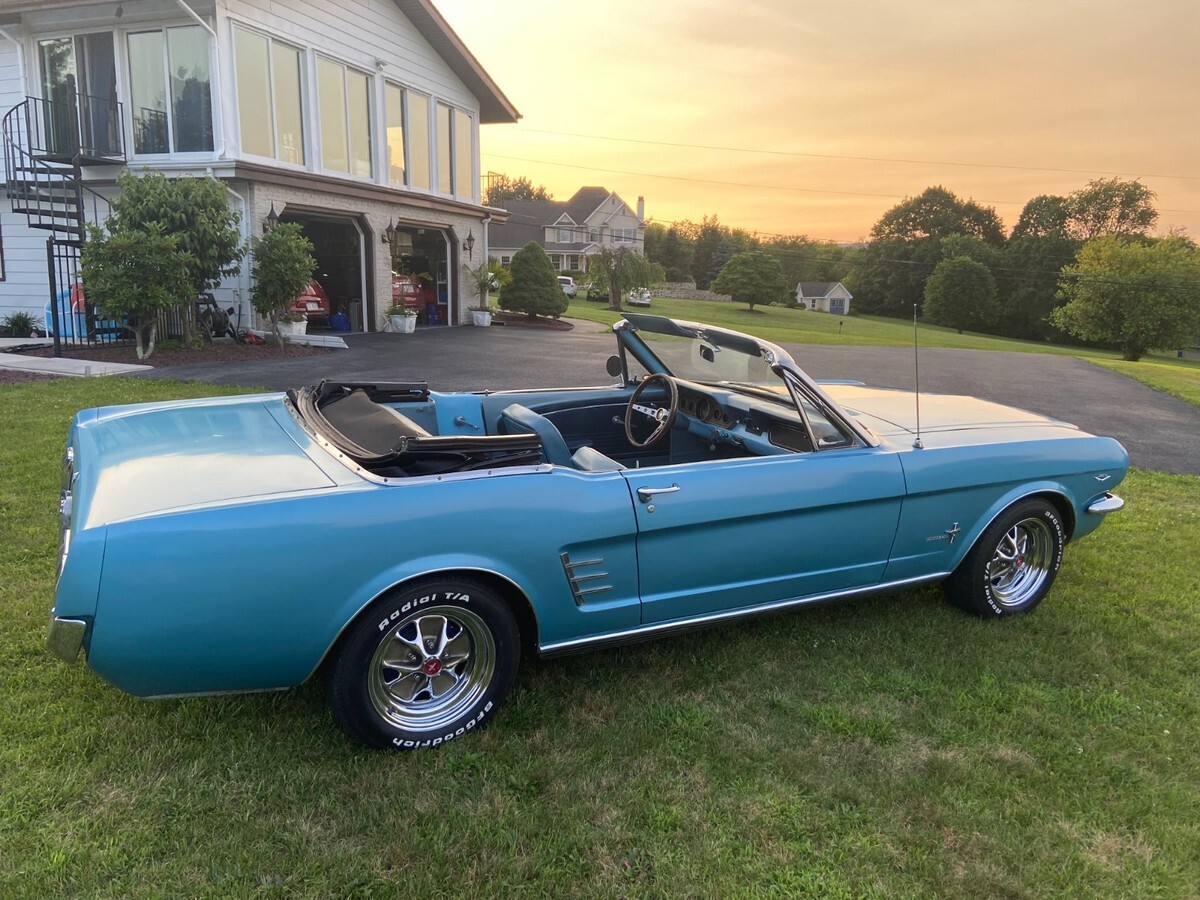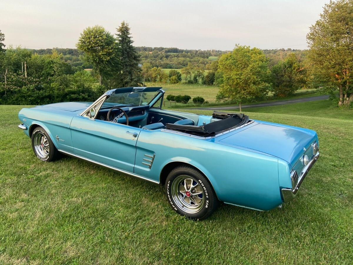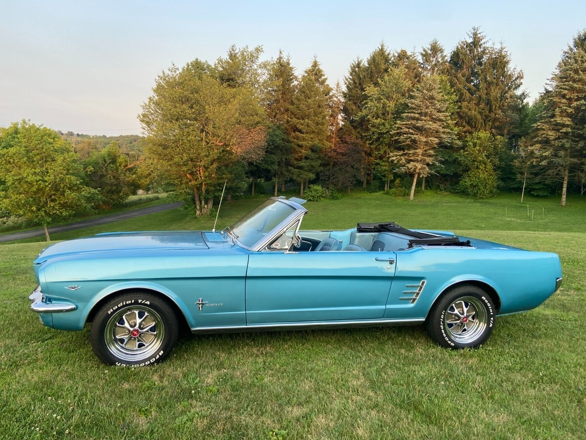 For your consideration is an iconic 1966 Ford Mustang GT Convertible Equipped with a 289 V8 Engine and an Automatic transmission. Factory V8 Car. The Blue Paint shows well and has nice shine and gloss. I would call this a very good driver plus quality vehicle. Undercarriage is very clean, straight, and solid. Has a light undercoat consistent with a factory application. Very solid car. All of the chrome, stainless, emblems, bumpers, Trim, and Grill appear to be original and show nicely as well. New power top installed last year and works great.