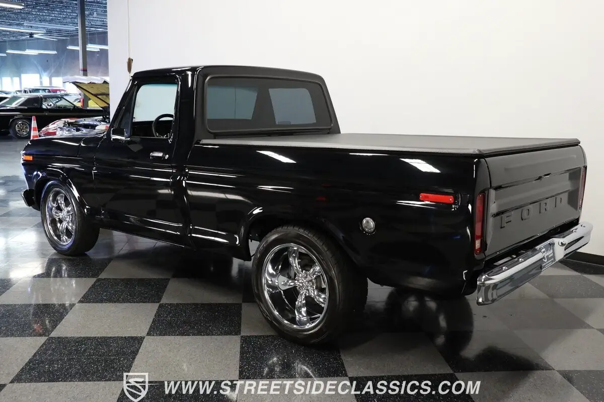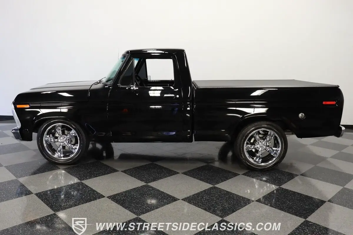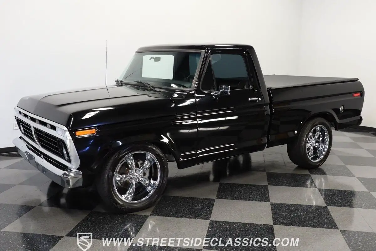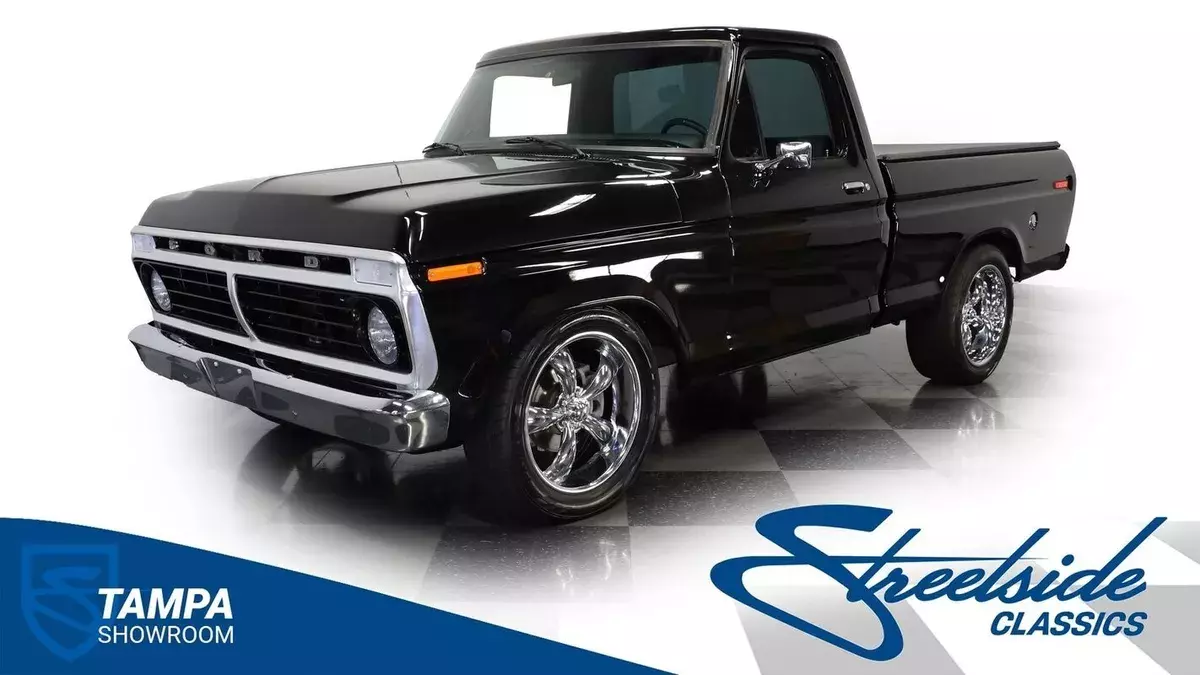 Vehicle Original VIN : F10HNV241355035-TPA 1975 FORD F-100 RESTOMOD HIGHLIGHTS: • 406 Stroker V8 Engine • C6 3-Speed Automatic Transmission • FiTech Fuel Injection System with Go-EFI Live Unit • Edelbrock Aluminum Performer Intake • Ceramic Coated Headers with Heat Wrap • Dual FlowMaster Exhaust System • Billet Distributor with Upgraded Ignition System • CVF Front Runner Serpentine Belt System • Crown Vic Independent Front Suspension Conversion • 4-Wheel Power Disc Brakes • Aluminum Cooling System with Dual Electric Fans • Upgraded Fuel System • New Wiring Throughout • Raven Black PPG Paint System (Wet-Sanded to 8000 Grit) • 20" Coys Chrome Wheels • 235/55R20 Front, 295/45R20 Rear Toyo Tires • Chrome Bumpers • Black Vinyl Tonneau Cover • Dark/Limo Window Tint • Black Interior with Bench Seat • Digital Gauges • Retro Sound Audio System • Vintage A/C System • Power Steering • 3-Spoke Steering Wheel • New Door Panels • Full Dynamat Sound Insulation • Frame-Off Professional Restoration • Chassis Powder Coated High Gloss Black • Only 570 Miles Since Restoration