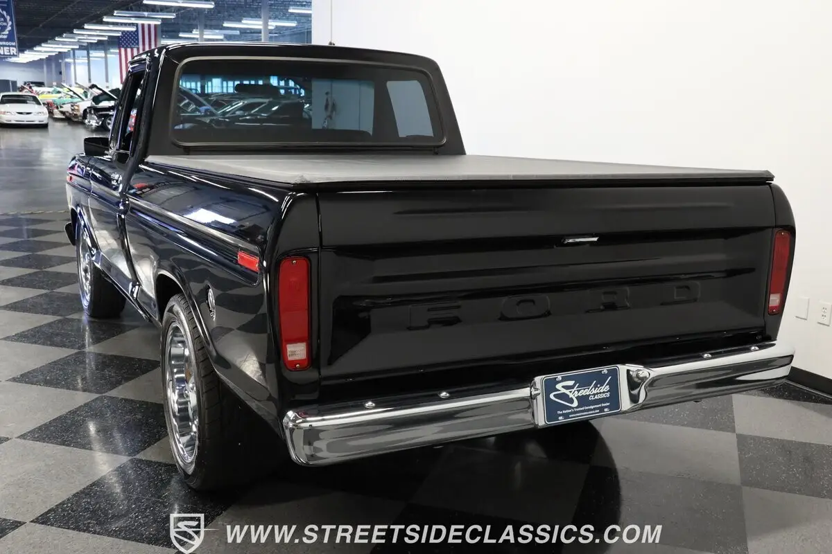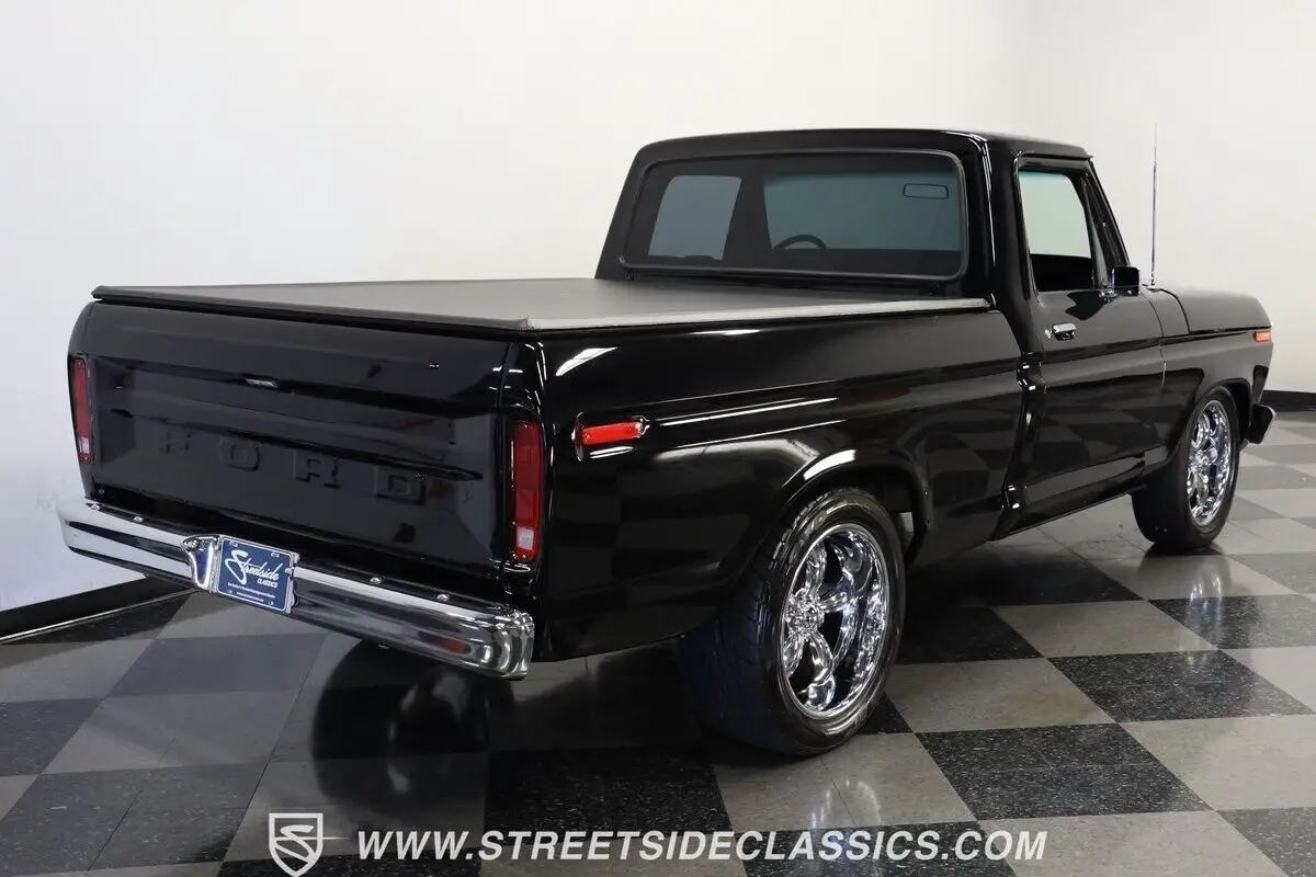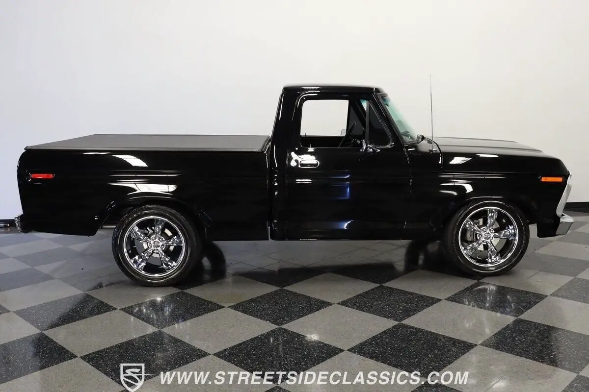 Vehicle Original VIN : F10HNV241355035-TPA 1975 FORD F-100 RESTOMOD HIGHLIGHTS: • 406 Stroker V8 Engine • C6 3-Speed Automatic Transmission • FiTech Fuel Injection System with Go-EFI Live Unit • Edelbrock Aluminum Performer Intake • Ceramic Coated Headers with Heat Wrap • Dual FlowMaster Exhaust System • Billet Distributor with Upgraded Ignition System • CVF Front Runner Serpentine Belt System • Crown Vic Independent Front Suspension Conversion • 4-Wheel Power Disc Brakes • Aluminum Cooling System with Dual Electric Fans • Upgraded Fuel System • New Wiring Throughout • Raven Black PPG Paint System (Wet-Sanded to 8000 Grit) • 20" Coys Chrome Wheels • 235/55R20 Front, 295/45R20 Rear Toyo Tires • Chrome Bumpers • Black Vinyl Tonneau Cover • Dark/Limo Window Tint • Black Interior with Bench Seat • Digital Gauges • Retro Sound Audio System • Vintage A/C System • Power Steering • 3-Spoke Steering Wheel • New Door Panels • Full Dynamat Sound Insulation • Frame-Off Professional Restoration • Chassis Powder Coated High Gloss Black • Only 570 Miles Since Restoration