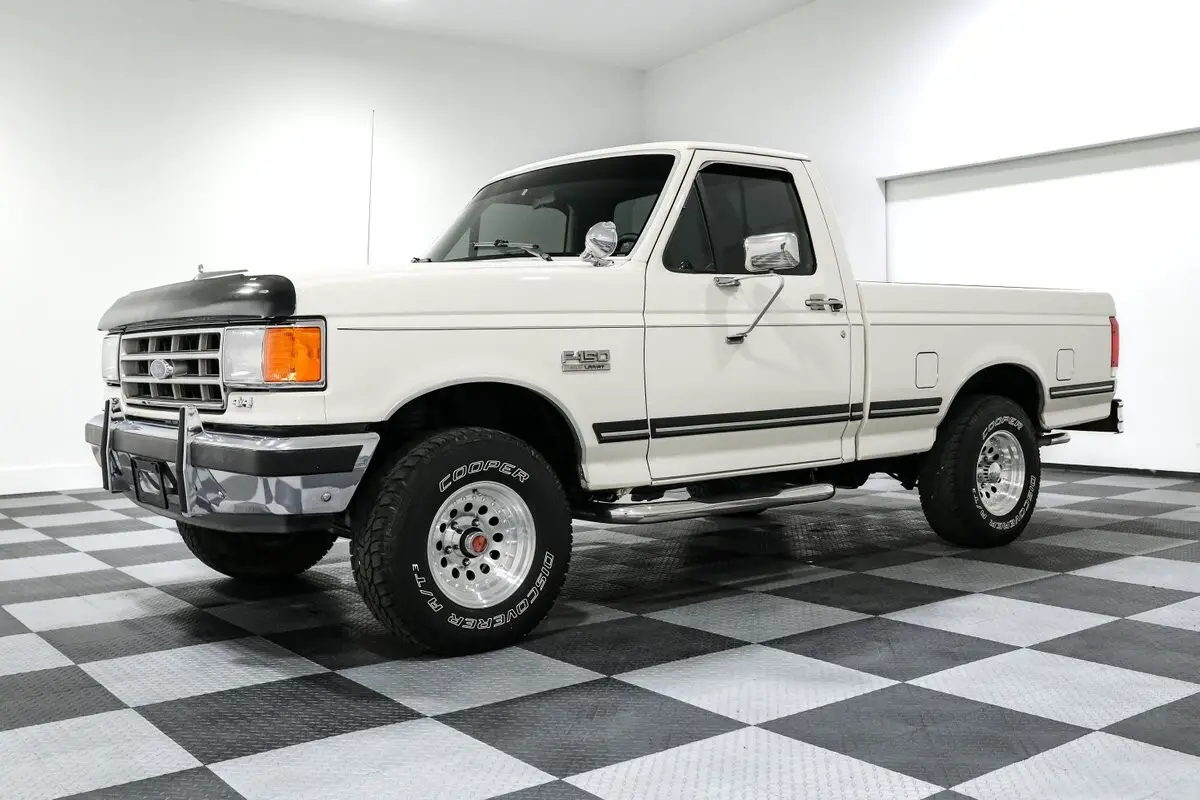Meet the 1988 Ford F-150. An honest-to-goodness workhorse with just the right touch of modern flair. Finished in classic white and riding high on 31x10.5R15 Cooper Discoverer AT3s wrapped around sharp aftermarket alloy wheels, this truck means business whether you're headed to the job site or down a dirt road.