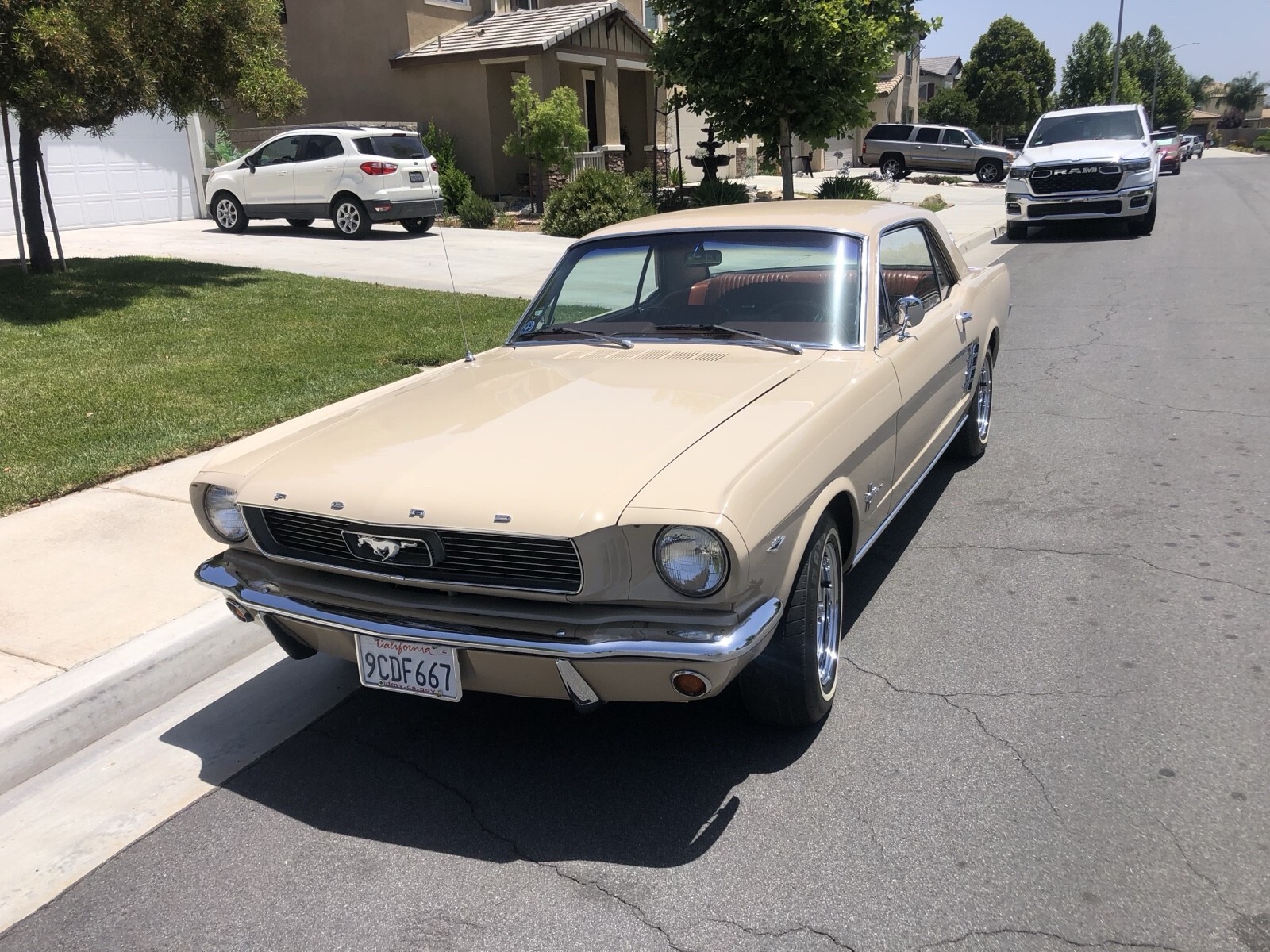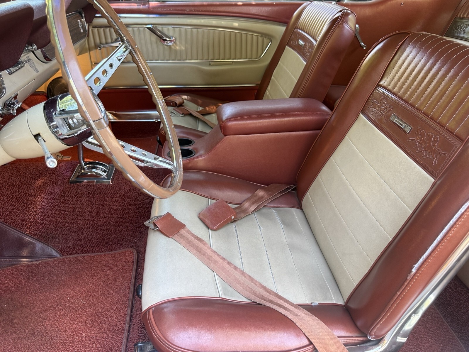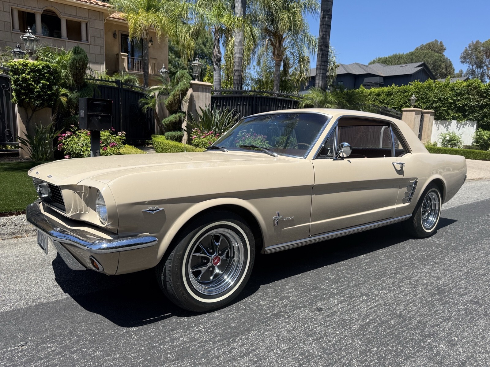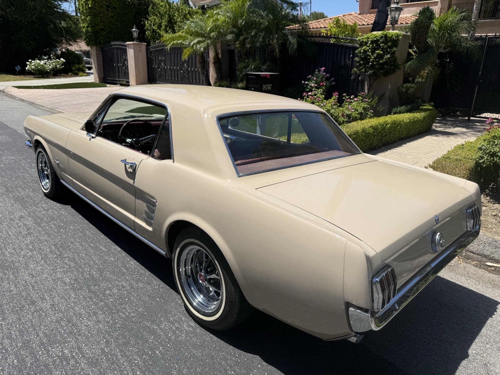 1966 Ford Mustang deluxe edition this beautiful car has been always garage kept there’s no rust issues at all. It has won trophies local car shows the body and paint is excellent condition. Upholstery has a deluxe interior by Mustang also has a deluxe steering wheel deluxe dash cluster And custom wheels on the shape. You will definitely not be disappointed. The carburetor leaks a little bit once in a while, but runs great if you have any questions, please do not hesitate to call me 818-355-2620 my name is Steve