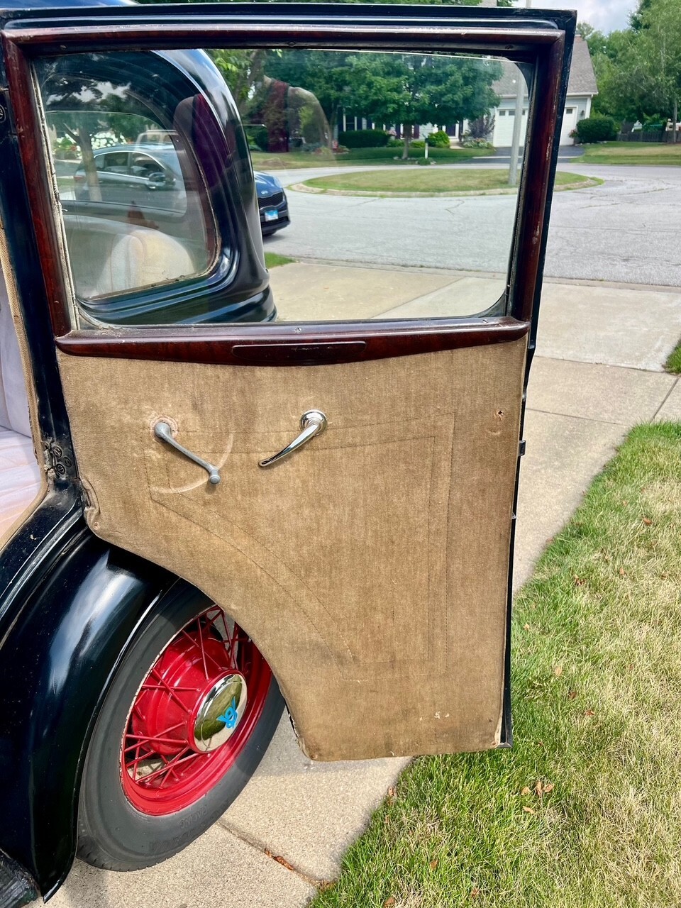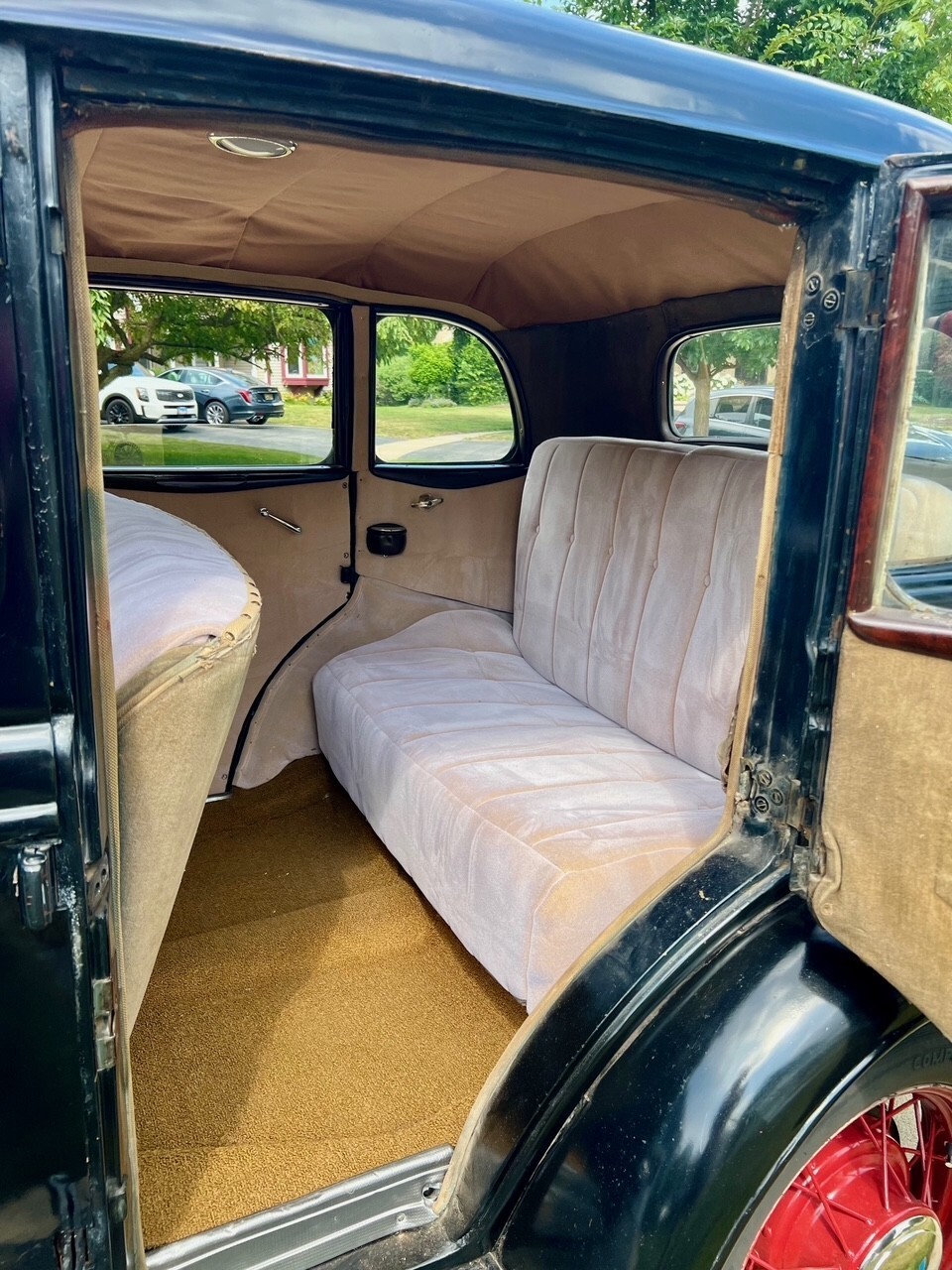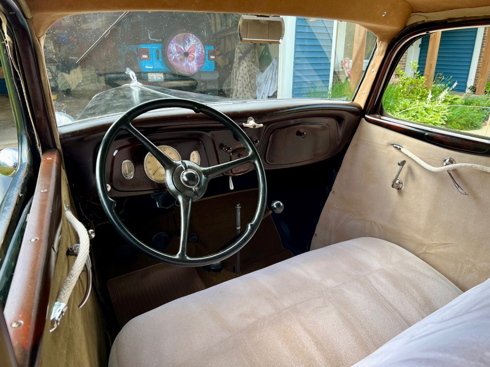 1934 Ford Model 40 Sedan for sale. This is the car from the film "The Highwaymen" with Kevin Costner. Also the last car Bonnie & Clyde ever drove because it was the fastest production car at that time. This car runs and stops well. Original Ford V-8 power plant mated to a smooth 3-speed manual transmission. - Coker Excelsior tires and tubes. - rebuilt Stromberg 97 carburetor- Ford generator- rebuilt stock helmet distributor with new points, advance weights and dwell new spark plugs- solid all-steel original car, no fiberglass- new safety laminated glass in windshield- all windows, including rear quarters, work (one cracked)- new roof insert - complete interior and new beige upholstery with imitation mohair - new custom carpeting and fitted headliner- new chrome hubcaps with painted centers- original wood grain dash with tilt-out windshield and cigar lighter- good holding emergency brake- working spare tire- steel solid floor pans with a few patches- new electrical terminal block with fuse