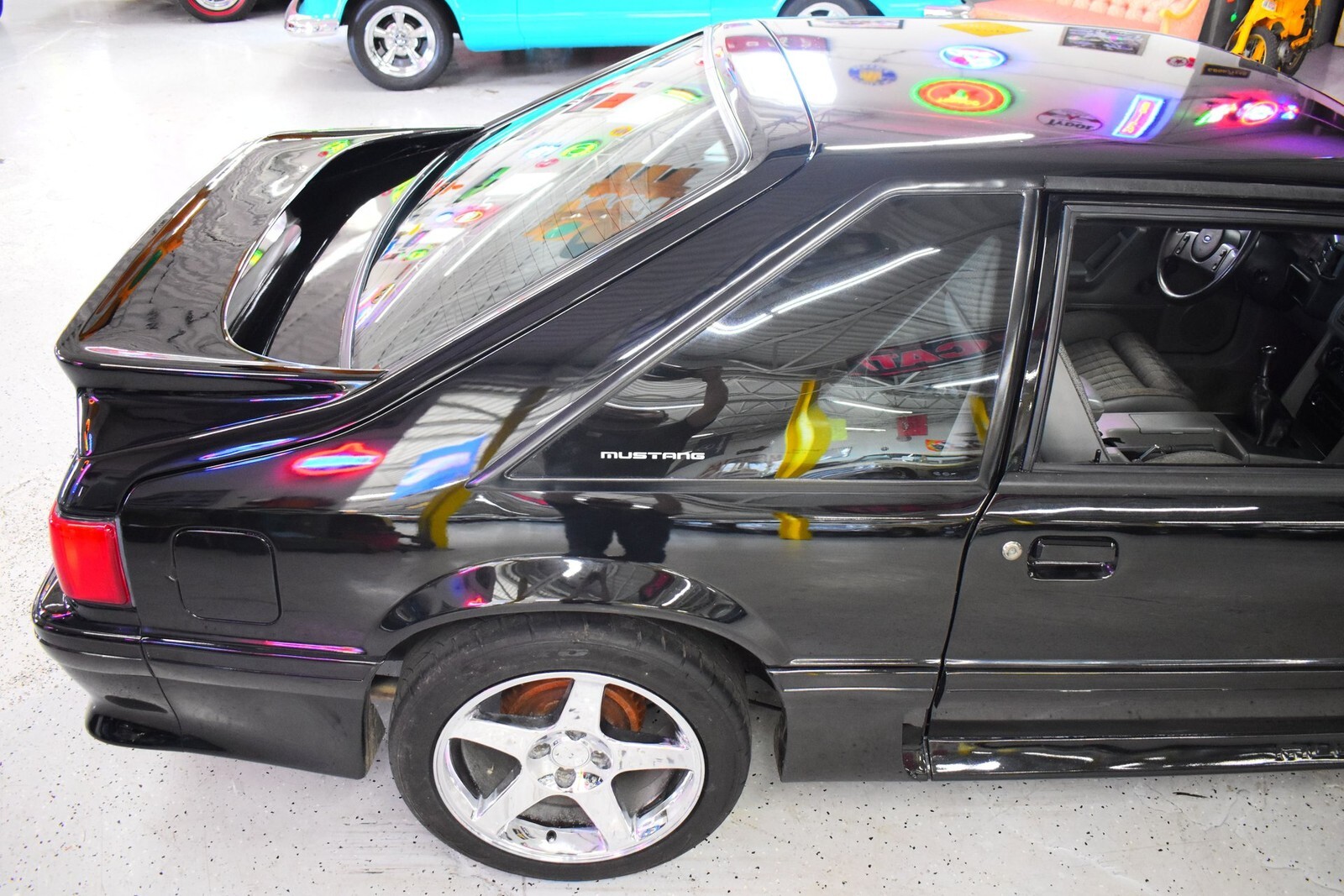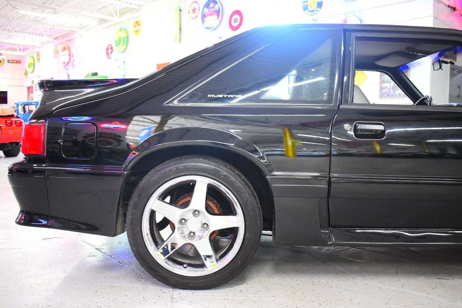 Under the hood is the iconic 5.0L V8, paired with a 5-speed manual transmission. The car maintains its original drivetrain and setup, with the notable addition of a Borla performance exhaust system, delivering a deeper, throatier tone and enhancing the Mustang's classic muscle sound.