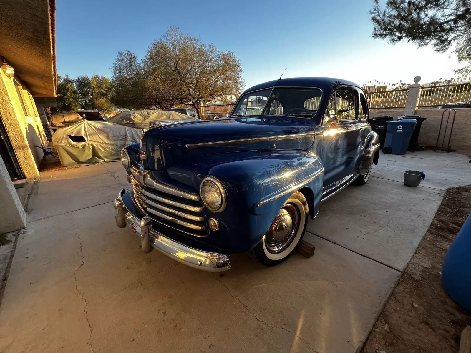 The 1947 Ford Super Deluxe is a classic restored vehicle that has been in the owner's possession for over 5 years. This blue-colored car is in clean condition and is primarily used for weekend drives, making it a reliable and stylish choice for leisurely outings. Perfect for car enthusiasts who appreciate vintage vehicles with a modern twist.