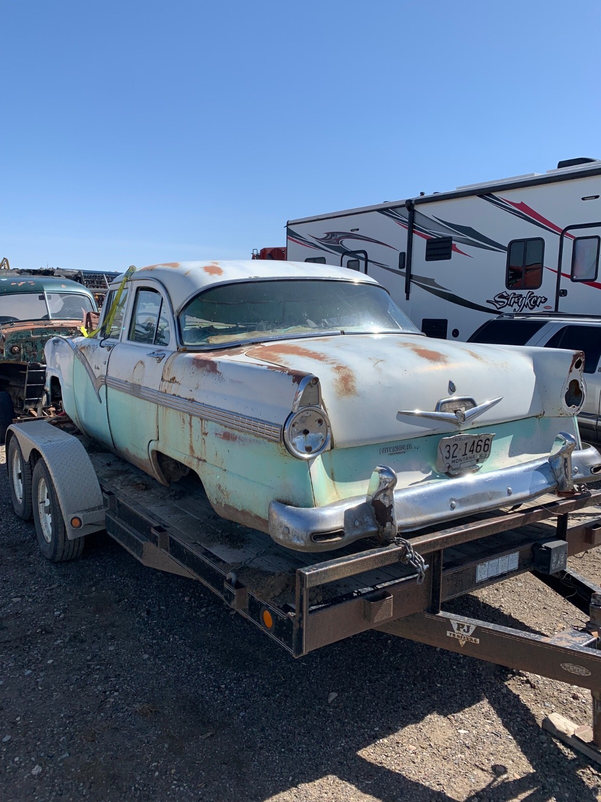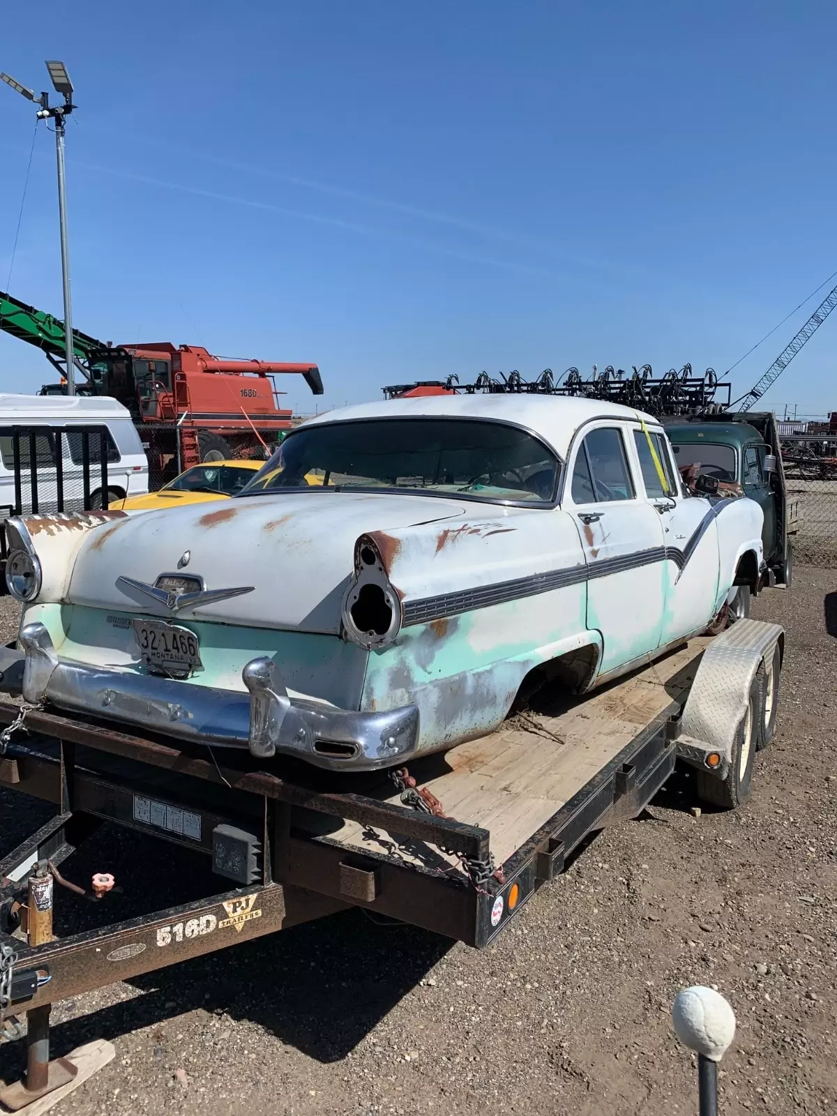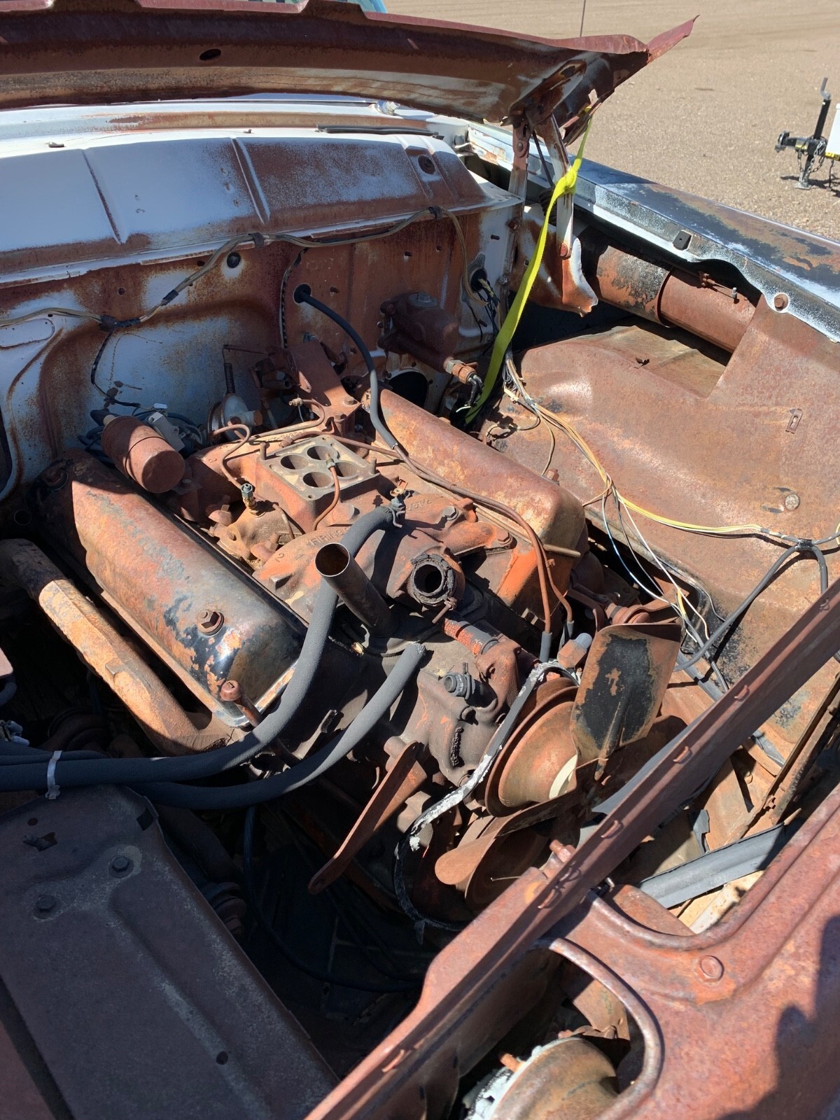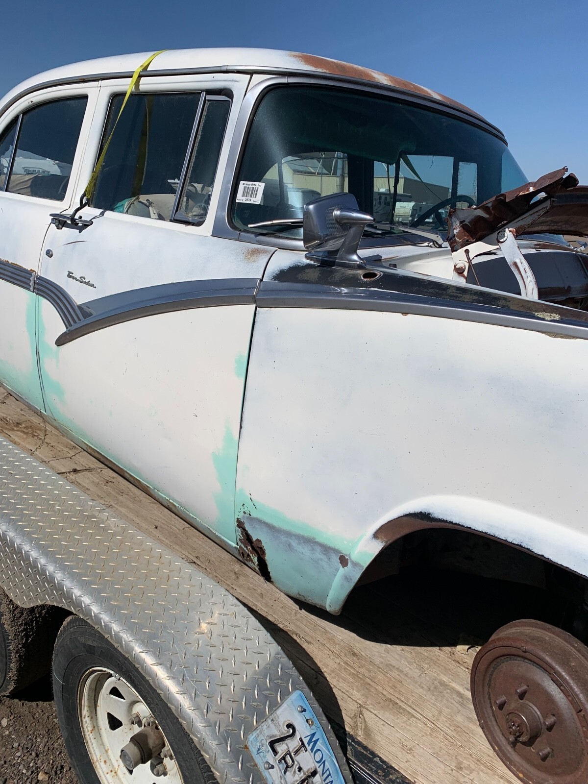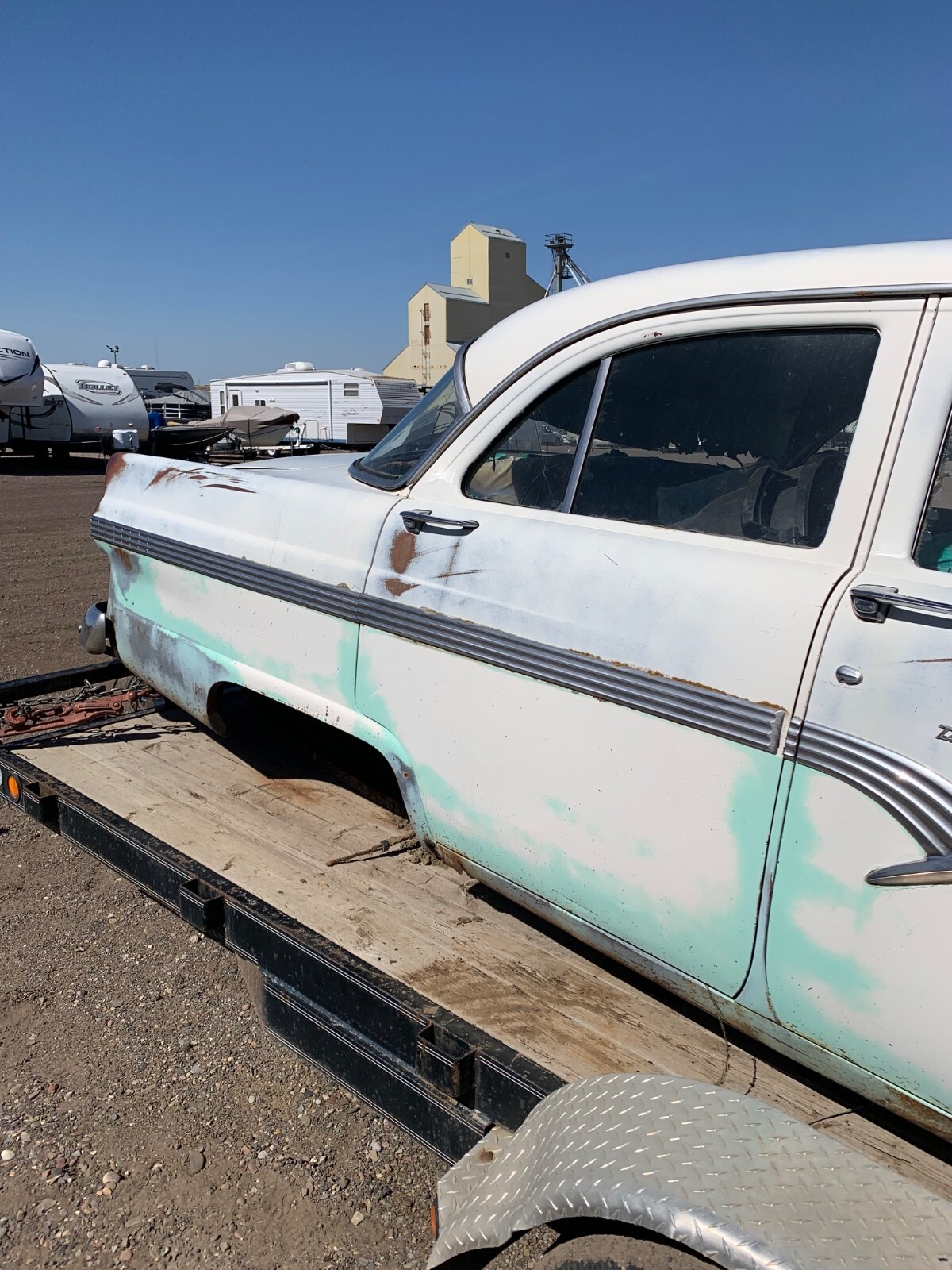 1956 Ford 4 door town sedan, good solid car to restore-very little rust. no hood it doesn't have the original rearend. THERE IS A REAR END INSTALLED SO IT IS A ROLLER. I believe the engine is a 312. all glass is good. Good for parts but I would like to see this car saved. I will help load for transport. NO TITLE. Sold with a notarized bill of sale. will only accept payment with cashiers, personal check or money wire.