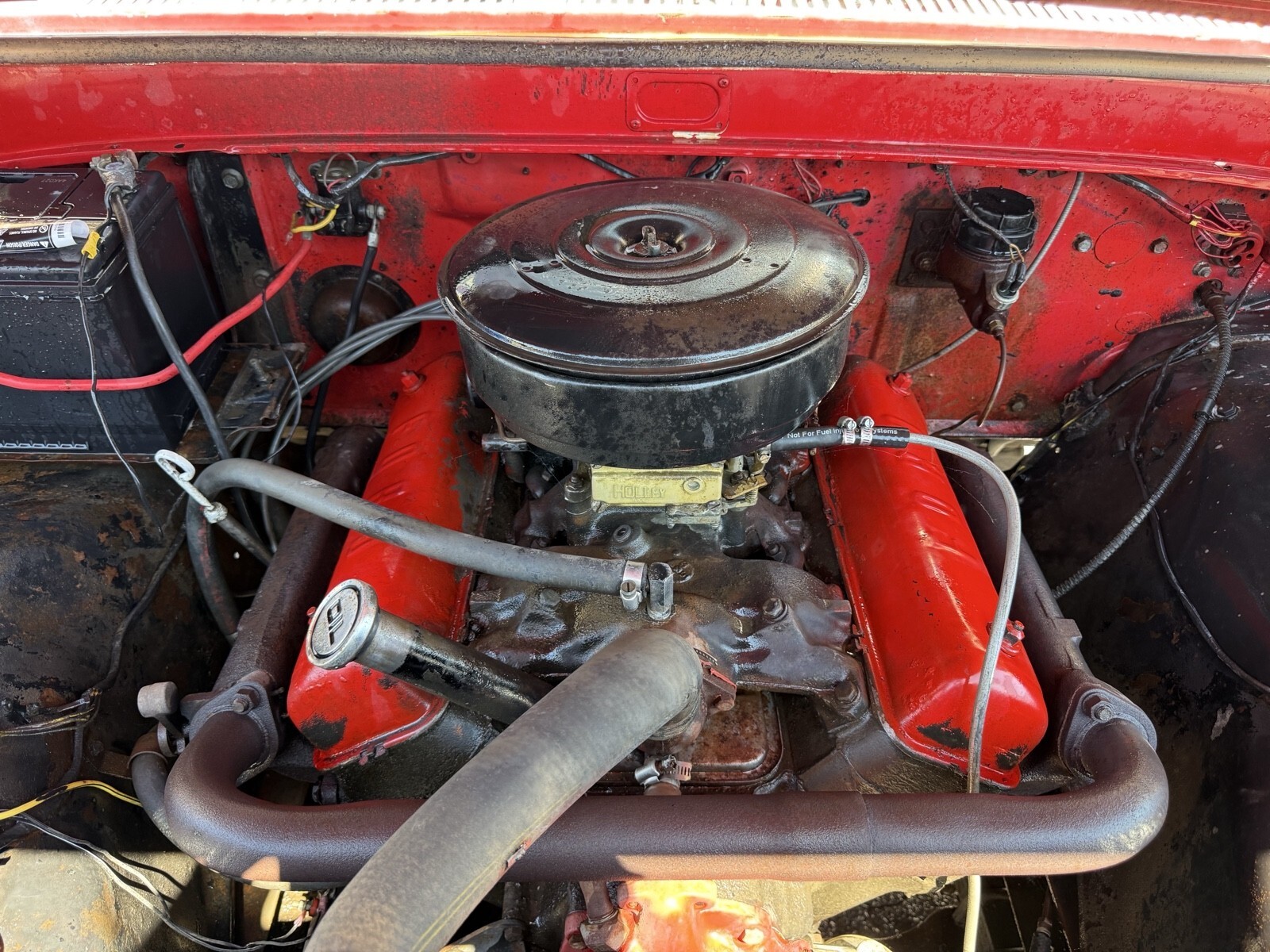 This 1961 Ford F100 is a classic red pickup truck with a clean title and only 82,000 miles on the odometer. The owner has had it for one year and while it is drivable, it is not regularly driven. This original vehicle retains its vintage charm and appeal, making it a unique and sought-after collector's item for Ford enthusiasts and fans of classic trucks.