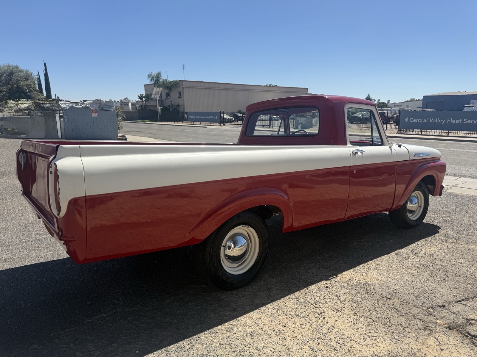 61 Ford F 100 unibody long wall base very hard to see sharp looking pick up all their paint job not a show Truck daily driver, but gets lots of attention to V8 factory with a four speed on the floor runs and drives good no issues has brand new tires fairly clean inside and out no major rust great little truck for driver type vehicle. It is a clean California title in hand Please do not bid on vehicle unless you’re willing to place deposit or purchase if not, I will have you flagged