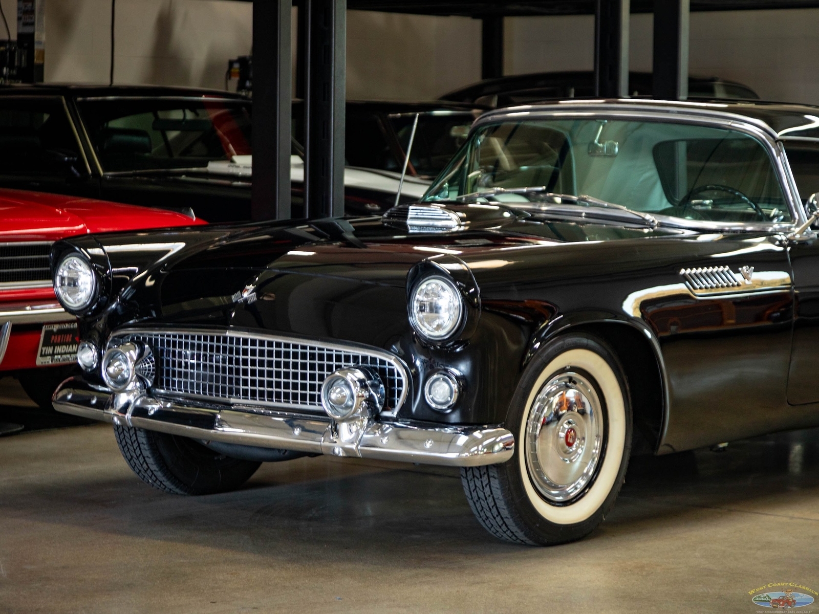 West Coast Classics are proud to present an excellent and always garaged and rust free example of this early 1955 Ford Thunderbird with factory specifications and options including; 'Ford-o-matic' automatic transmission, Telescopic steering, Power Front Disc Brakes, fender skirts, tach, clock, power 4-way driver seat, heater and defroster, AM radio and it's original 292 V8 4V engine and with highly desirable and striking Thunderbird chrome wheels!
