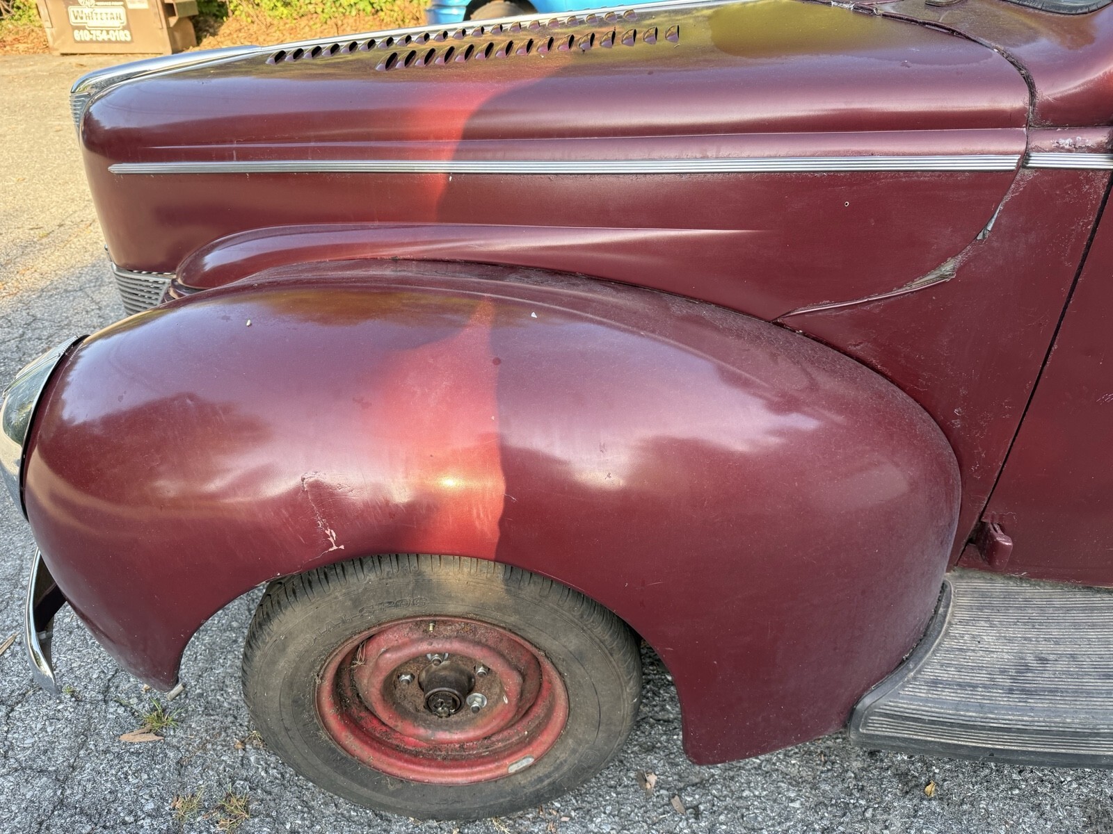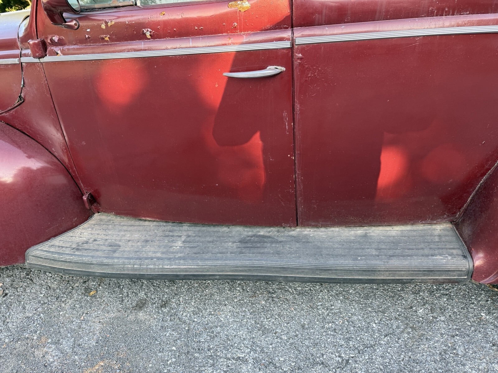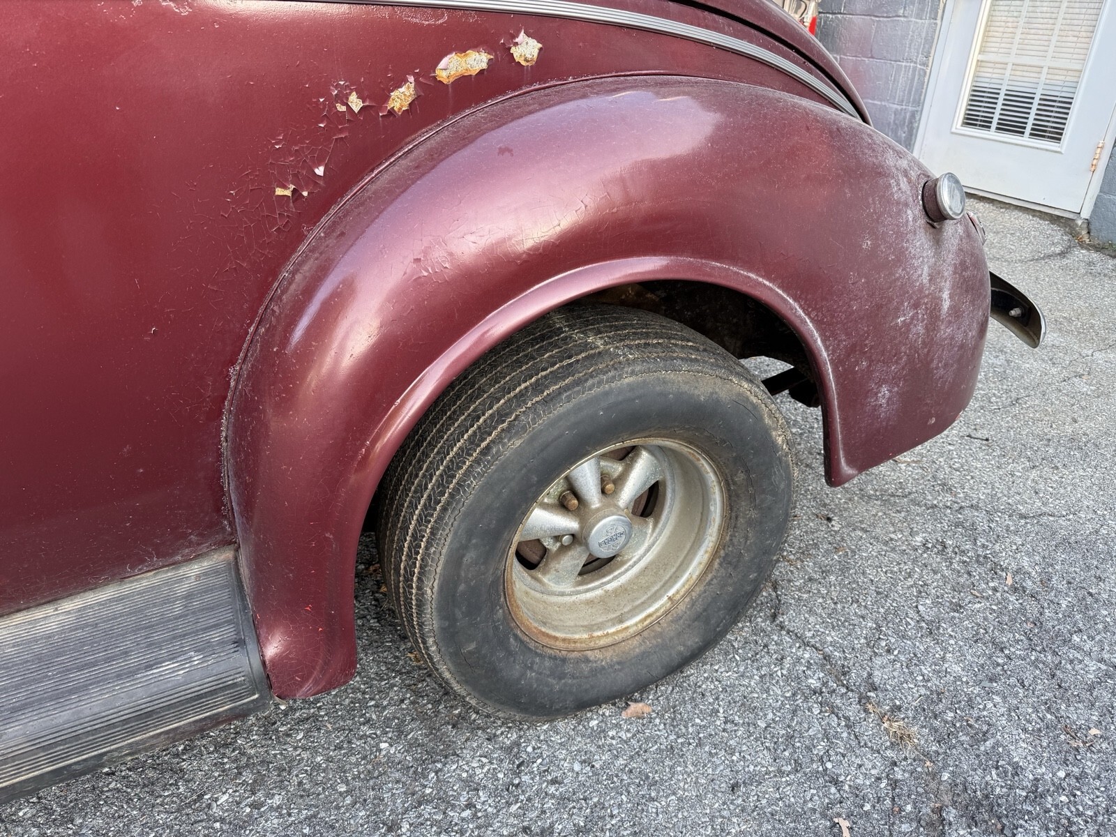 Body has had some floor repairs. Rear fenders are flared. Dashboard is complete and all garnish moldings are present. Excellent louvered hold. Excellent stainless side trim. Very nice grill.