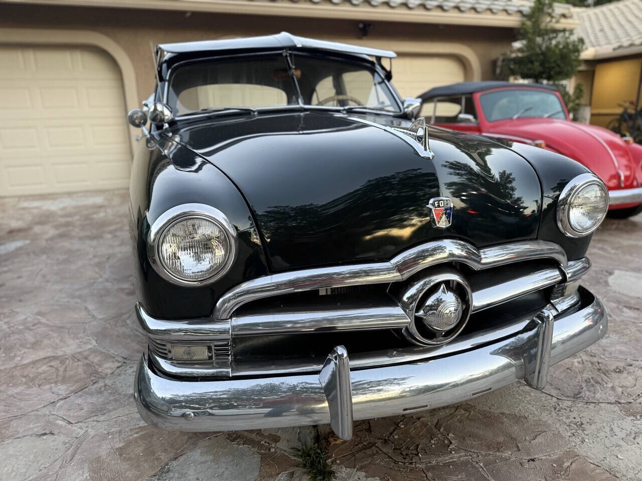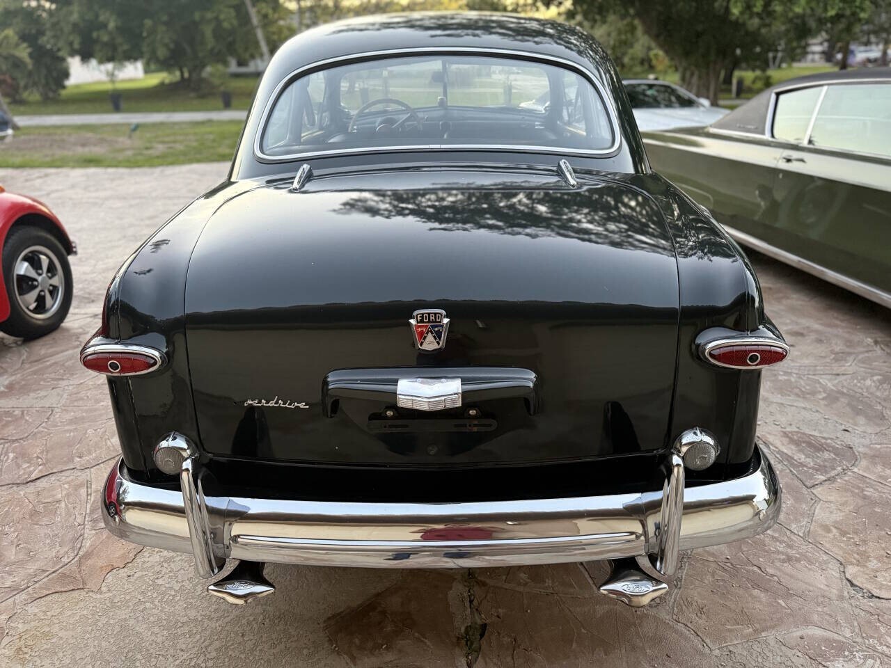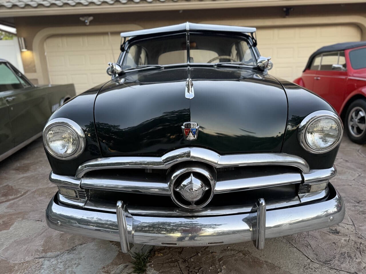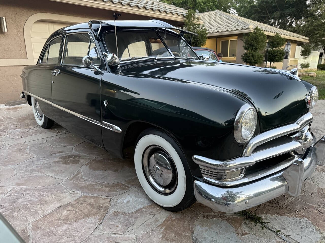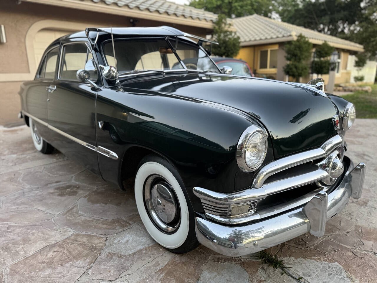 Very nice 1950 Ford 2 door Coupe Shoebox, It has the original Flathead V-8 engine that was rebuilt & Sounds Great. It starts up easily every time, strong runner, runs smooth and cool. It has a nice clean and detailed engine bay with newer 12 Volt battery. It has the original 3 on the tree manual transmission. It shifts nice and smooth! It has new clutch, pressure plate & throw out bearing when engine was overhauled. It has approximately 2000 miles on since resto according to previous owner. The paint is a very dark green color-almost black. The paint is nice & shiny & was done 5 years ago. It has a solid body with no patches or bond. Solid undercarriage that is nice & clean. It has nice sun visor & matching painted fenders skirts included. The glass is all good. The window roll up & down nicely. The car has its original interior that is in very nice shape. This car has dual spotlights. Chrome & stainless trim is all very nice. The dual exhaust sounds nice. It has nice unmolested dash & gauges. Has newer aluminum radiator. The original size bias-ply WWW tires have excellent tread. Clean & Clear title In Hand Ready For New Owner.