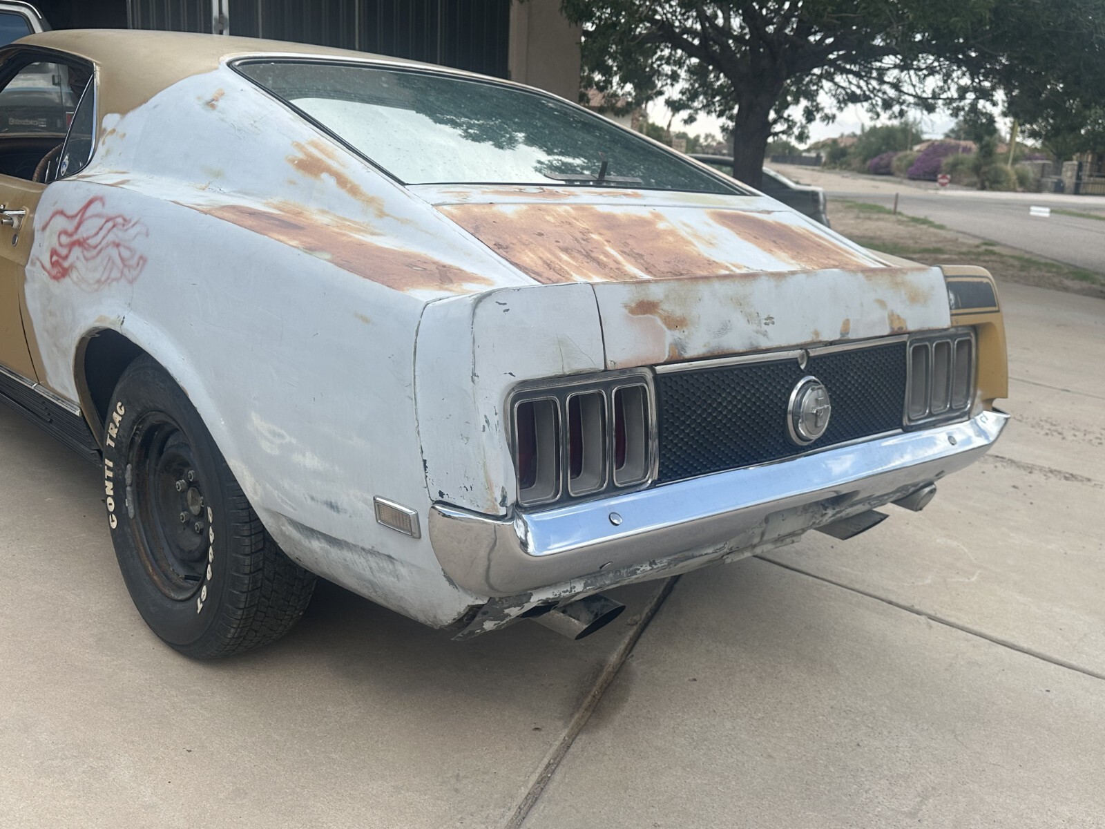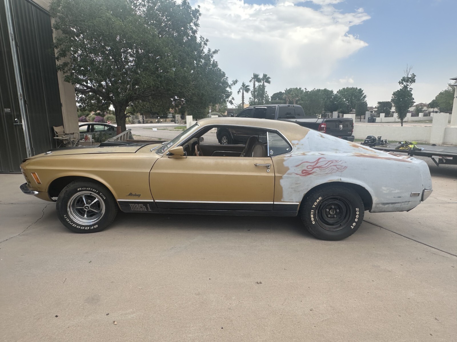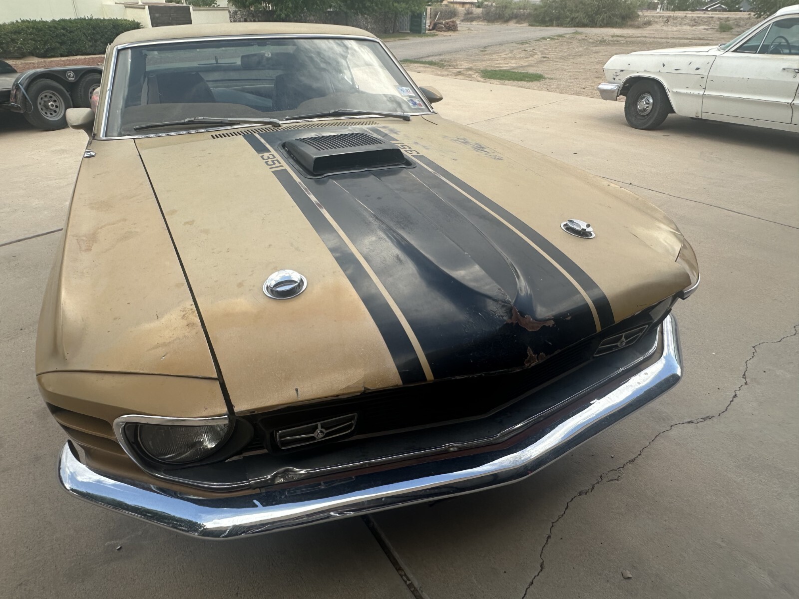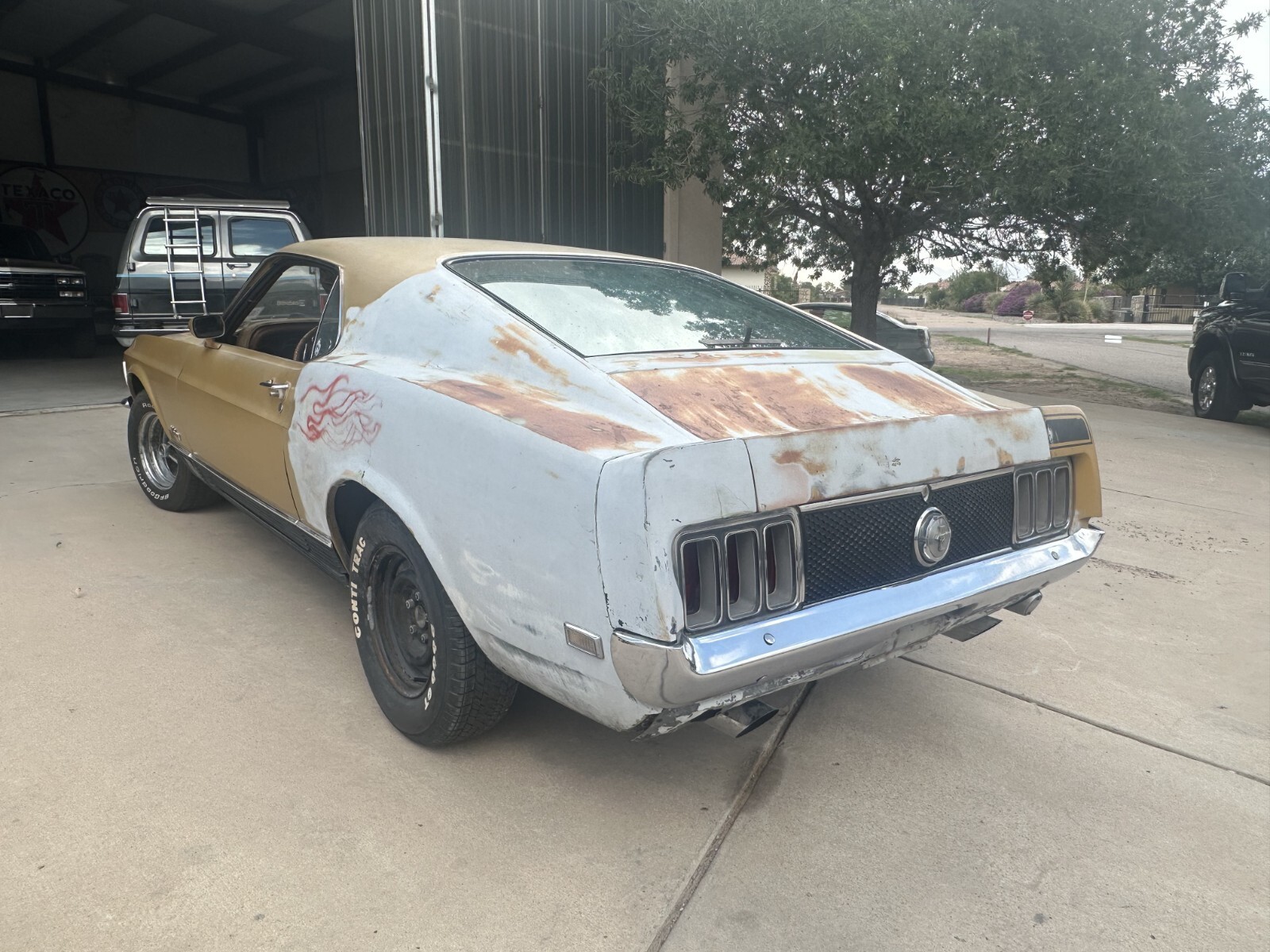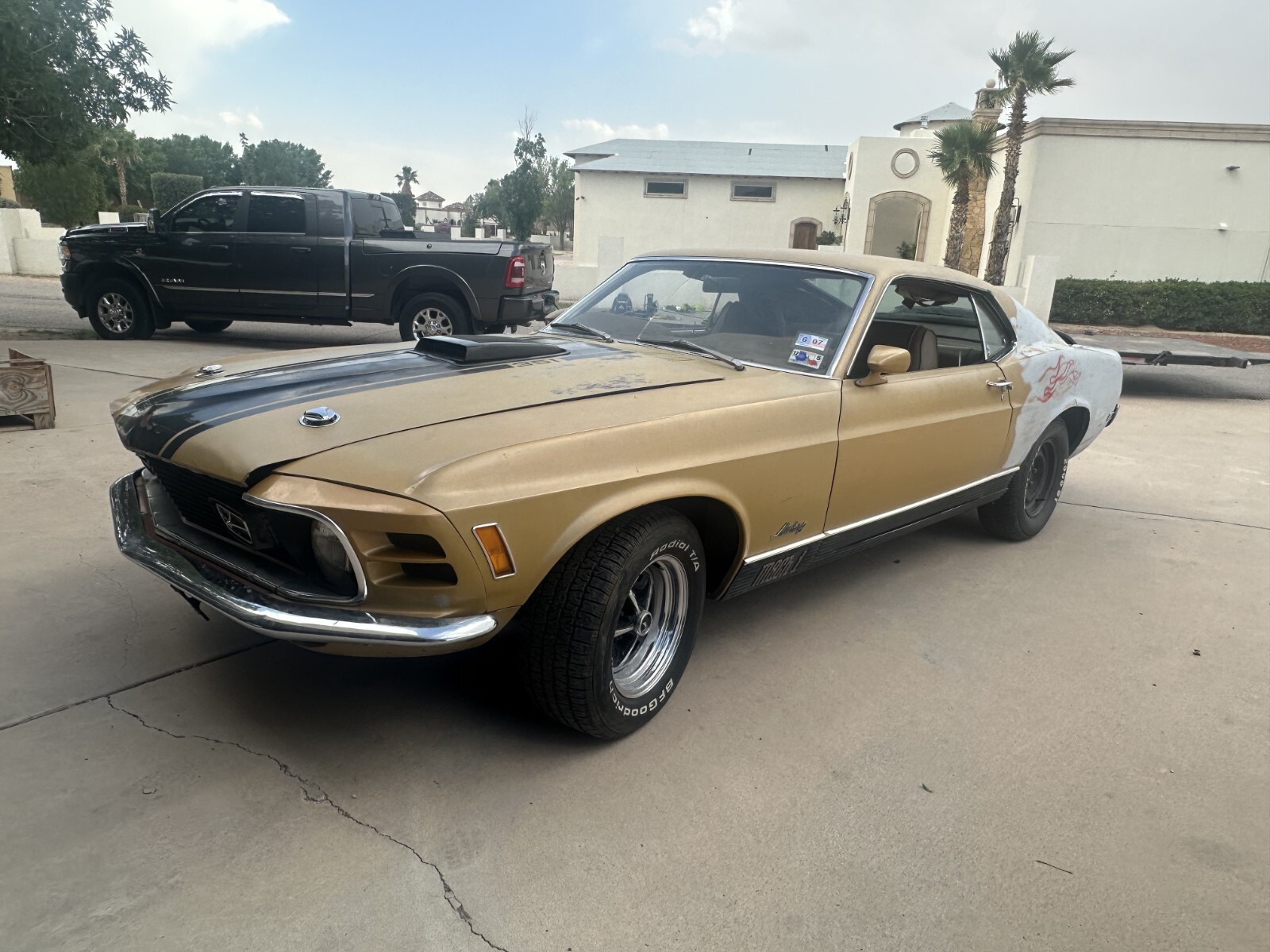 BUY IT NOW OR MAKE OFFER on this 1970 Mustang Mach 1 351 Cleveland 4v, Automatic, has Air Conditioning and Shaker a rack and pinion was added years ago, the car has been stored in doors for the past 18 years. The original color is Bright Gold Metallic and still has some original paint with Ginger Knit interior. The car does run and lot drive,the car is very solid with little rust, it does have a used original quarter panel that is included. Please look at all the pictures and ask all questions 915-479-3762 before buying or making an offer you are welcome to come and inspect the car or have it inspected before buying or making offer, it is a project and has a clear Texas title with the branding of rebuilt salvage, it is sold as is where is. Buyer is to pay all transport cost, if you have less than 50 feedback please contact me before buying or making offer.Buyer is to make a $500 none refundable deposit within 24 hours of sale and the balance is due in full within 7 days of sale. This is a project and I do accept the deposit through ebay but not the balance, I do not use the secure pay on the balance. since this is a project that is in need of restoration.