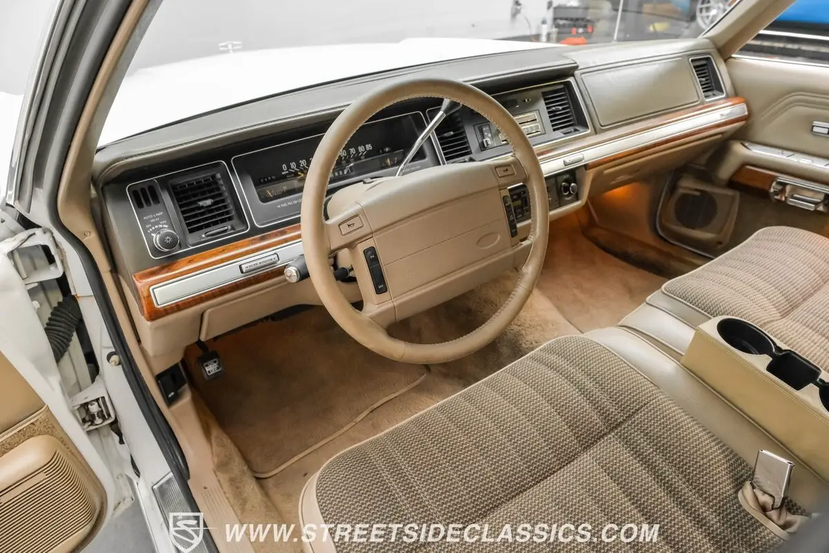Under that expansive hood, we find a 302 cubic-inch V-8 engine that produced approximately 150 horsepower and 270 pound-feet of torque when new. An H-pipe dual exhaust, complete with aftermarket mufflers, reminds anyone within earshot that a 5.0-liter V-8 sounds good, regardless of how many people it needs to carry. Those ponies are routed through an AOD four-speed automatic transmission before being sent out to a live axle rear end, which transfers power to the pavement via fifteen-inch wire-spoke wheels shod in 215/70R-15 Cooper tires.