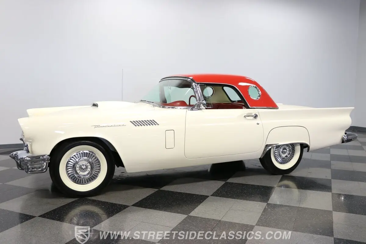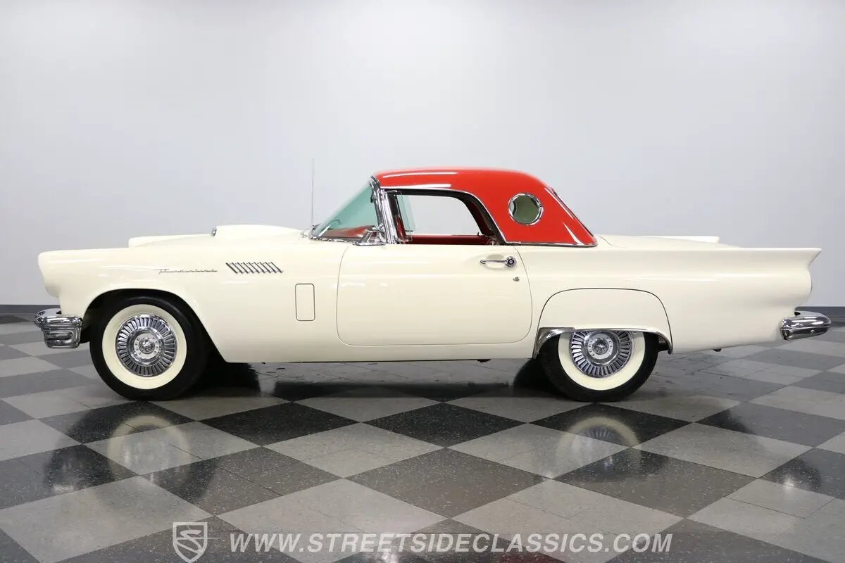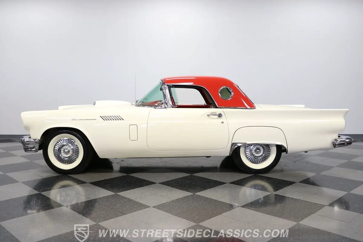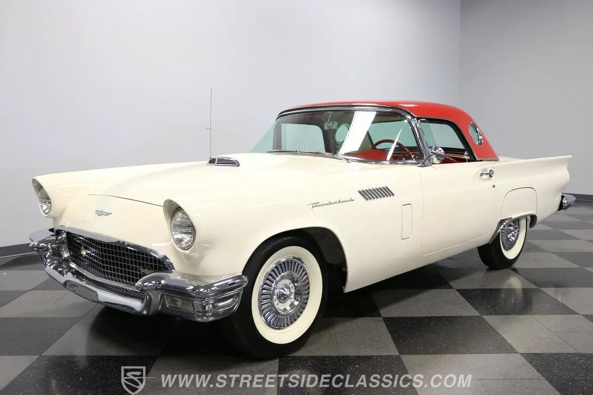 A 1957 Ford Thunderbird with a cruiser-ready color combo is a true standard in classic elegance. So it would be one of the last ones out there that people would think could also blow their doors off everyone else. That's the beauty of being a rare E-code car with the correct 312ci V8 with dual-quad carbs under the hood!