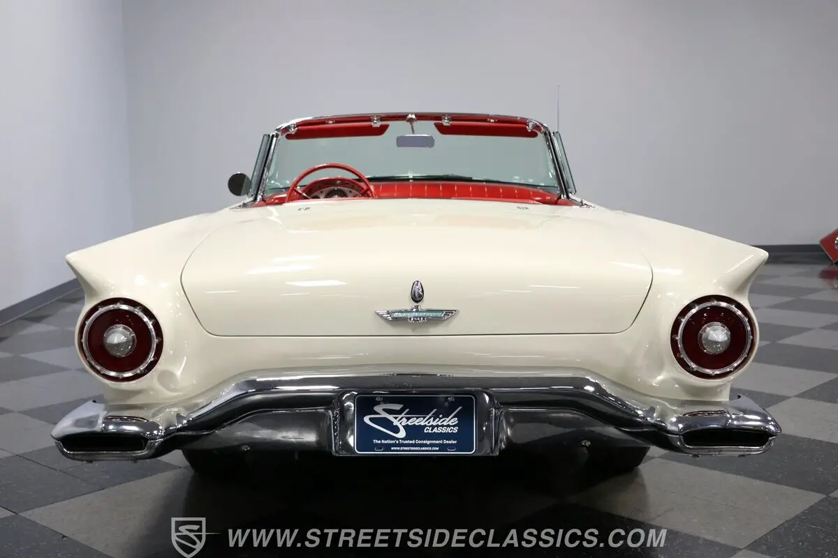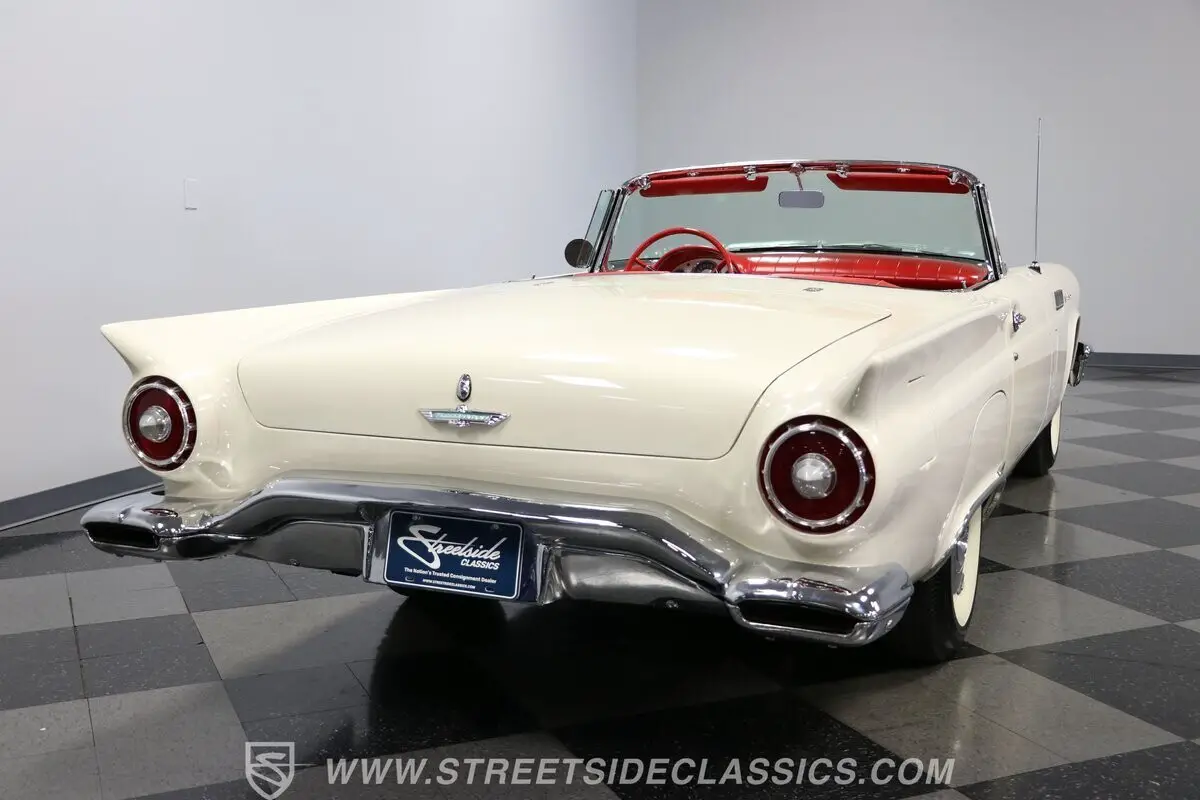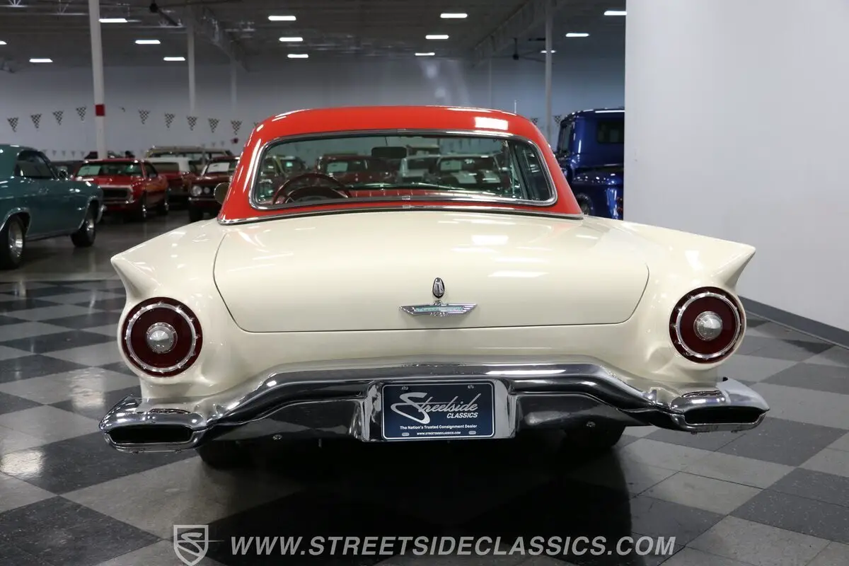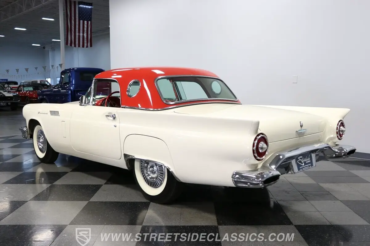 A 1957 Ford Thunderbird with a cruiser-ready color combo is a true standard in classic elegance. So it would be one of the last ones out there that people would think could also blow their doors off everyone else. That's the beauty of being a rare E-code car with the correct 312ci V8 with dual-quad carbs under the hood!