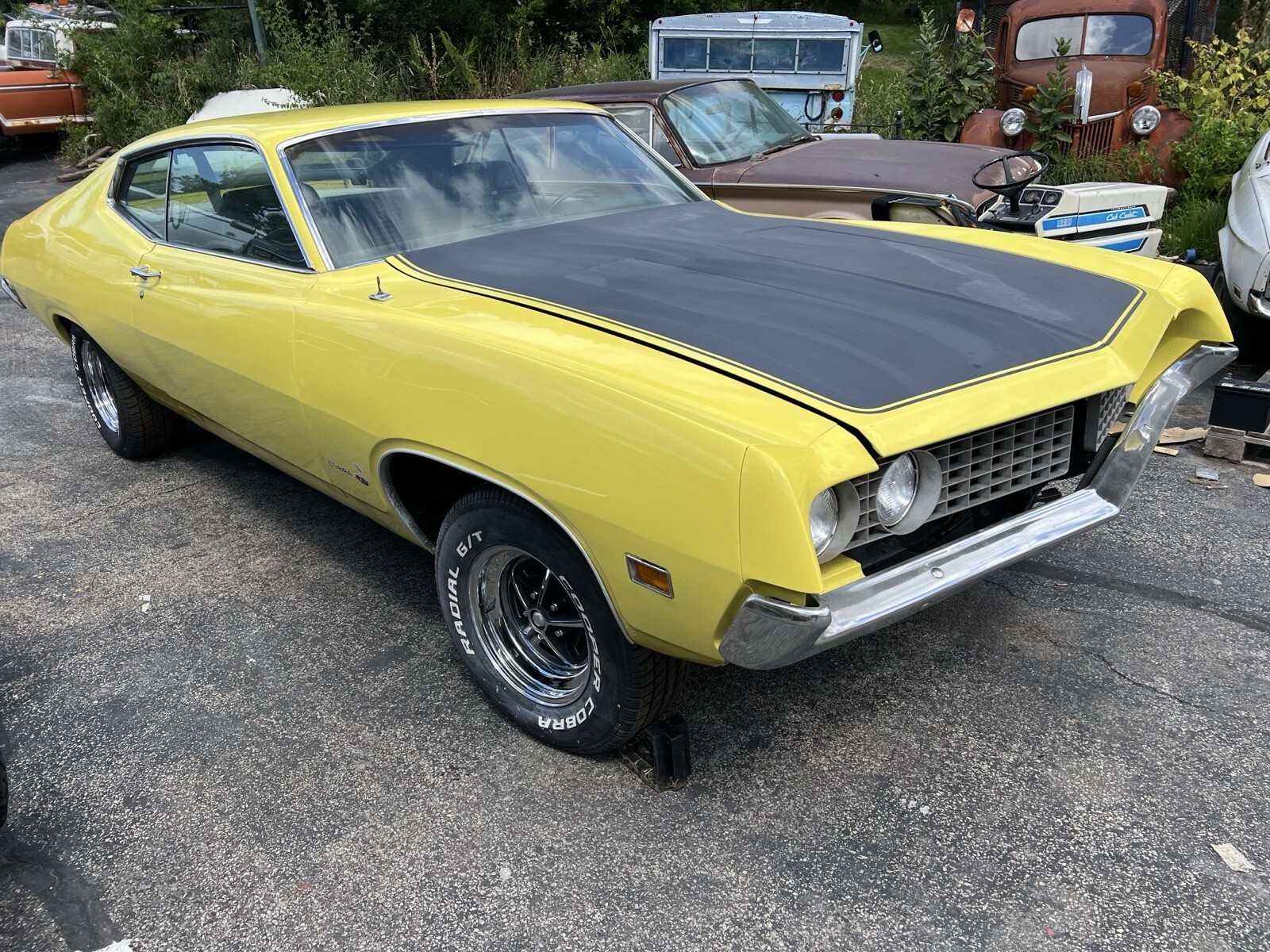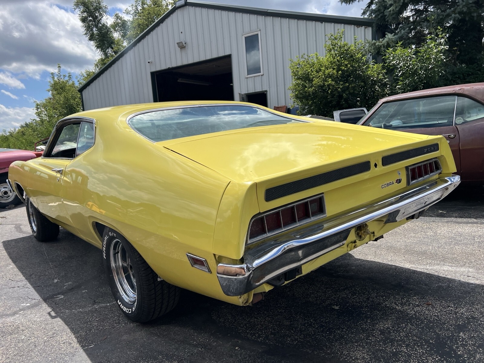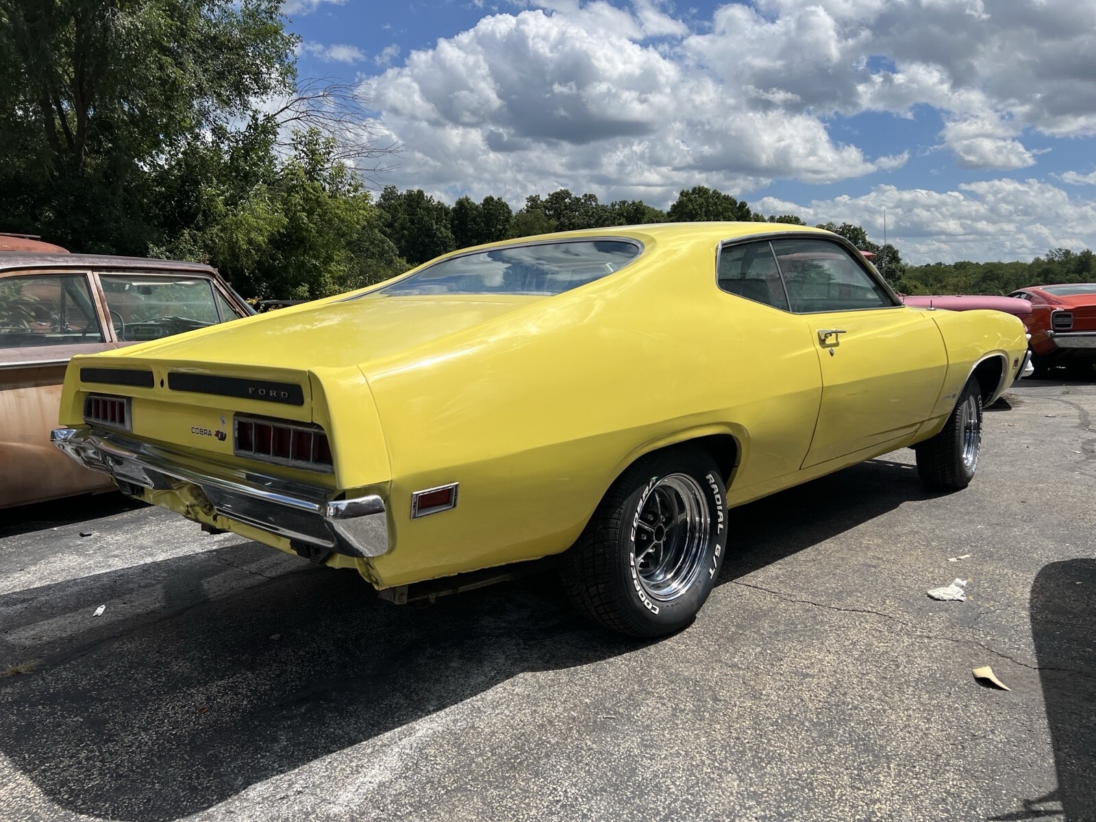 1970 Ford Torino Cobra. Original N Code 429 4V V8 Cobra Car. 4 speed close ratio manual trans car. Currently no engine or transmission in the car. Traction lock 9 in 3.50 posi rear end. Power disc brakes. Power steering. New magnum 500 wheels 15 inch. New Cooper Cobra tires. Original color. Not original paint. As is roller great for a restoration.