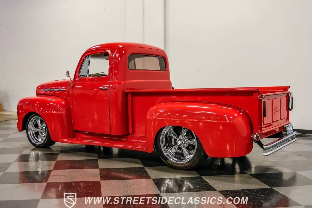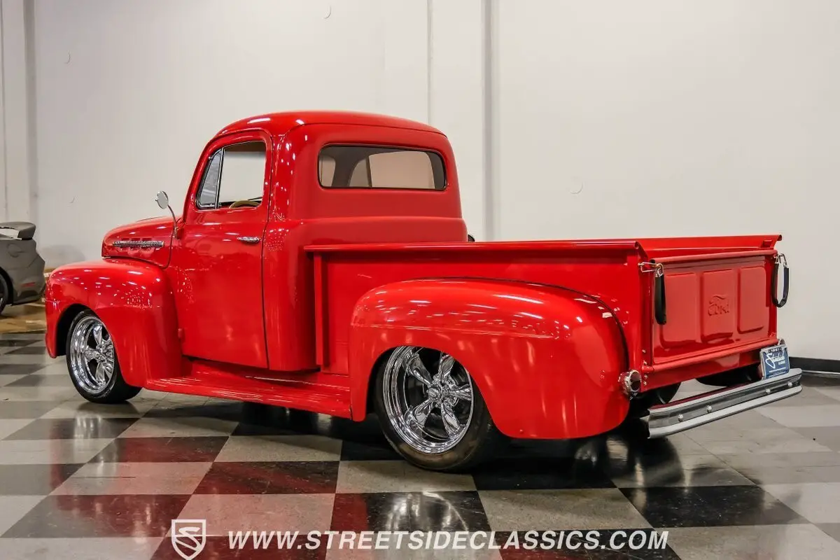 Classic F-1 styling and modern upgrades in this 1951 Ford F-1 with its rebuilt 302 V8, custom leather interior, and adjustable air ride suspension that goes from show stance to street height with controller adjustments. Call today!