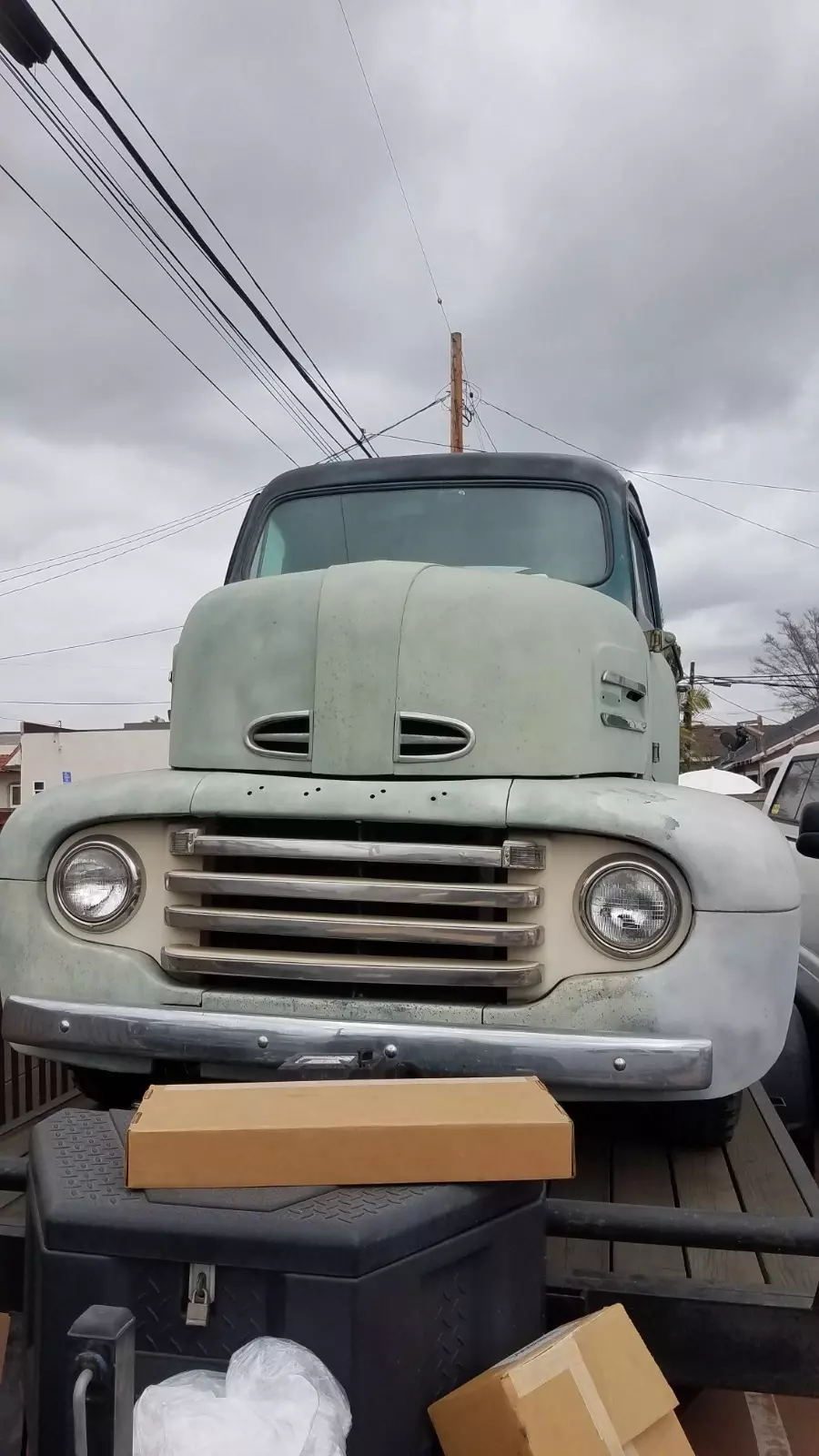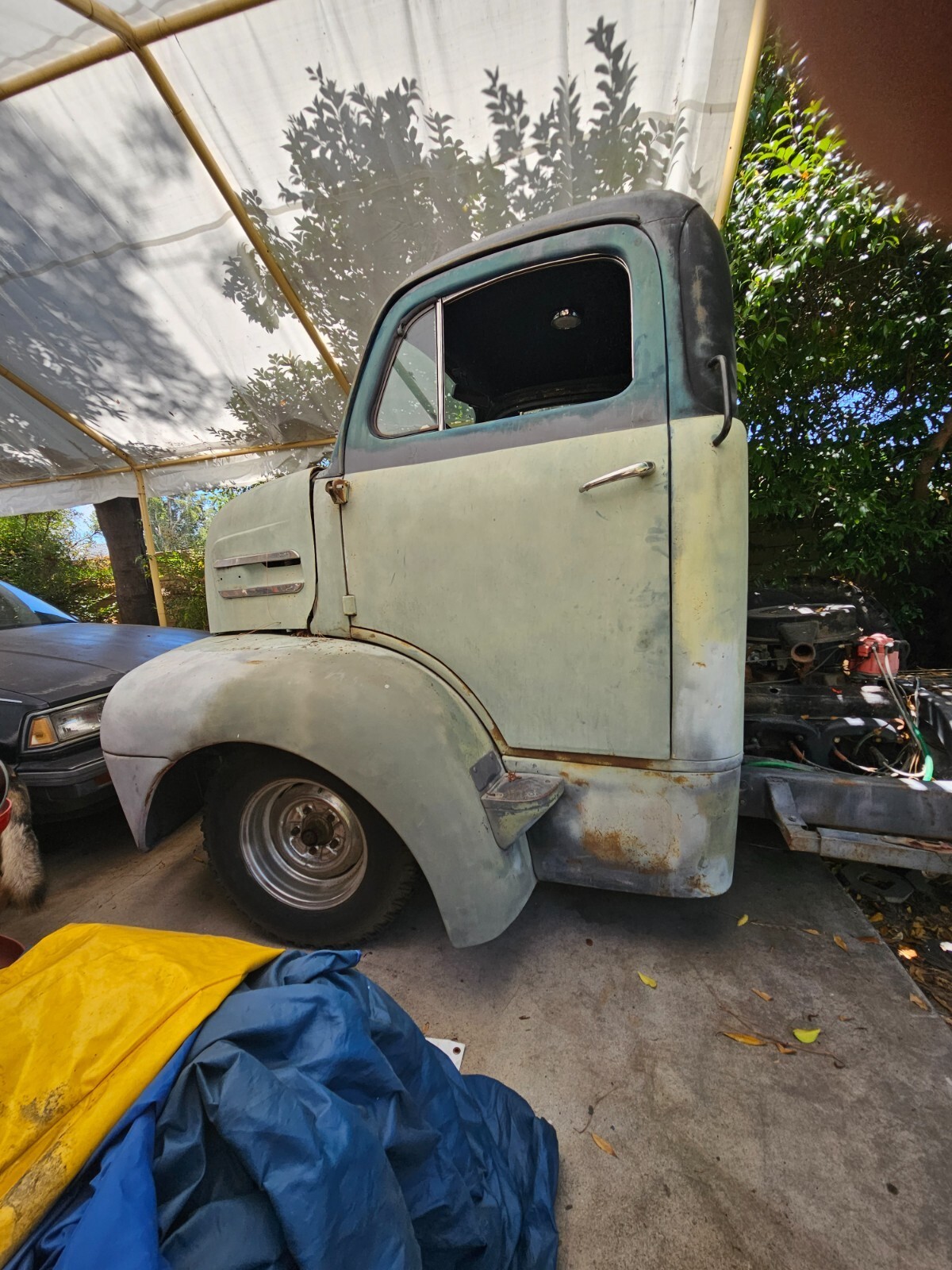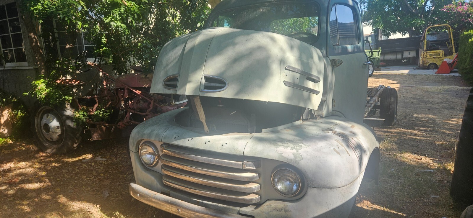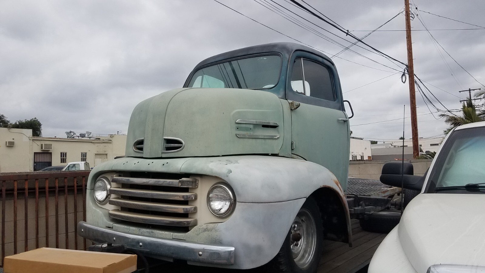 1949 COE Ford F-5. The true value is in the Body and the Interior and all the work that has been completed. A great start for a car hauler or COE Hot Rod. The condition of the engine and transmission is unknown.