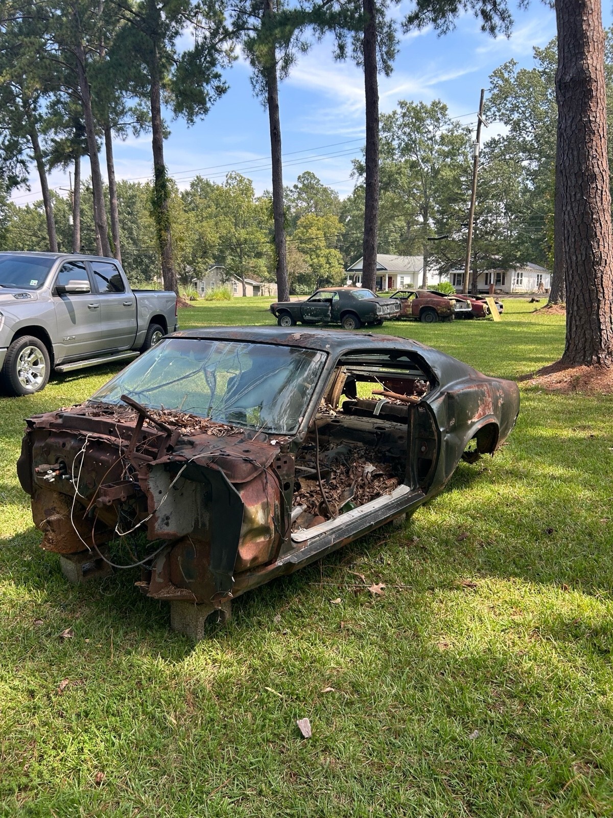 I have a 1970 mustang for sale. It is rough and needs everything. The roof structure is good. It has the back glass in it. The underside isn’t terrible that is there. The front clip is from a 70 Mach 1 it has a clear title with all the numbers. You could either fix what is there or do a roof conversion on a coupe. It is located in Jonesboro Louisiana and will have to be picked up here. If you have questions or need more pics just let me know.