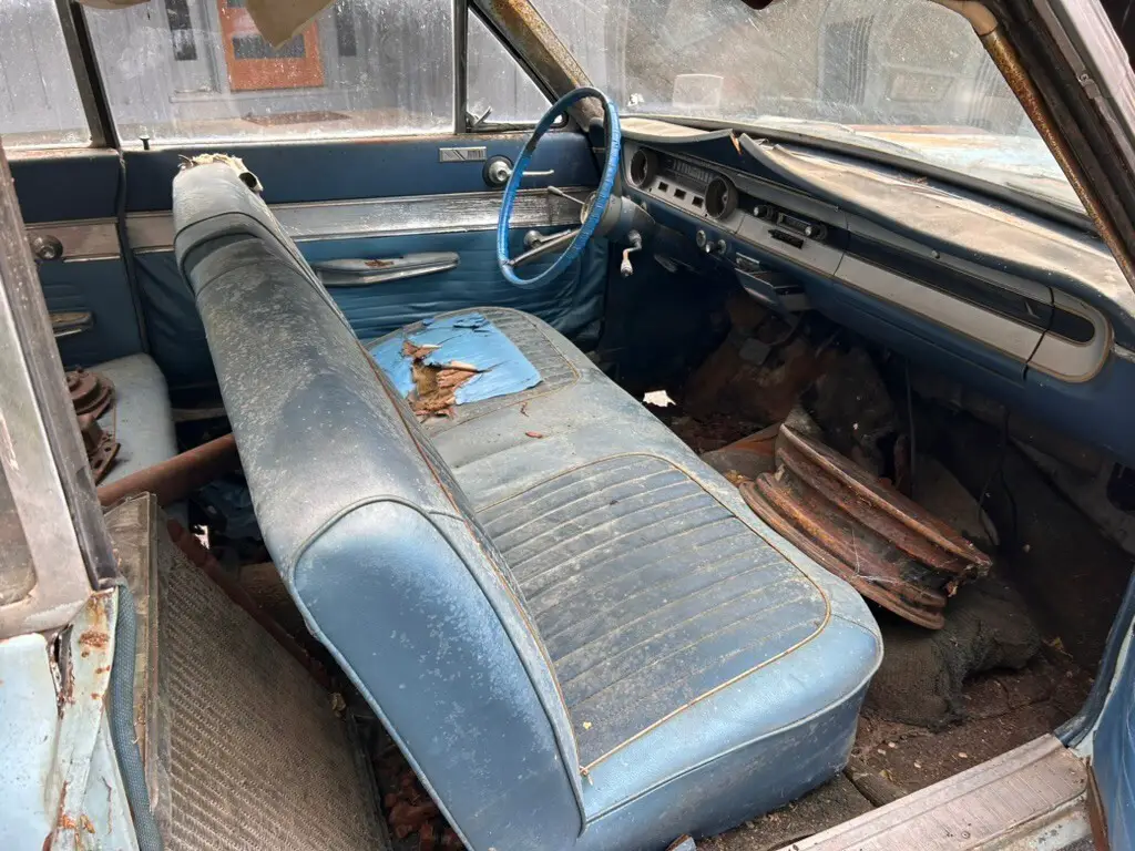 The 1964 Ford Falcon is a classic car with a blue exterior and interior color. This coupe has a manual transmission and seats 5 people. It has a gasoline engine, 2 doors. With a clean vehicle title, this Ford Falcon is a vintage gem that would make a great addition to any classic car collection.