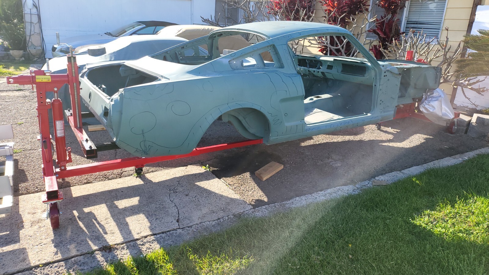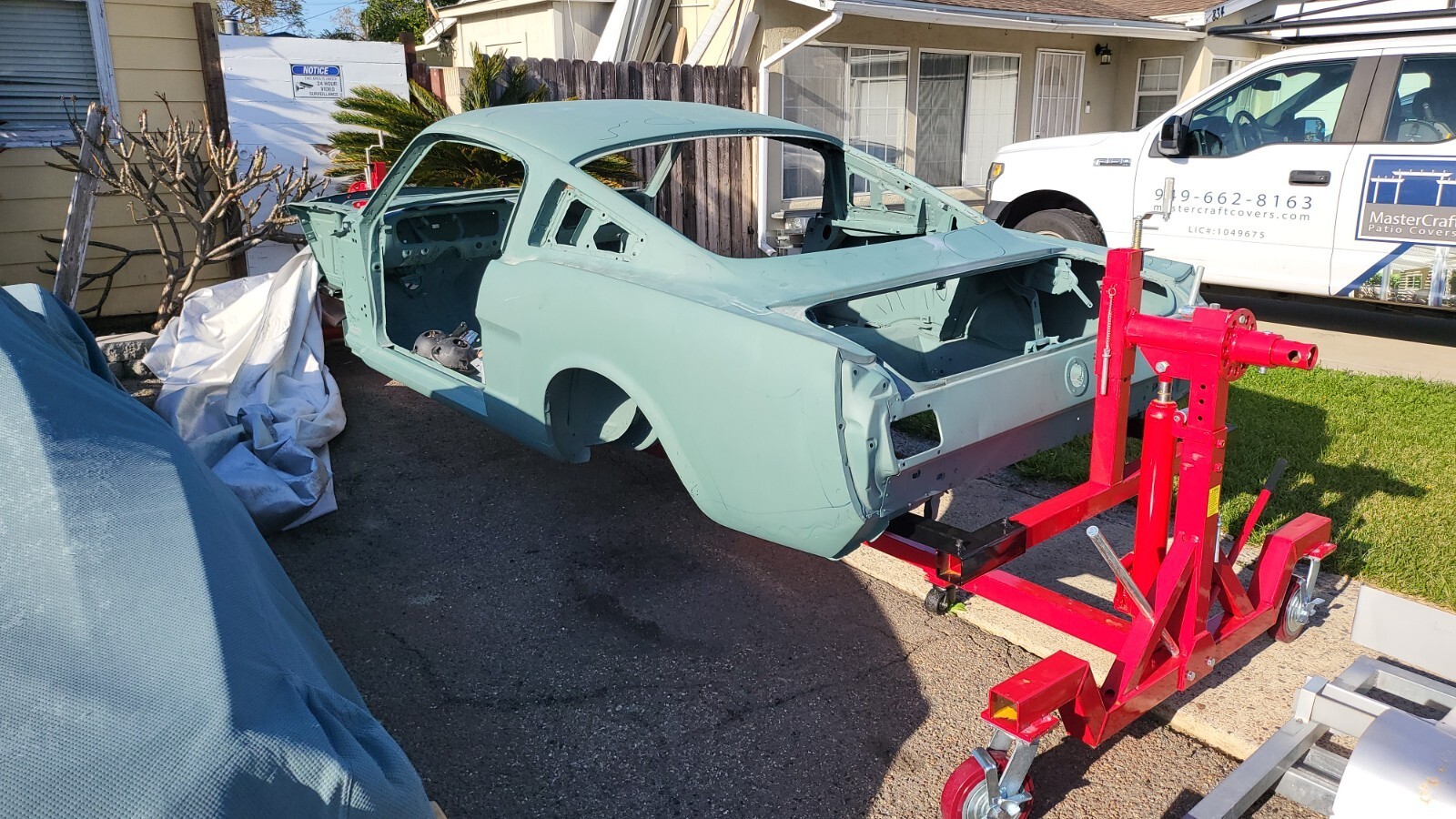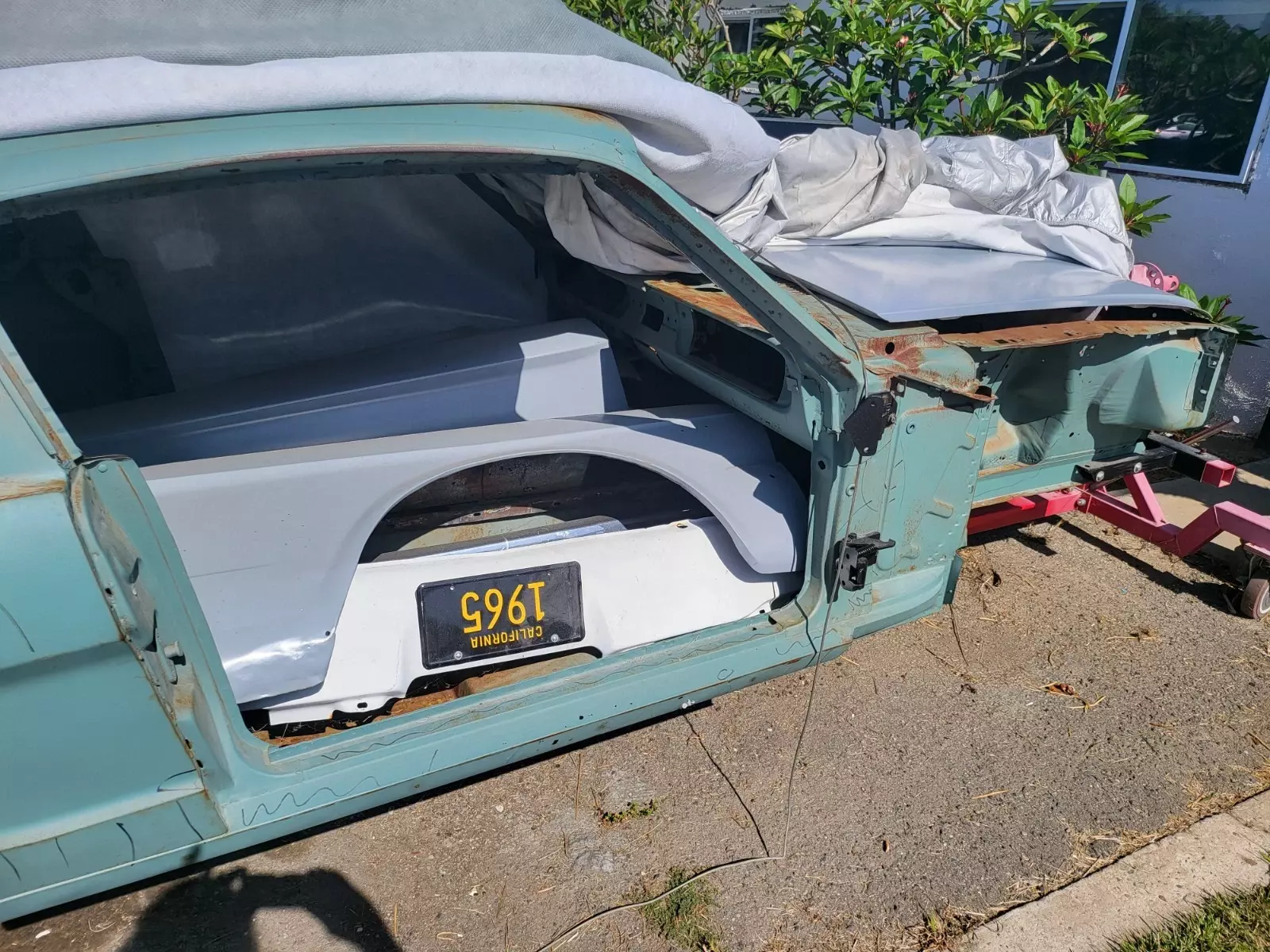 1965 mustang fastback body needs work, clean California tilte & registered in my name. VIN list C code fastback V8 2 barrel stick, made in San JoseDynacorn floor pan,rotisserie dolly.
