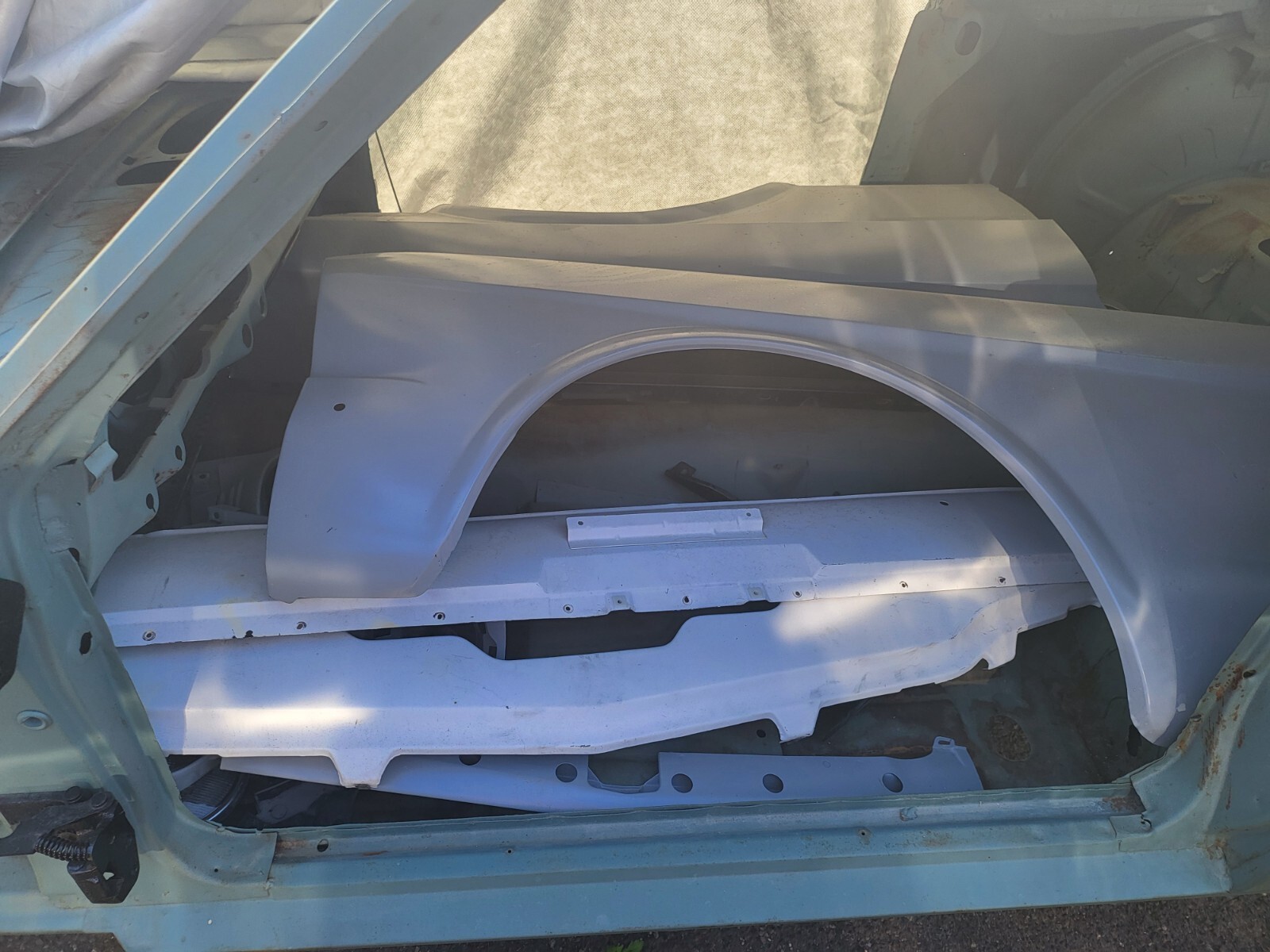 Body after shop sand blasted & prime $2,300.Rotisserie body Dolly $1,800.Dynacorn floor pan, 3,200.