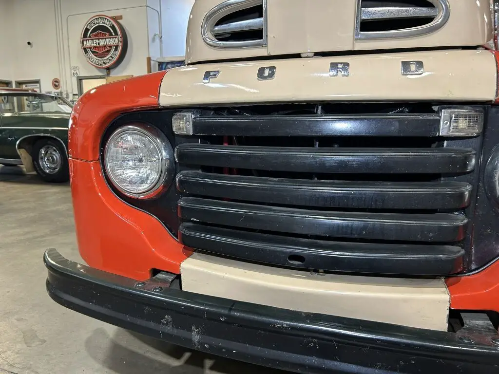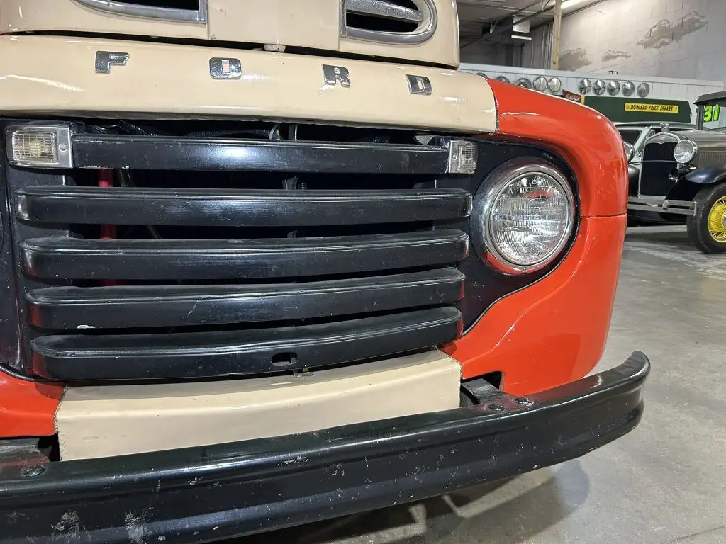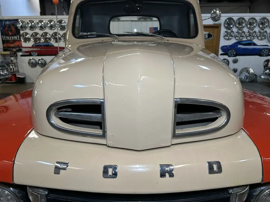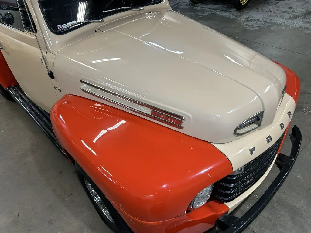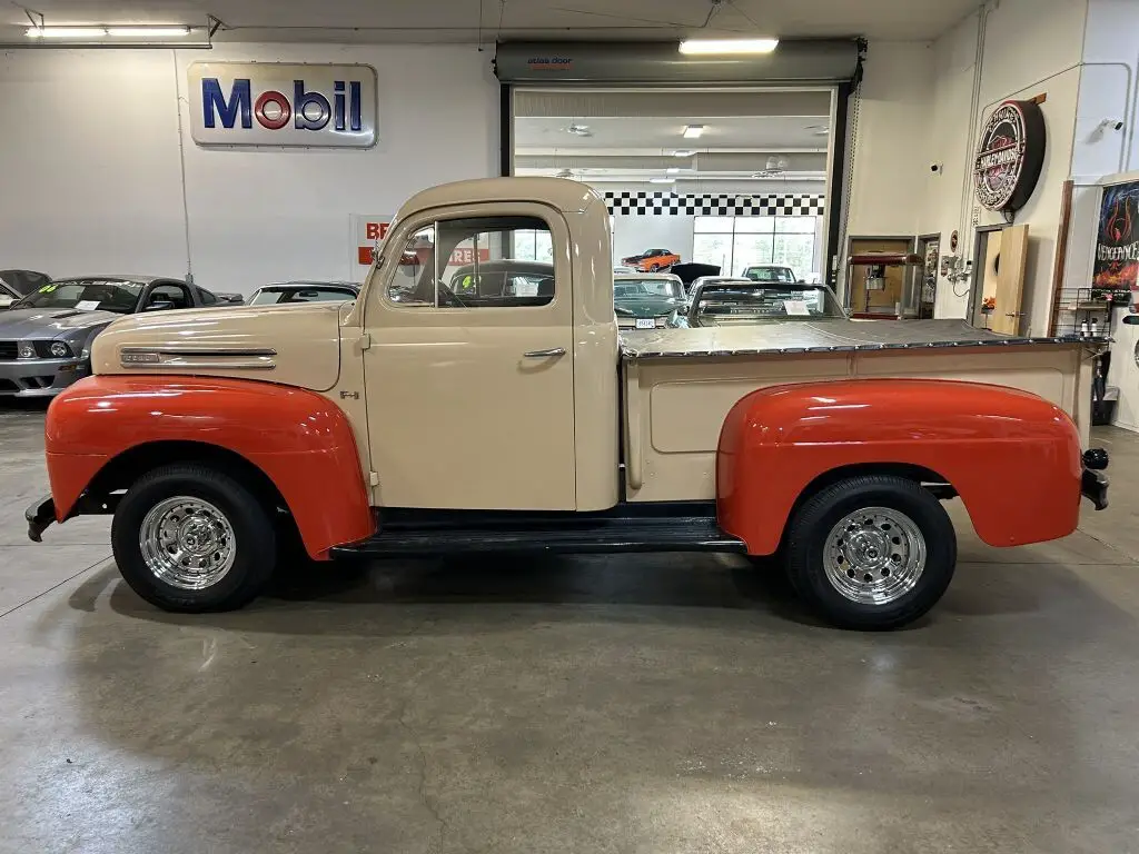 This 1950 Ford F-1 Pickup truck features a two-tone tan and orange maroon finish| complemented by a black cloth bench seat interior. This F-1 is a good-looking pickup that runs and drives very smoothly. It sits on 15'' factory chrome wheels with wide tires. Overall| the body of this truck is solid| with good fenders| doors| hood| cab| and frame. All the wood on the bed is in great shape. The paint shines nicely| but some scratches and chips on the finish give it character. The black bumpers are in good shape with only minor scratches. Under the hood is a 400 CID and TH-400 3-speed auto| both out of a 1968 Pontiac Catalina. It operates on a 12-volt system| and all electrical components function properly. The interior looks good| and the bench seat is comfortable and in excellent shape. The gauge cluster is stock| and the speedometer is operable. Sunpro gauges at the bottom of the dash show better than the original gauges. It has a working AM/FM/USB stereo mounted underneath the dash. This 1950 Ford F-1 is an excellent truck for getting in and cruising| hobby farms| or just taking it to a car show. It is a must-see! Please feel free to ask us for more information. Call us at 763-434-6565 / 763-999-1098 or email '' route65sales@gmail.com'' to inquire about this 1950 Ford F-1 Pickup truck. WE ARE OPEN TO TRADES! FINANCING IS AVAILABLE!