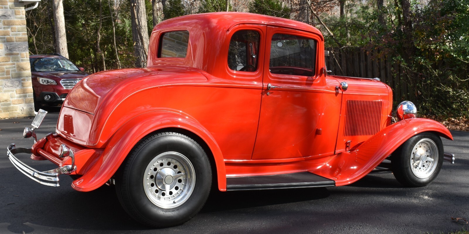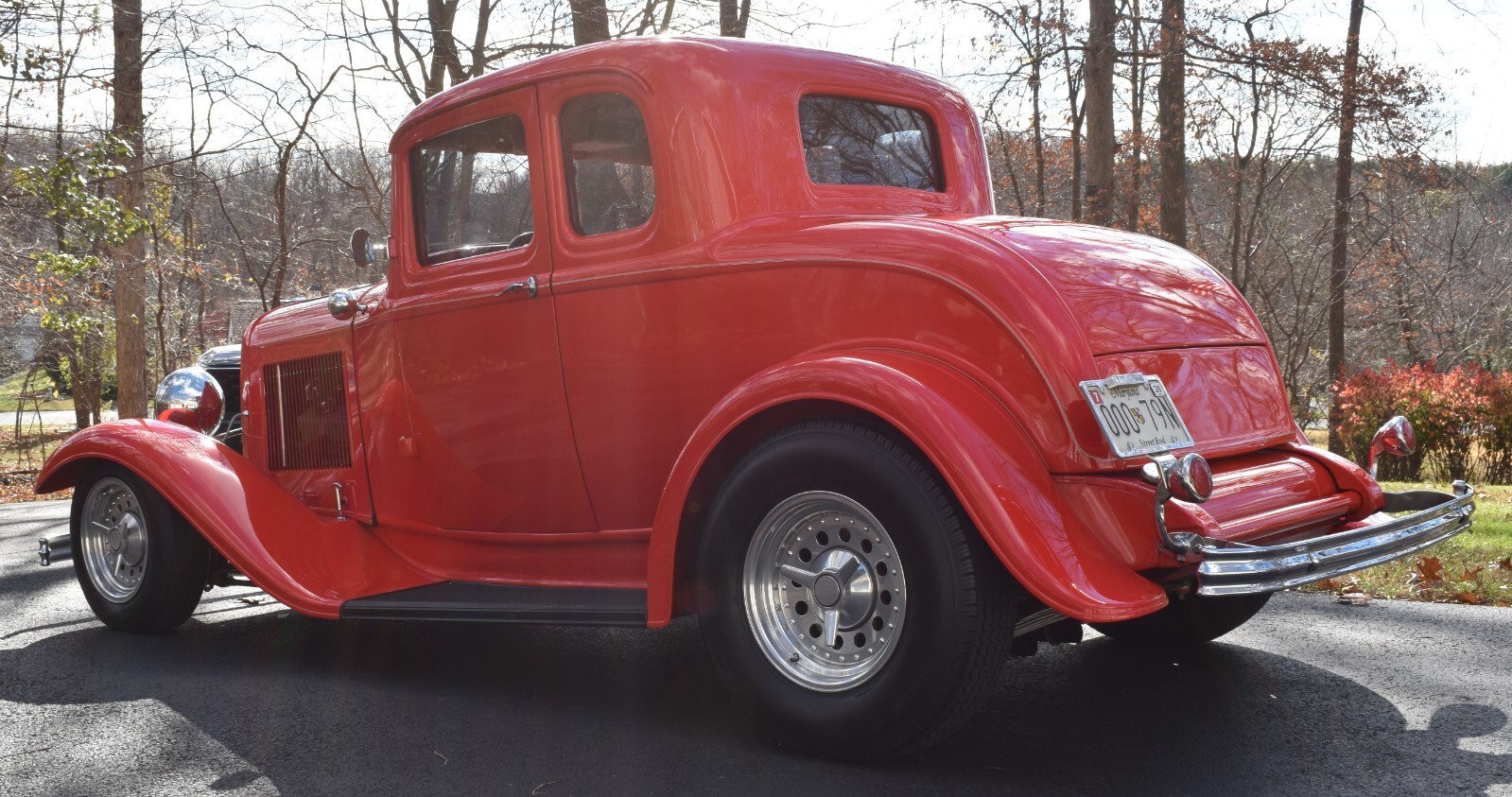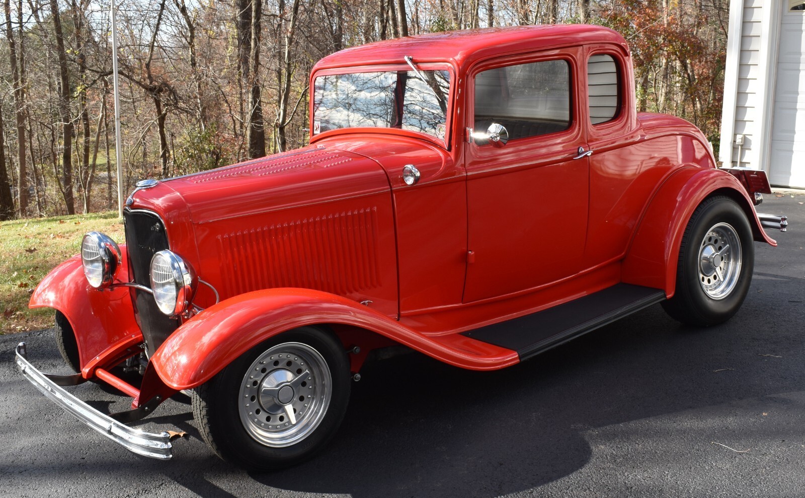Real steel bodied 1932 Ford 5-window coupe (unchopped top) Street Rod / Hot Rod powered by a Chevrolet V8, backed by a Turbo 350 automatic transmission, and a Corvette independent rear differential. The fenders are fiberglass by Outlaw performance. This “Deuce Coupe” was completed in the mid-1990’s and has only logged approximately 8,800 miles attending cruise-in’s and local car shows.